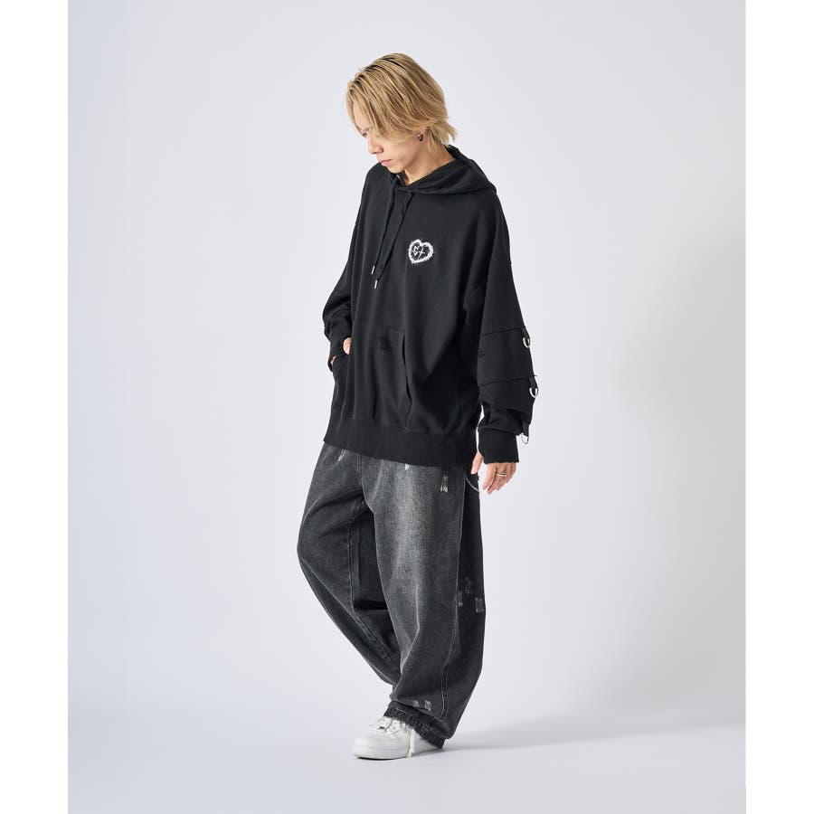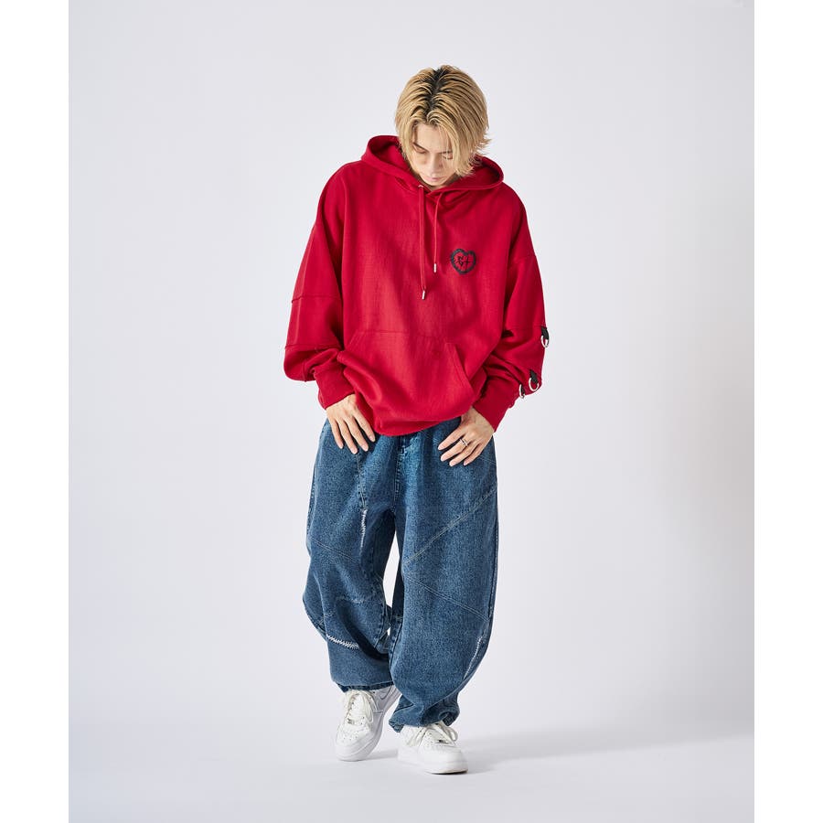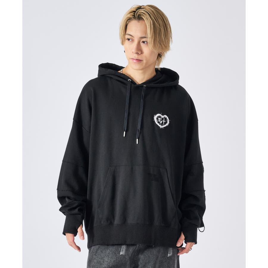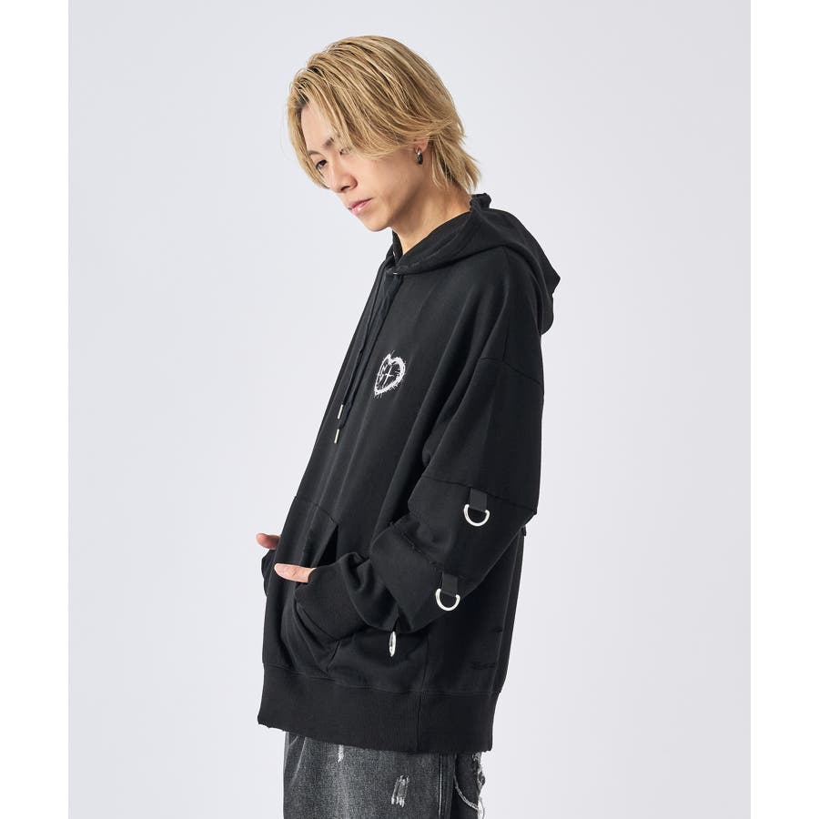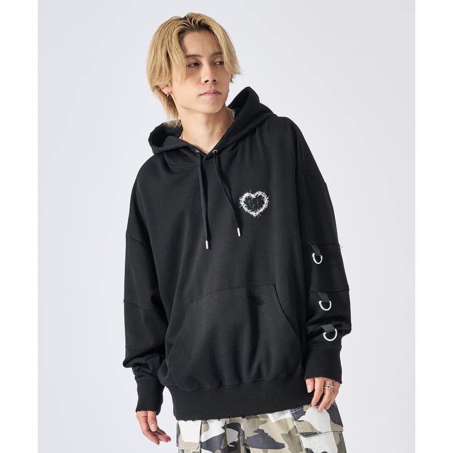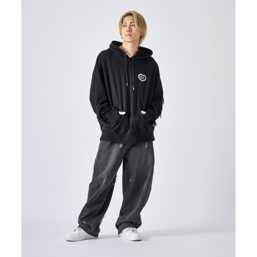 メンズ パーカー クロスアップリケ ストリート系 オーバーサイズ