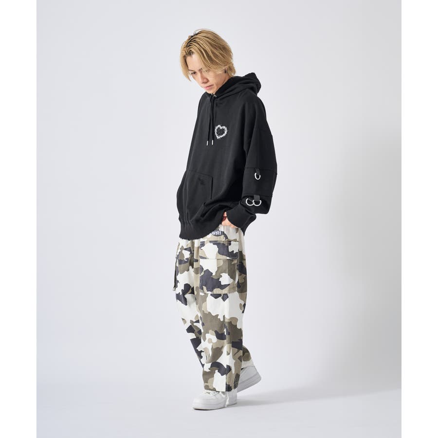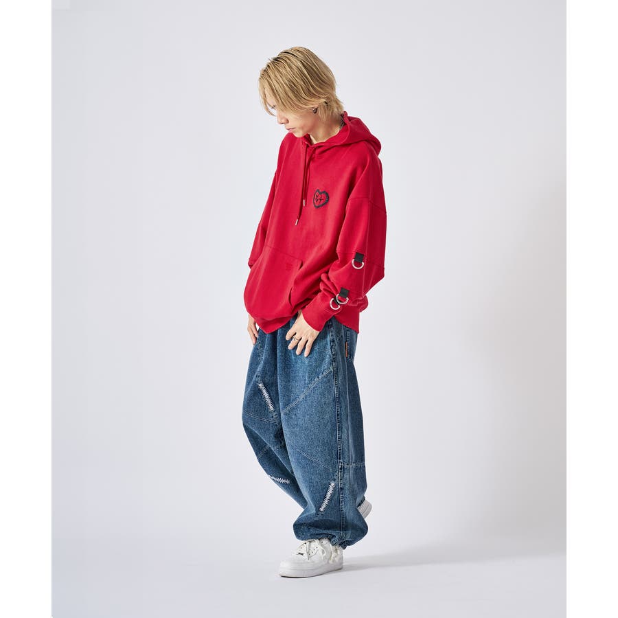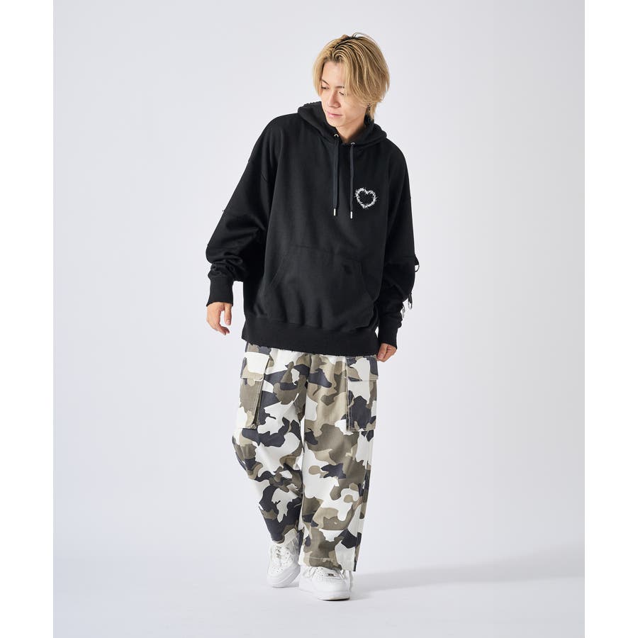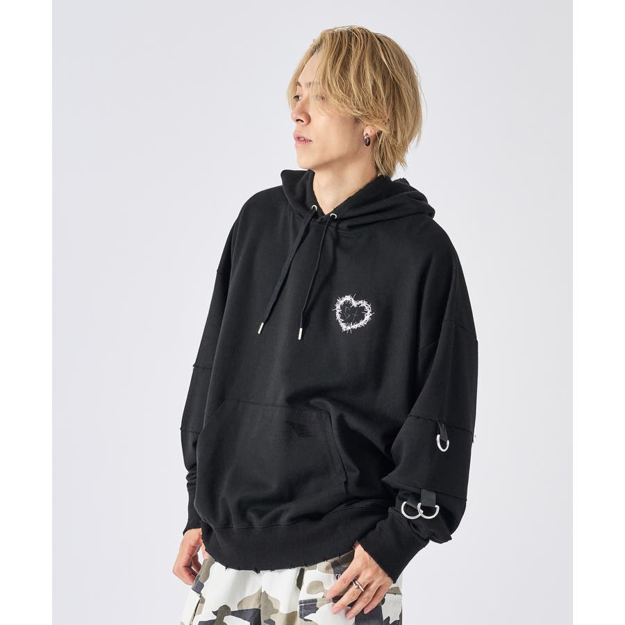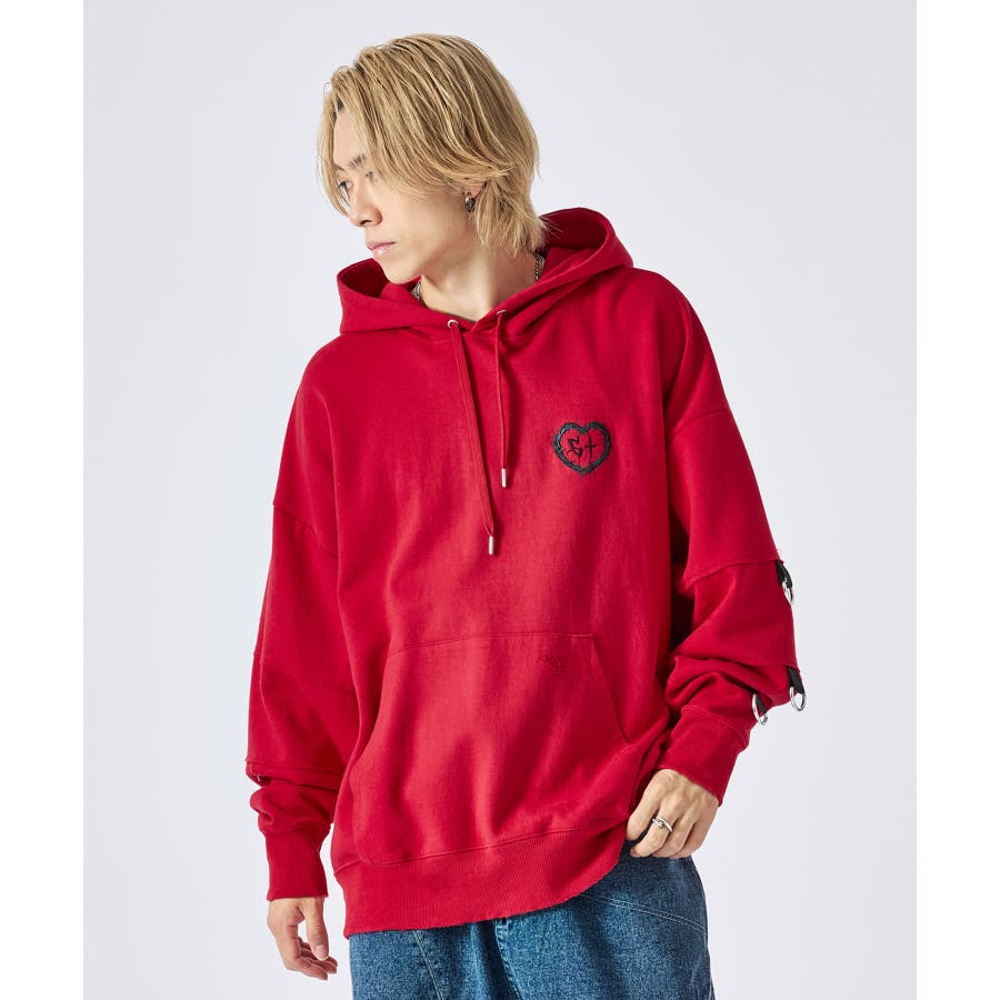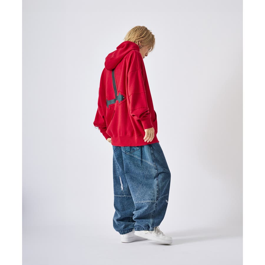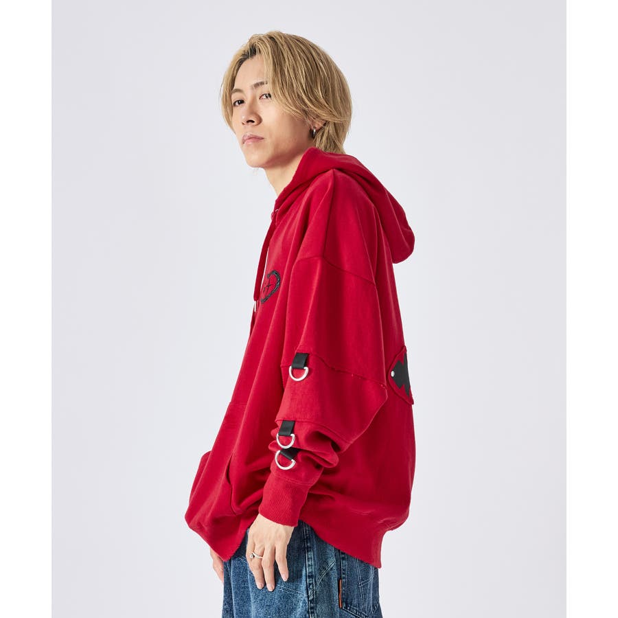 | 背中のクロスがクールなプルパーカー ■detail ボディによってクロスの配色が違っており、それぞれの好みにフィットするデザイン さりげなくダメージ加工を施し、左袖に配したD管などが雰囲気を高めてくれる 袖のリブにはフィンガーホールを配置し、グローブなしでも温かいだけでなく、萌え袖にも使いやすい ■fabric 発色も良く張りのあるポリエステルコットンのポンチ素材は、ふんわりした軽い着心地 ■styling ブラックのスキニーなど雰囲気にピッタリですが、もっとカジュアルに、そしてユニセックスで着られる着回しやすいアイテムです | ||||||||||||||||||||