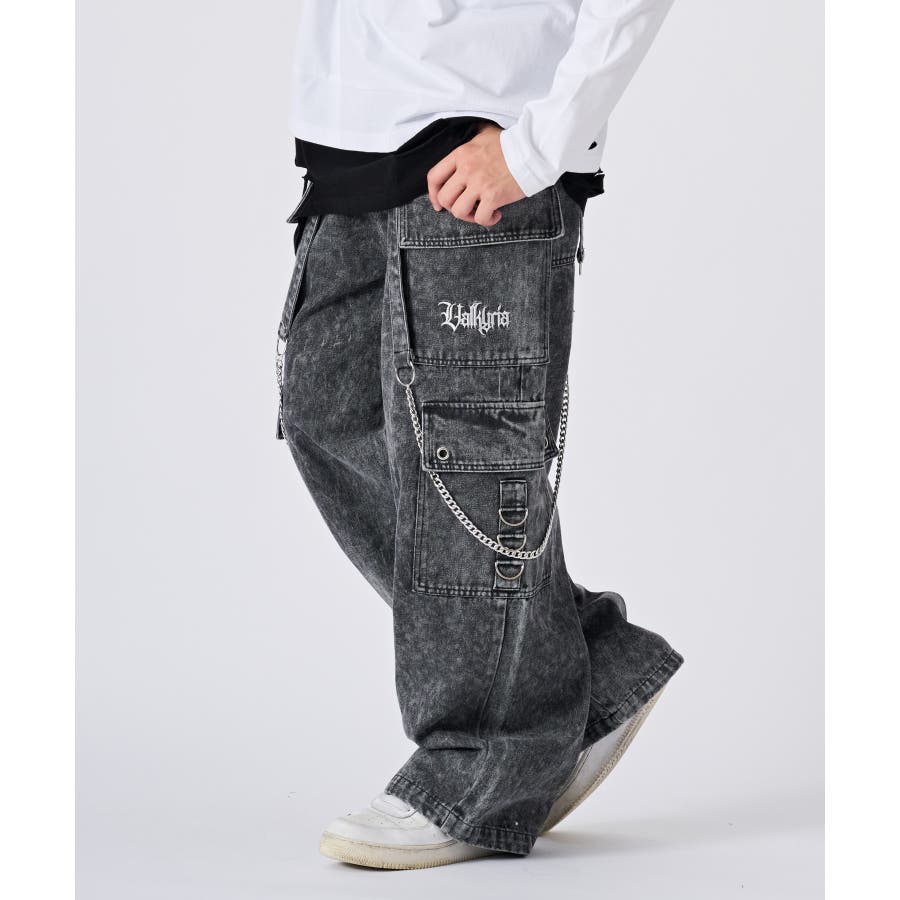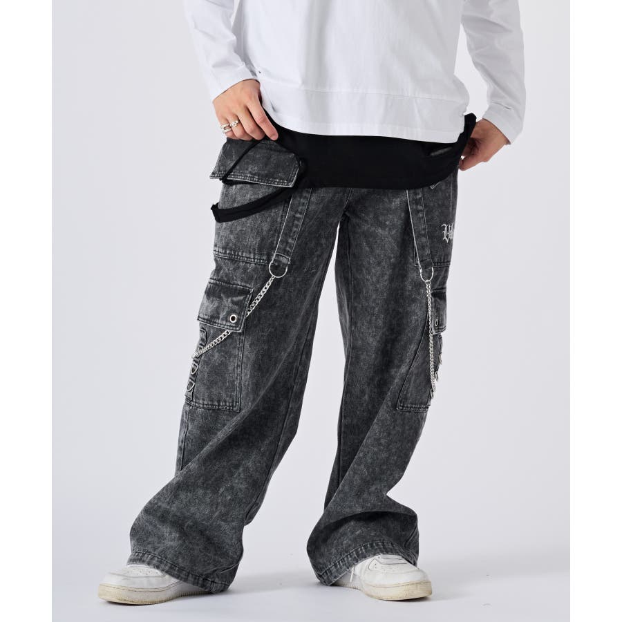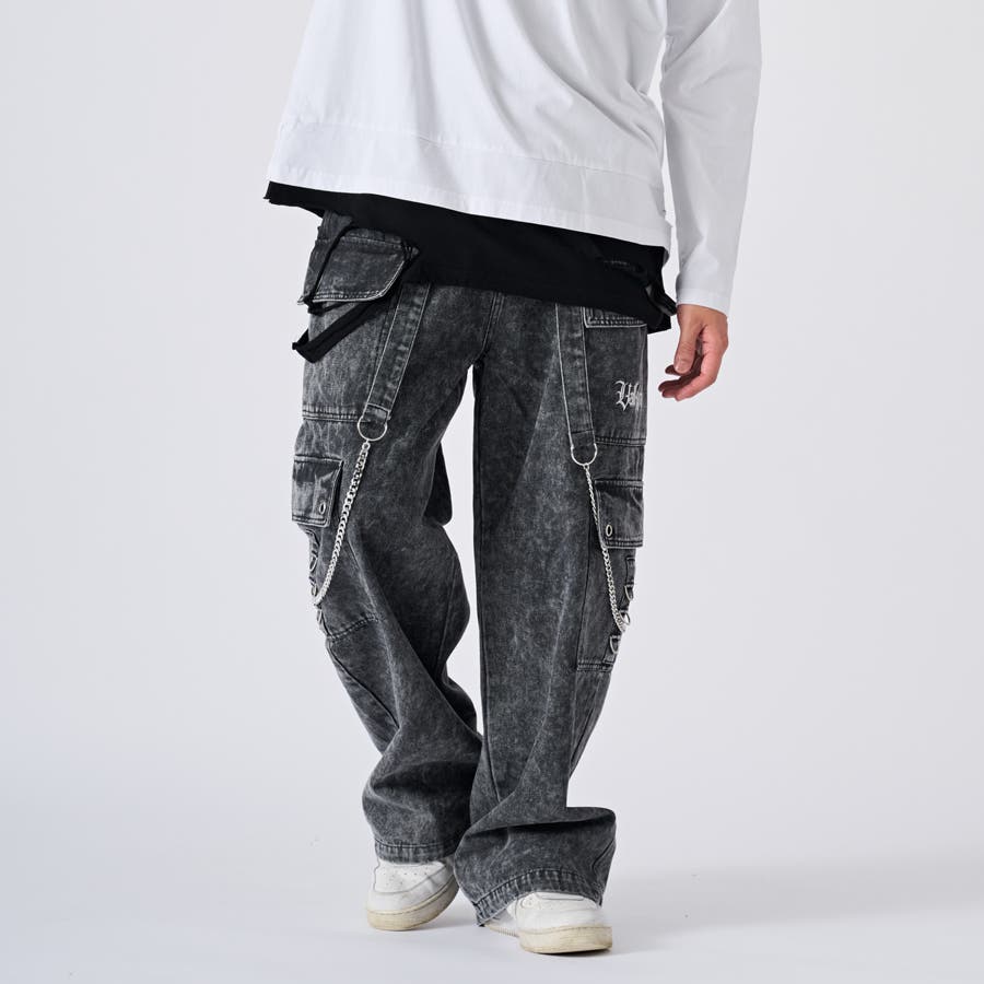 ワイドパンツ メンズ デニムカーゴ ストリート系 ビッグシルエット