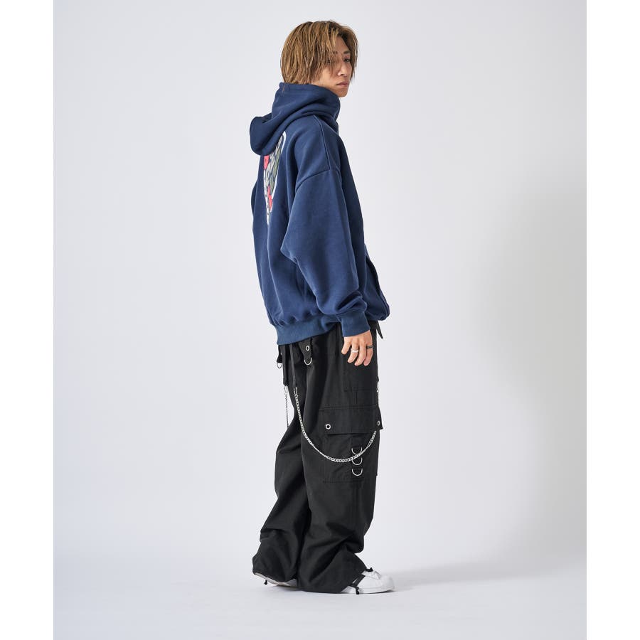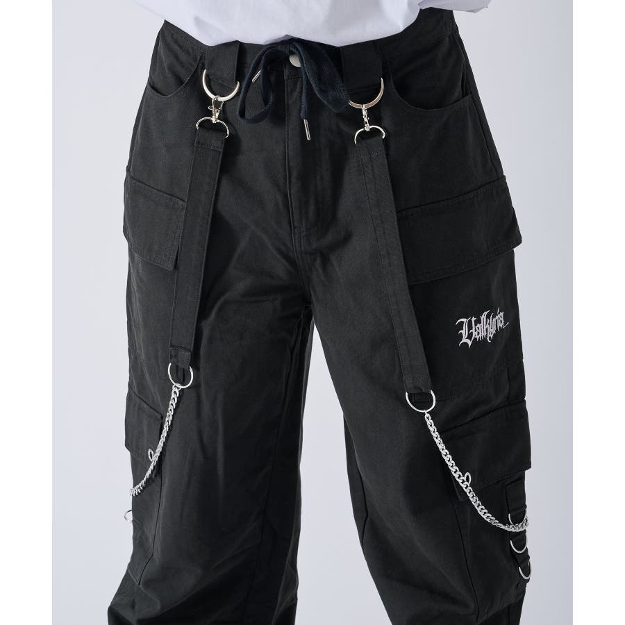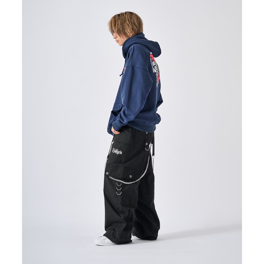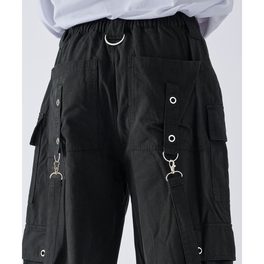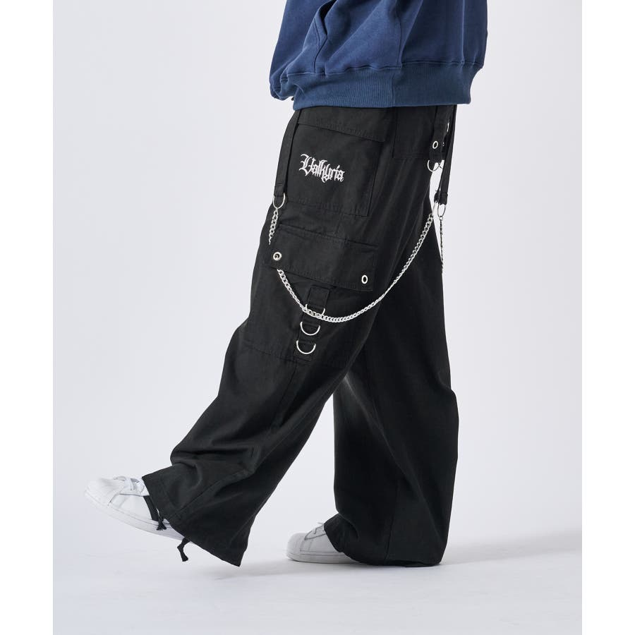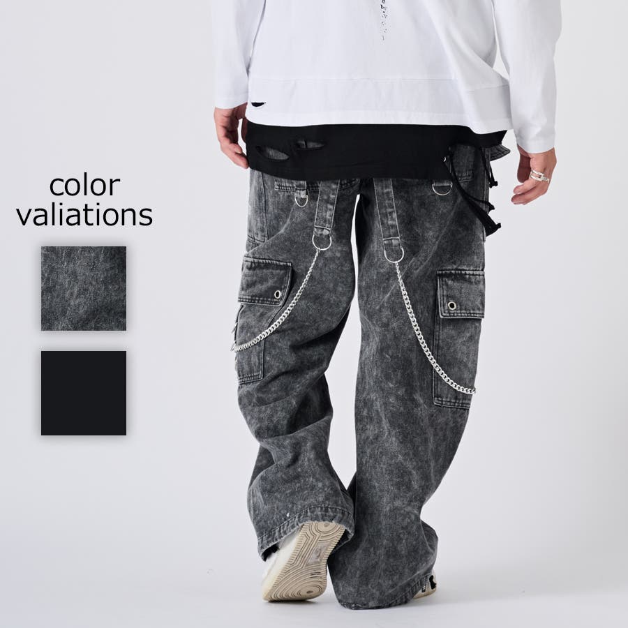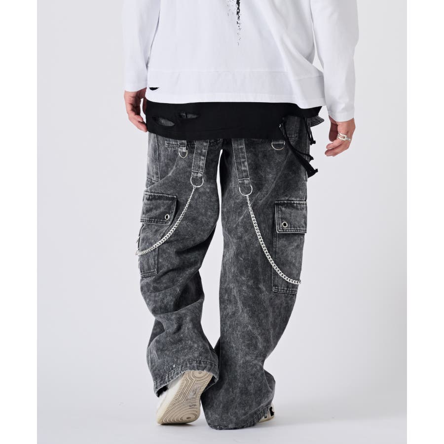 | チェーンが付属したバギーシルエットのカーゴパンツ ■detail 着脱できるチェーンはアクセサリーとして付け方を楽しめるデザイン バギータイプのワイドシルエットで、腰位置にもフラップポケットを配置したダブルカーゴ仕様 ウエストはシャーリングとドローコードでサイズを調整できる ■fabric ダック生地を使用したソリッドブラックと、デニムのケミカル加工をした2色のブラックをラインナップ ■styling ストリートスタイルのマストアイテムとしてユニセックスに着用できるデザインです | ||||||||||||||||||||