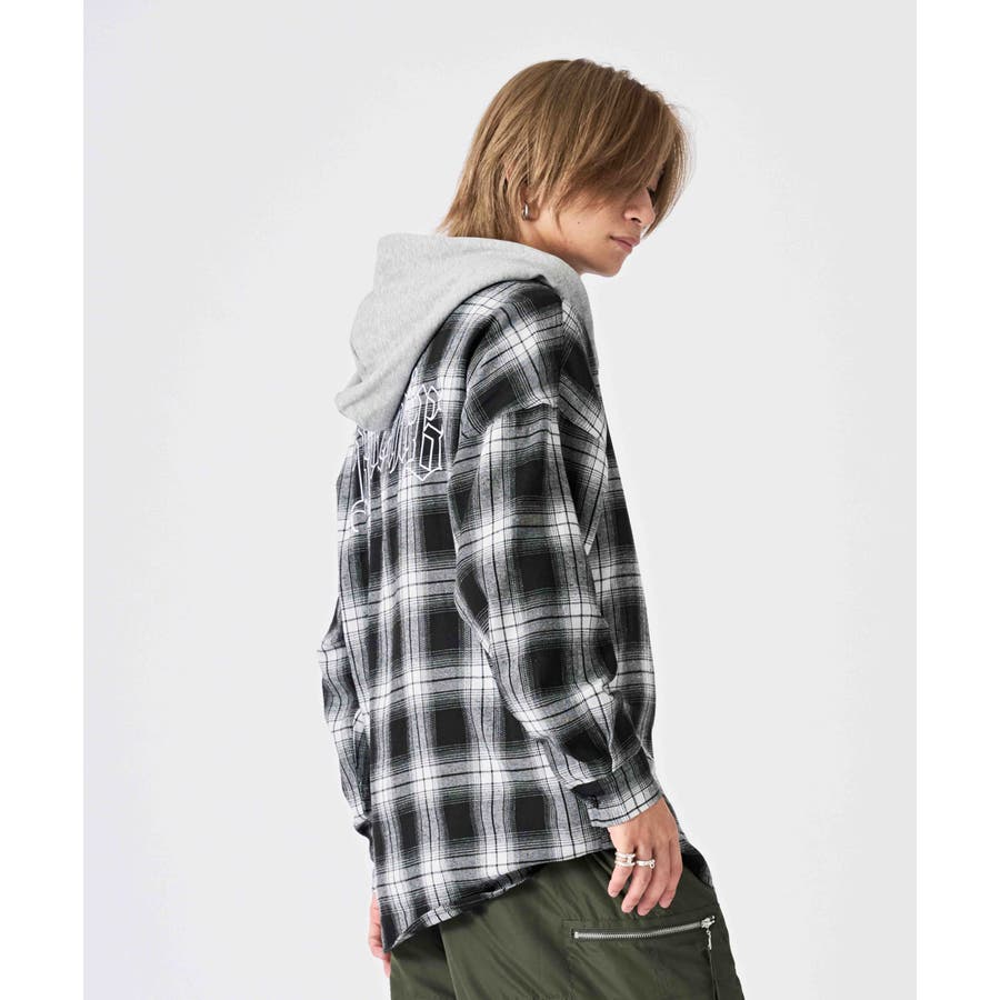 | スウェットのフードを取り付けた長袖チェックシャツ ■detail ストリートでは定番のタータンチェックながらフード付きがユニークなデザインで、パーカーをレイヤードしているかの様なスタイルを演出できる 胸と背中は刺繍のロゴがアクセントとしてストリート感を強調してくれるデザイン ■fabric コットン素材で中肉の生地感は軽く羽織れて、インナーにも使いやすくイージーケア ■styling オーバーサイズなシルエットは、インナーにTシャツは勿論、ロンTでも袖のゴワつきなく着られる 羽織ものとしても、インナーとしても着こなせ、一枚あるとコーデが楽になるキーアイテムです | |||||||||||||||
