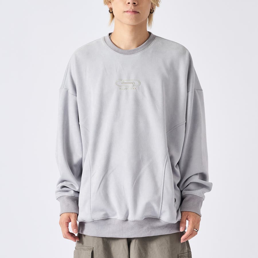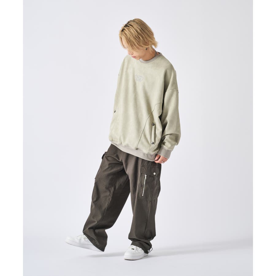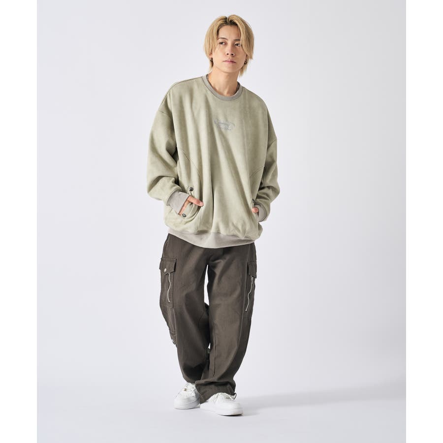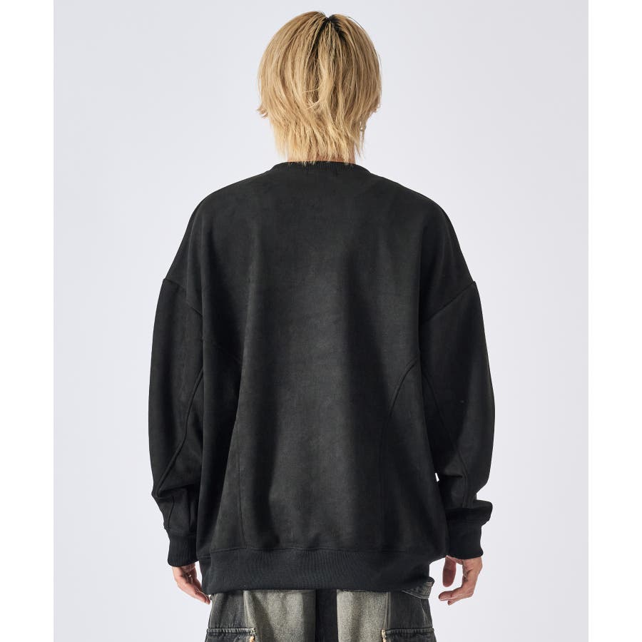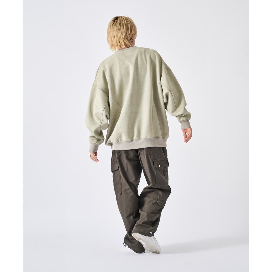 クラシカルなディティールが新鮮なワイドトレーナー ■detail サイドの切り替えとポケットはビンテージスウェットをイメージさせるデザイン オーバーサイズなルーズ感もパイピング切替が視覚効果でバランスの良いシルエットを演出している ■fabric ポリエステルのスエードだから上品な艶とドレープがあり、ケアもイージー ■styling タイトなスキニーでもワイドなパンツでも、老若男女幅広く着回せるデザインです | ||||||||||||||||||||