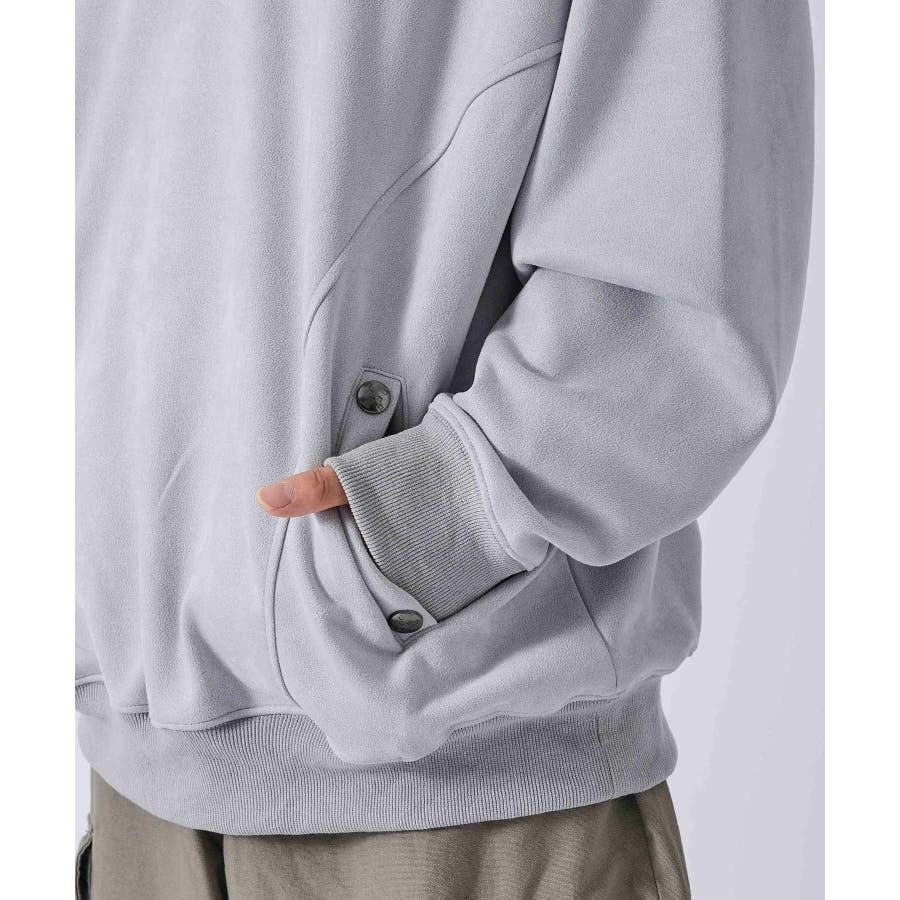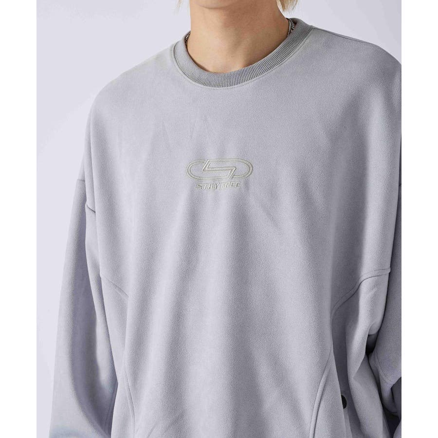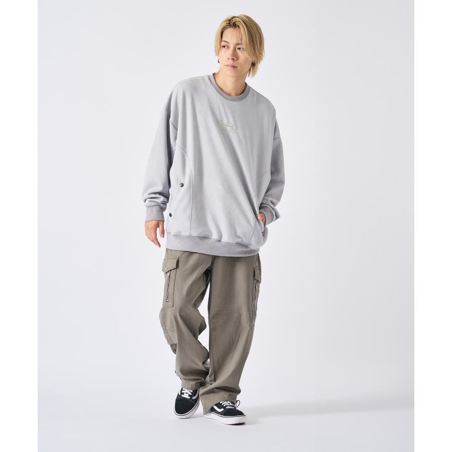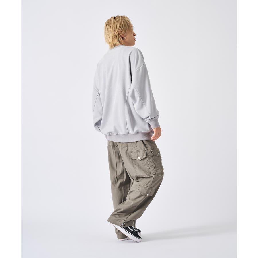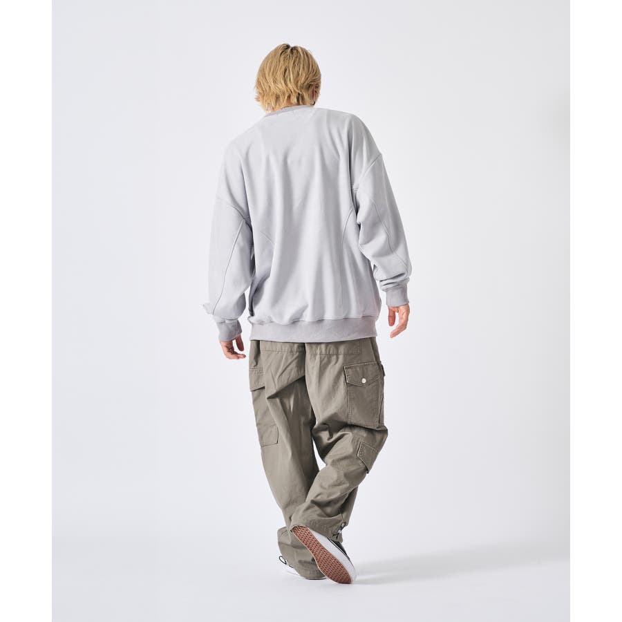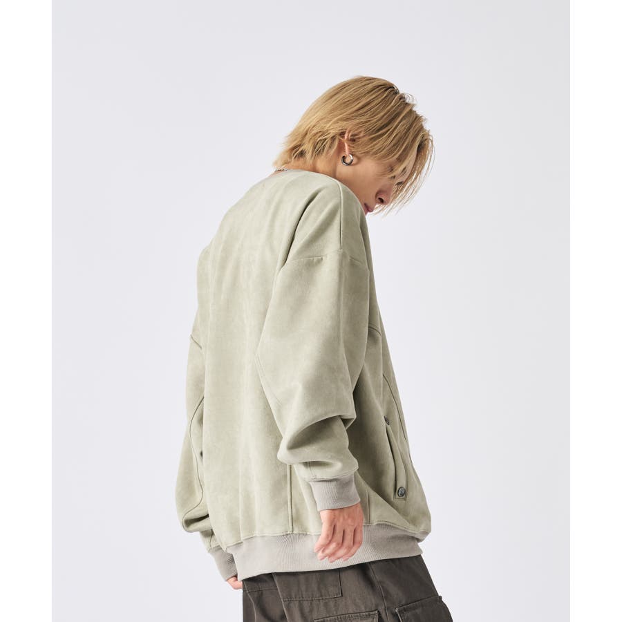 クラシカルなディティールが新鮮なワイドトレーナー ■detail サイドの切り替えとポケットはビンテージスウェットをイメージさせるデザイン オーバーサイズなルーズ感もパイピング切替が視覚効果でバランスの良いシルエットを演出している ■fabric ポリエステルのスエードだから上品な艶とドレープがあり、ケアもイージー ■styling タイトなスキニーでもワイドなパンツでも、老若男女幅広く着回せるデザインです | ||||||||||||||||||||
