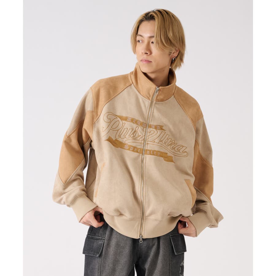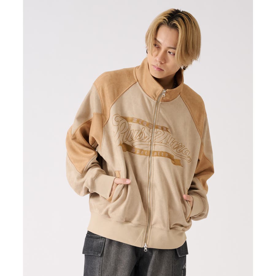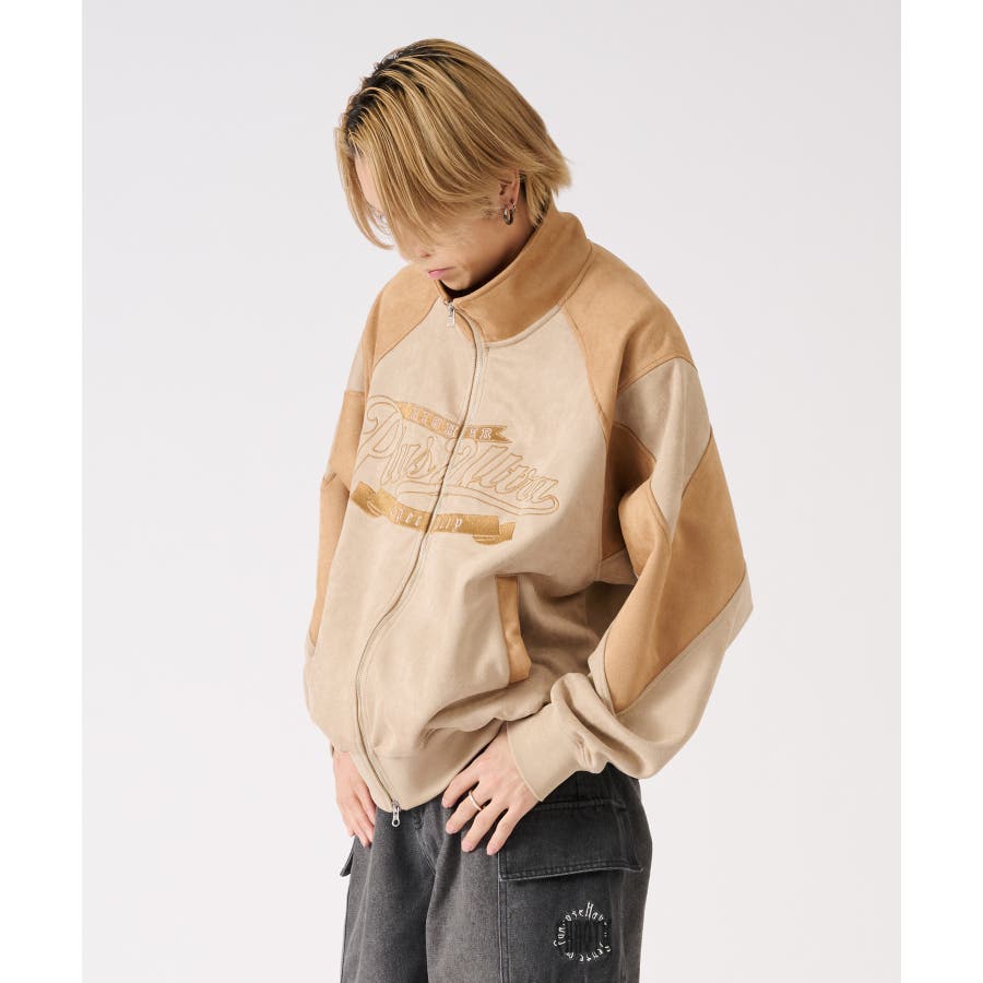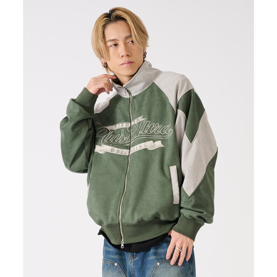 トレンドのカットスエード素材のトラックジャケットです☆ ■detail スポーティなトラックジャケットをトレンドのスエード素材で仕上げることで、よりアウターとしての存在感あるデザイン♪ 同素材のカラーを切り替えたデザインで、胸のロゴは全て刺繍で表現しているんです!!!スタジャン風にも着られます☆ フロントジップは上下に開閉するダブルジップで、着方の表現も自由にアレンジできるこの春大活躍の商品になっております ■fabric 光沢感があり肌触りもよいスエード素材!上品だけど扱いやすくコーデの幅が広がります☆ ■styling スウェットパンツやデニムとの相性がよく、インナーとしてもアウターとしても使用できるライトアウターとして、シーズンの変わり目や寒暖差の大きい日に便利なアイテムです♪ | ||||||||||||||||||||