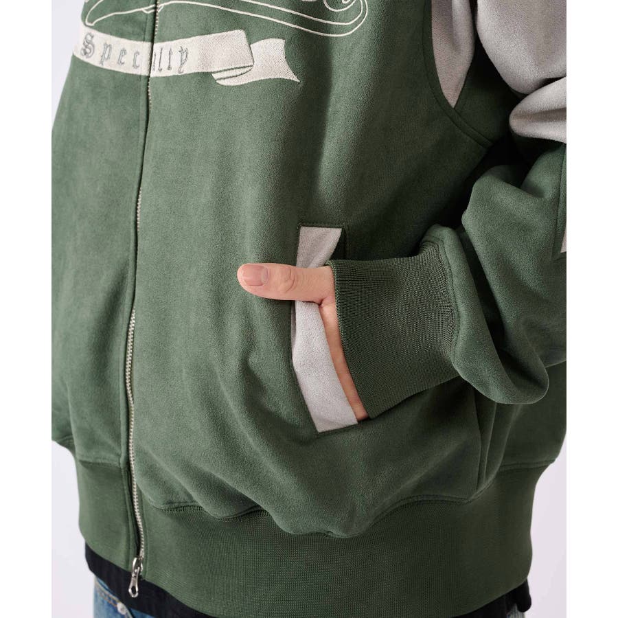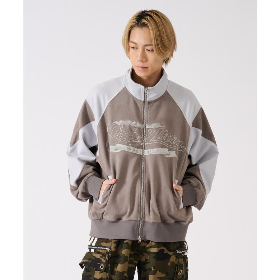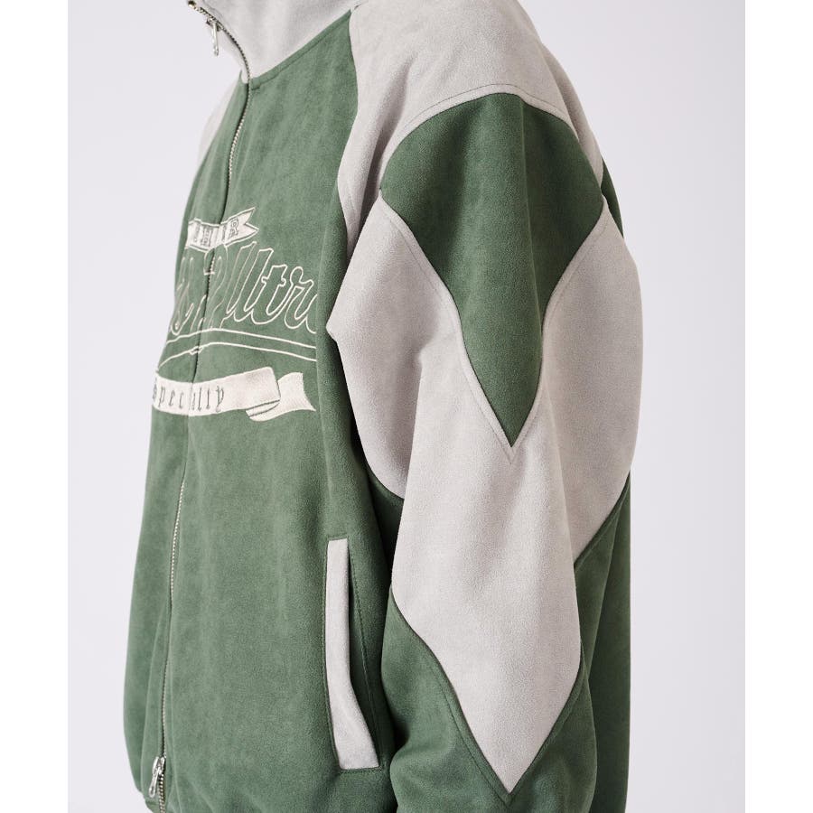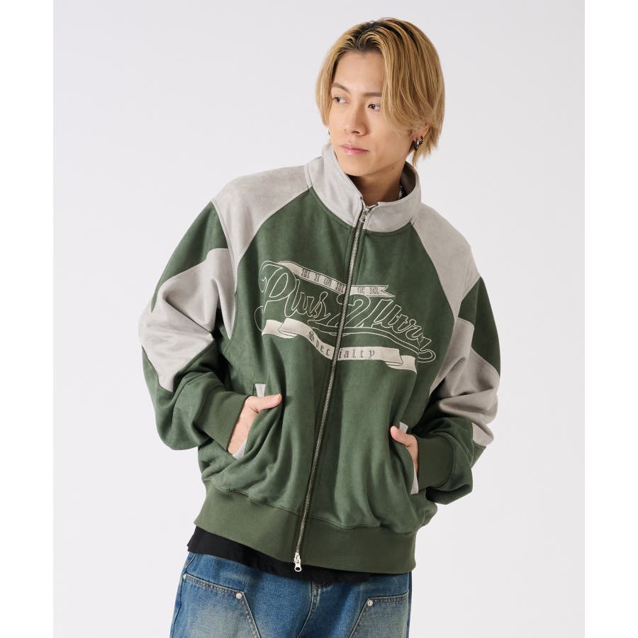 トレンドのカットスエード素材のトラックジャケットです☆ ■detail スポーティなトラックジャケットをトレンドのスエード素材で仕上げることで、よりアウターとしての存在感あるデザイン♪ 同素材のカラーを切り替えたデザインで、胸のロゴは全て刺繍で表現しているんです!!!スタジャン風にも着られます☆ フロントジップは上下に開閉するダブルジップで、着方の表現も自由にアレンジできるこの春大活躍の商品になっております ■fabric 光沢感があり肌触りもよいスエード素材!上品だけど扱いやすくコーデの幅が広がります☆ ■styling スウェットパンツやデニムとの相性がよく、インナーとしてもアウターとしても使用できるライトアウターとして、シーズンの変わり目や寒暖差の大きい日に便利なアイテムです♪ | ||||||||||||||||||||