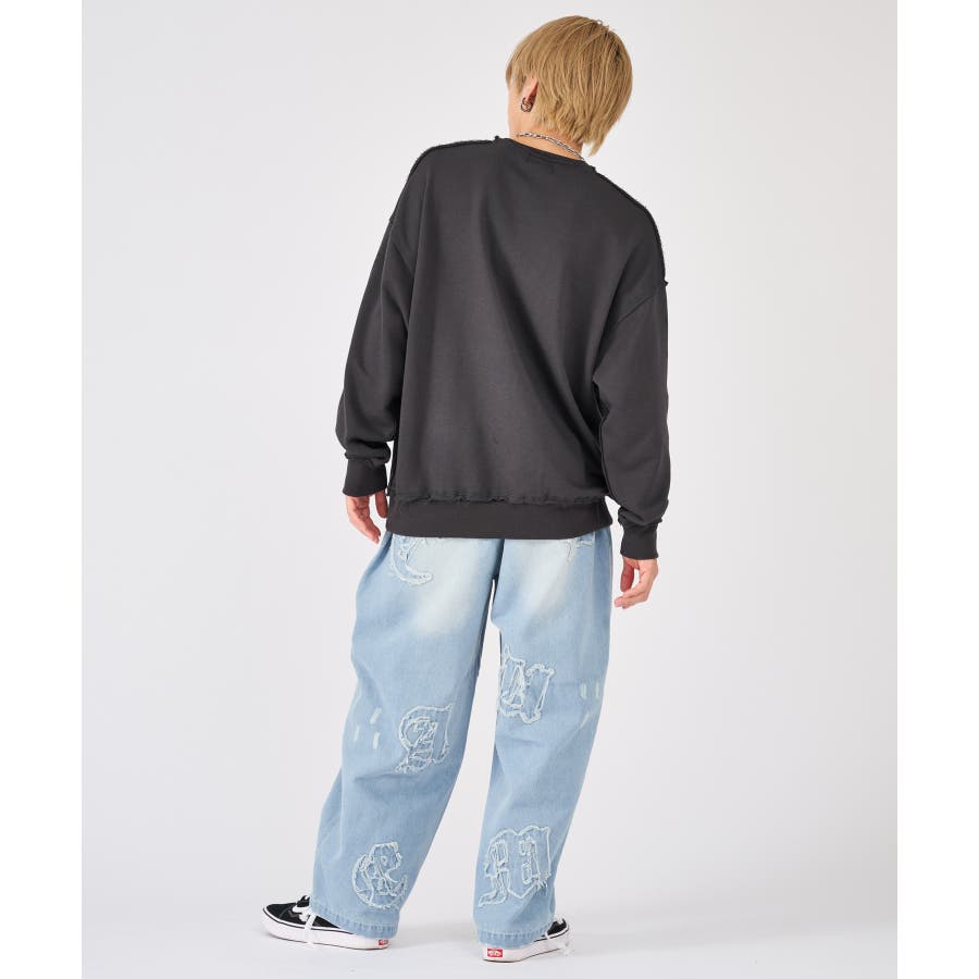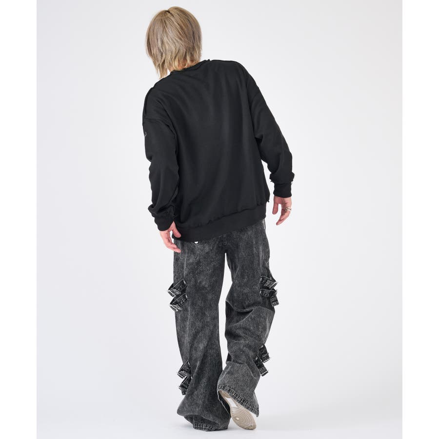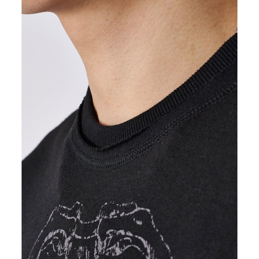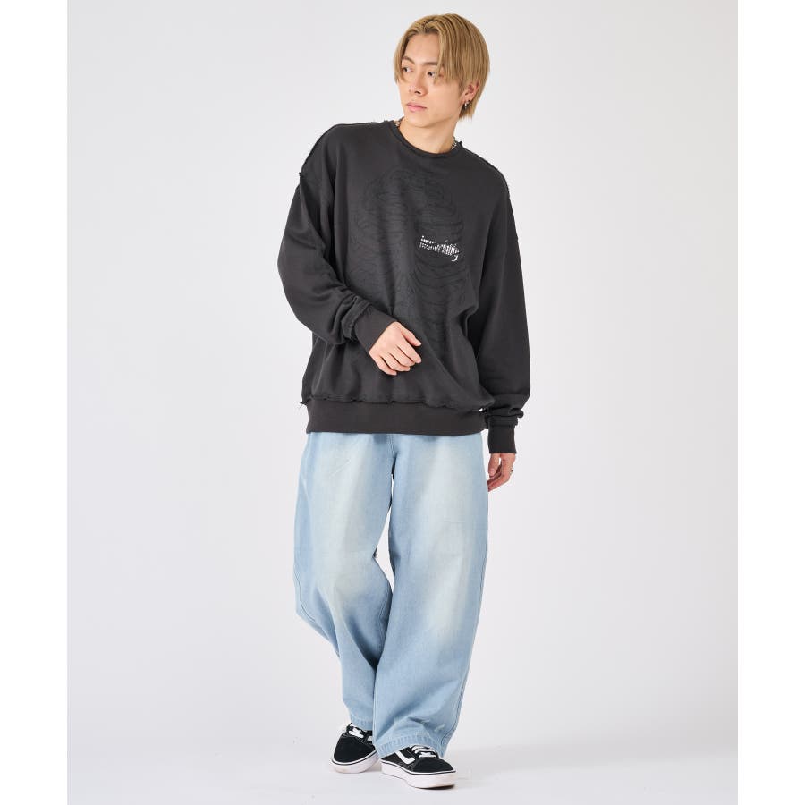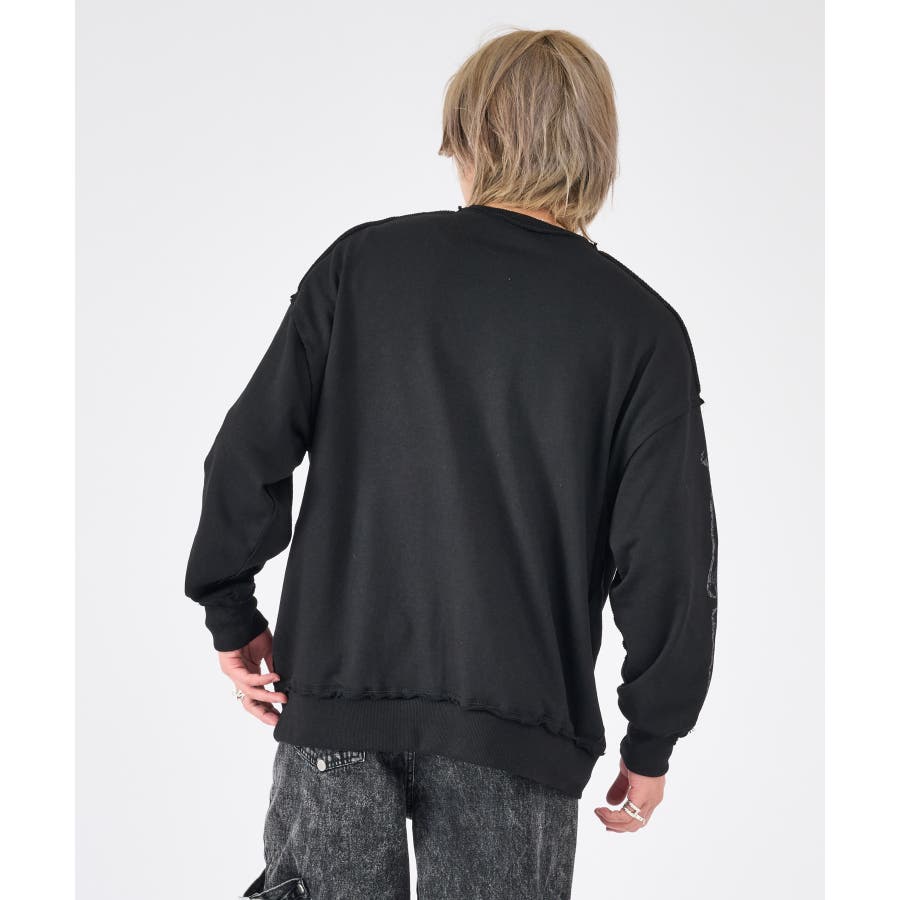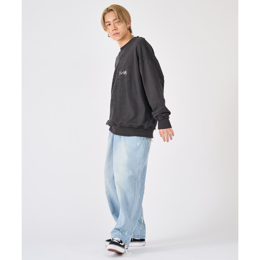 肋骨のプリントがされたドクロトレーナーです☆ ■detail フロントはレントゲンの様な肋骨のプリントで、アクセントでワンポイントの掠れロゴプリント、袖には腕の骨のプリントを施しております! 首周りや袖つけ、リブ部分など縫い合わせる部分は縫い代を表に出したデザインが新しいです♪ ■fabric ビンテージ感ある裏毛素材を使用し、褪せた色合いも雰囲気がありかっこいいです! ■styling 色落ちしたデニムとの相性がピッタリで、カーゴパンツやスカートとの相性も抜群です☆ | ||||||||||||||||||||