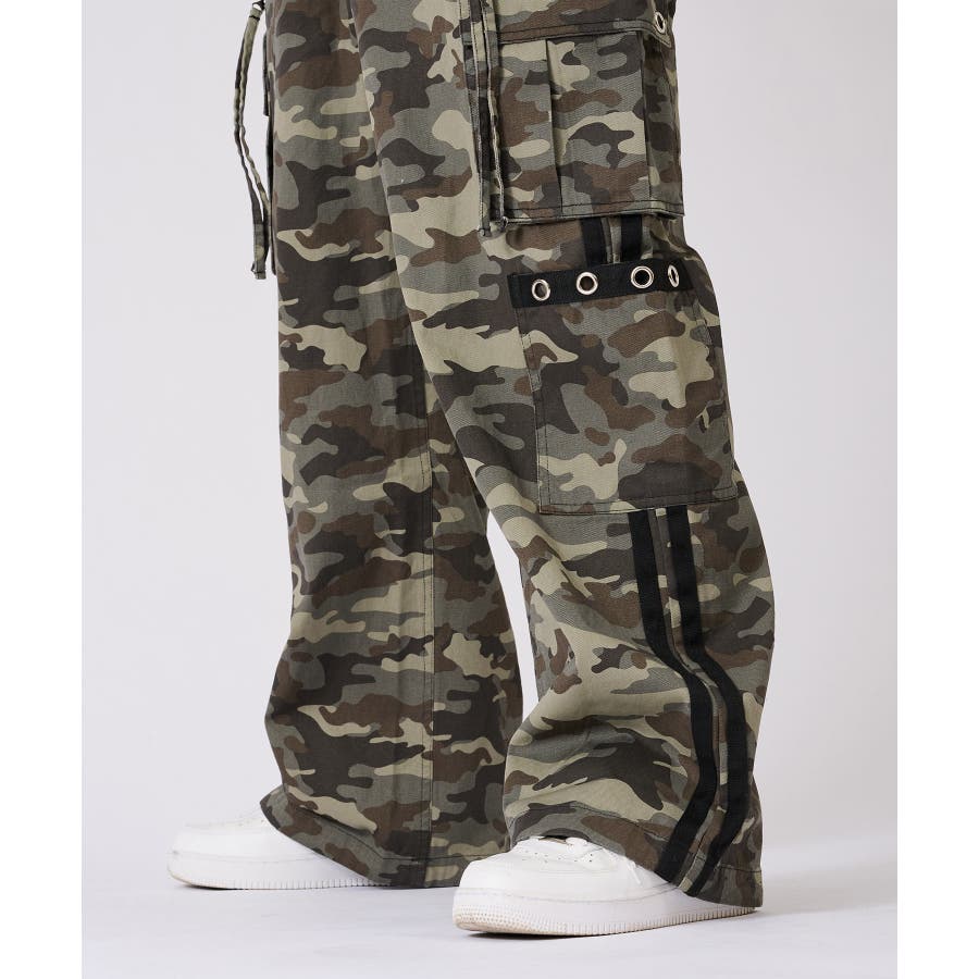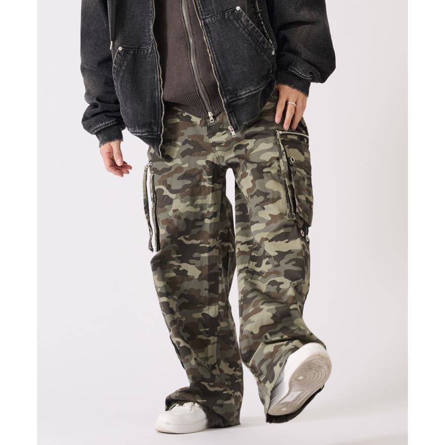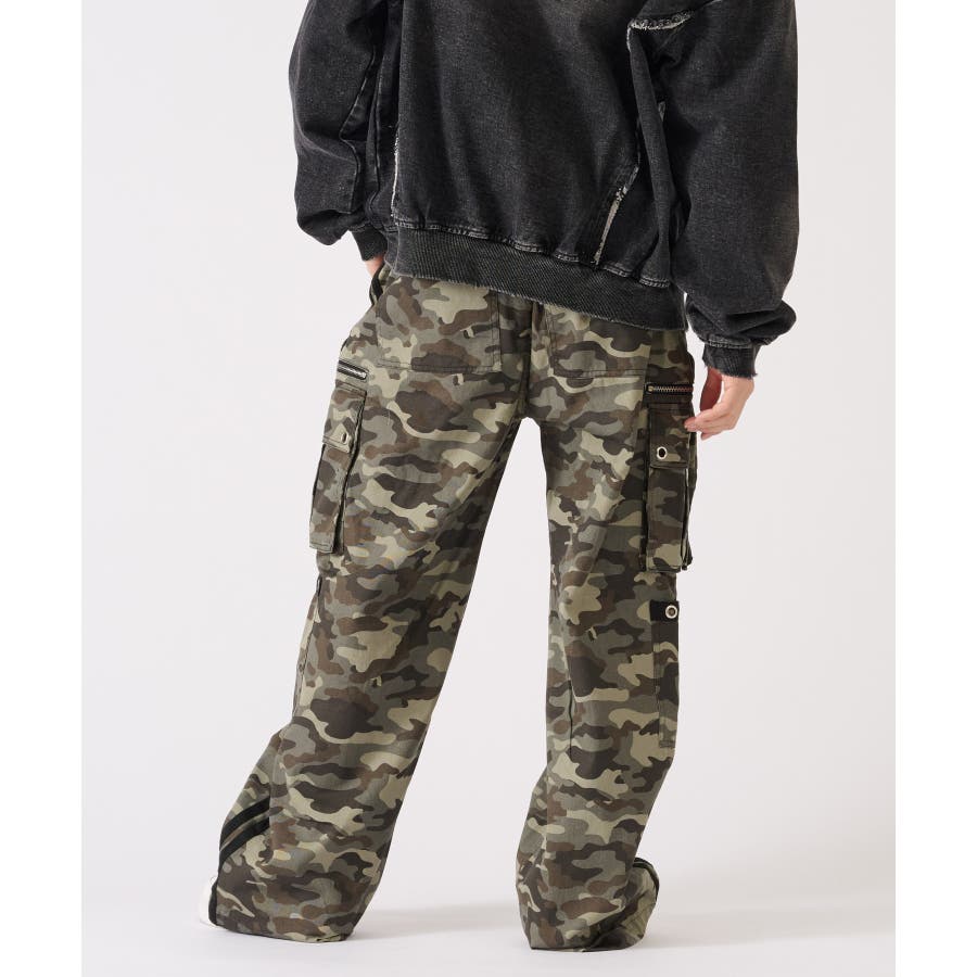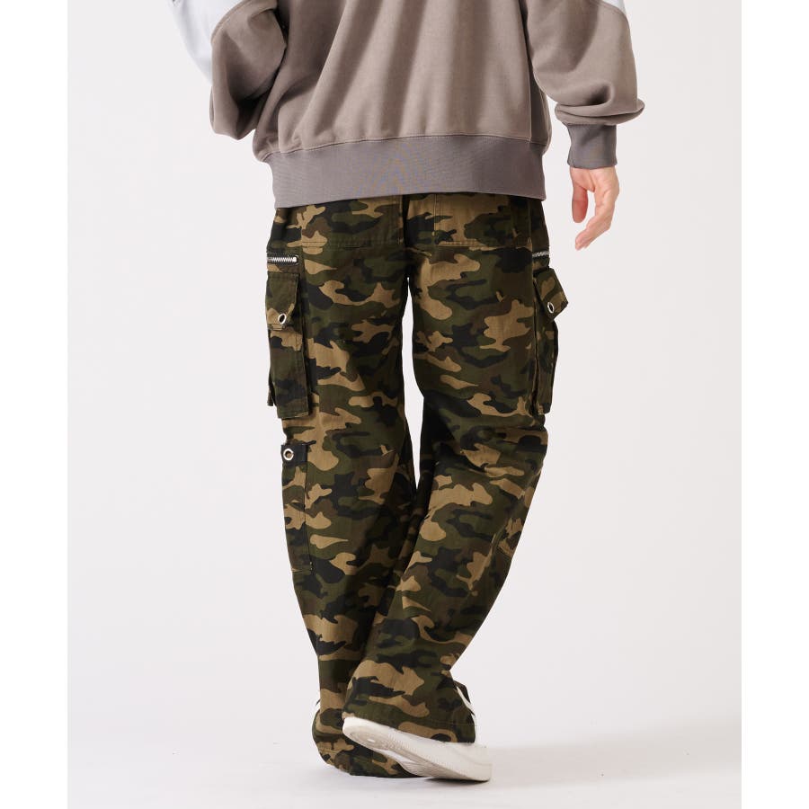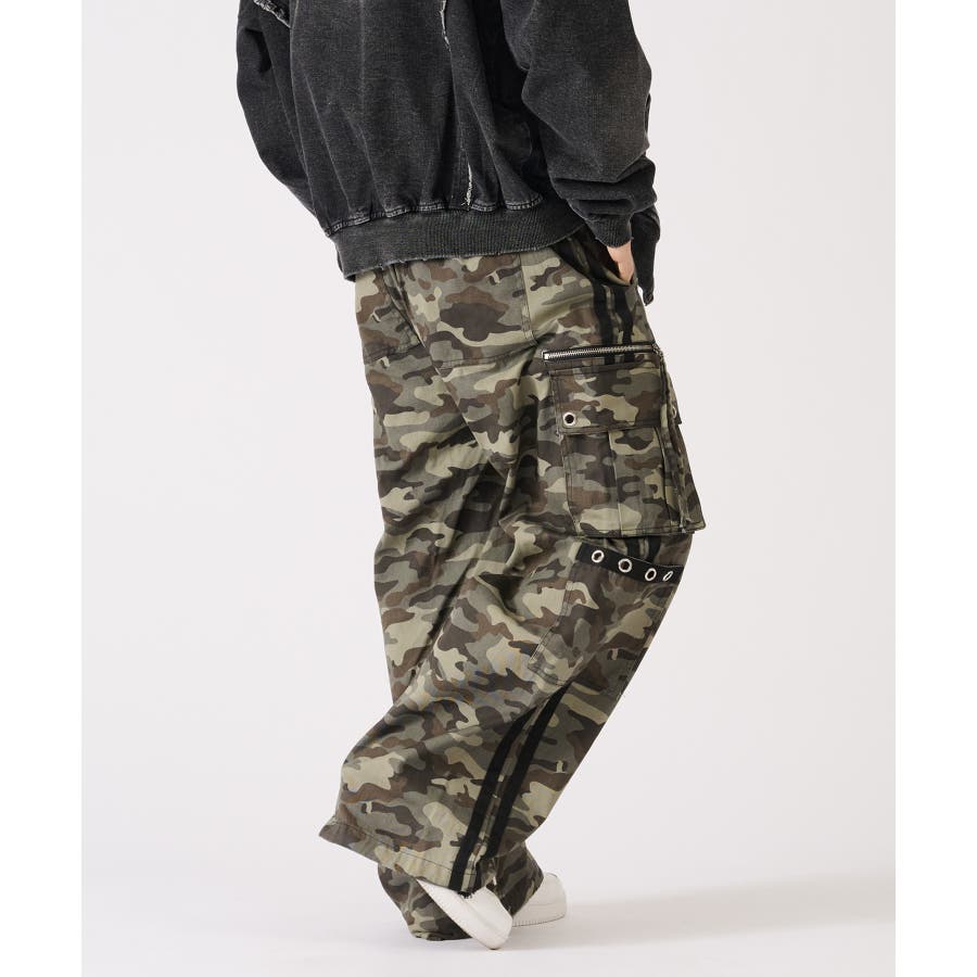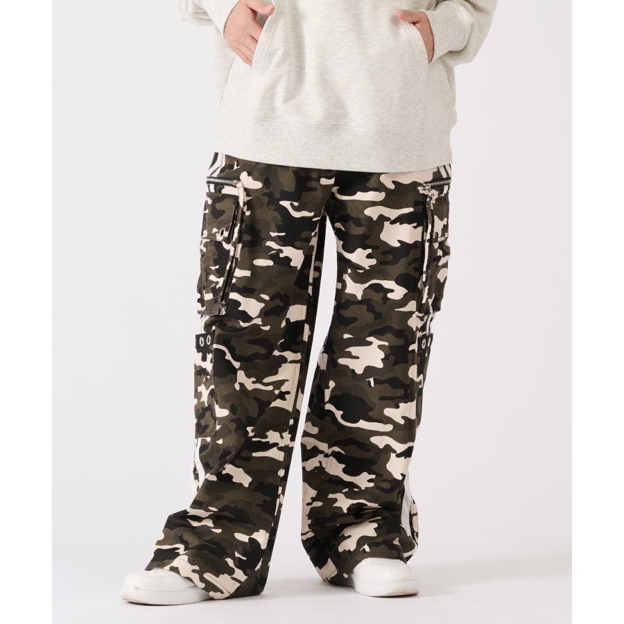 ワイドシルエットのカモフラパンツ☆ ■detail カーゴポケットは左右上下に2つずつ配置され、一段目のカーゴポケットの上にもファスナーポケットを配置、更には腰のサイドポケットとバックの立体的なポケットとたくさんあってサイズも大きめなのでポケットへの収納率は抜群です♪ サイドラインも可愛くスポーツ要素もあるので超万能☆ ウエストはバックがゴム仕様で男女問わず穿きやすく、裾のドローコードによって長さやシルエットの調整も可能なのでシルエットも楽しめます(^^) ■fabric オールシーズン着用できるコットン素材を使用し、3色のカモフラ柄をご用意☆ ■styling トレンド要素をミックスしたこのデザインは、色んなコーデと合わせやすく重宝します♪ 存在感あるアイテムなのでTシャツなどシンプルなトップスでも映えて、男女問わずユニセックスに着られるアイテムです | ||||||||||||||||||||