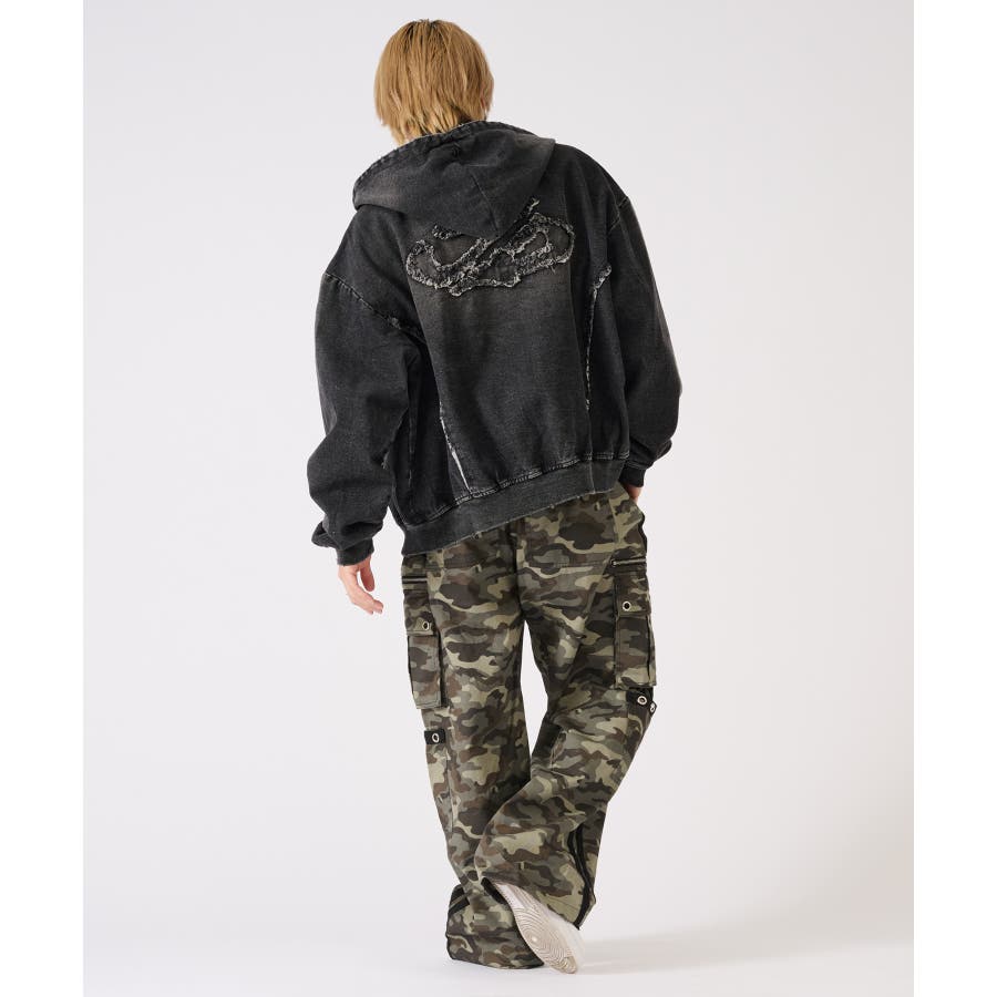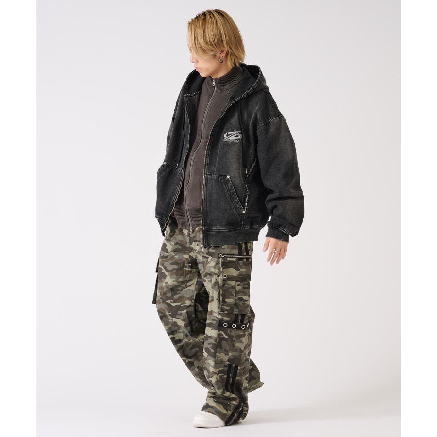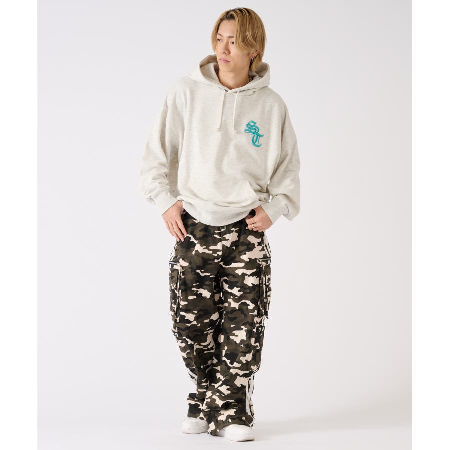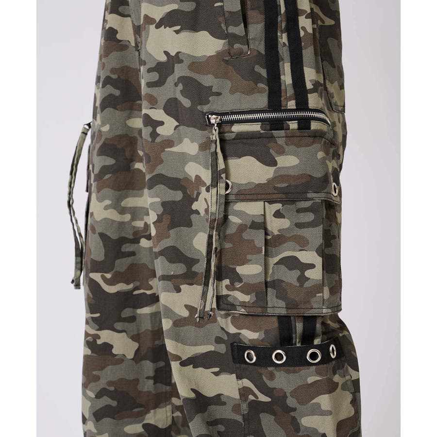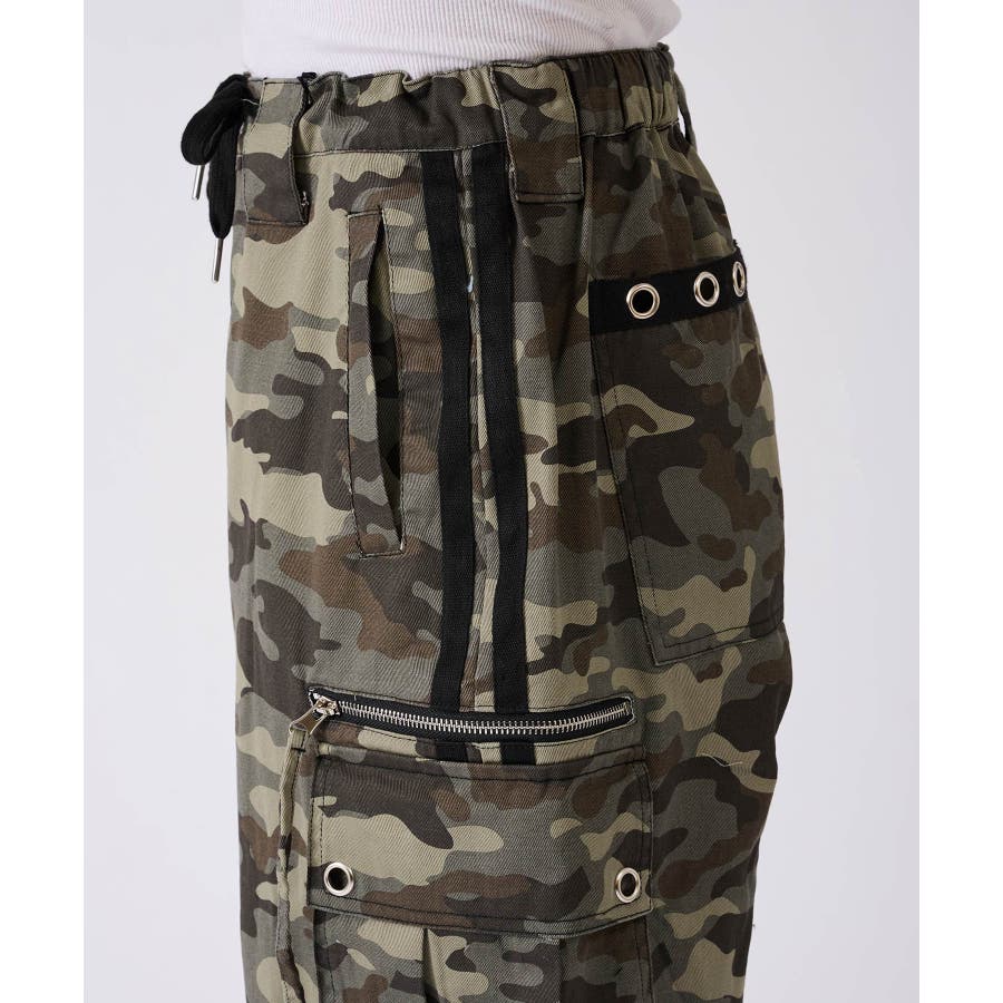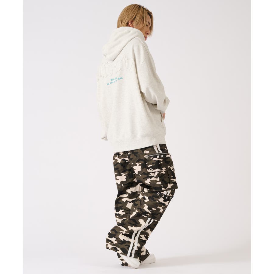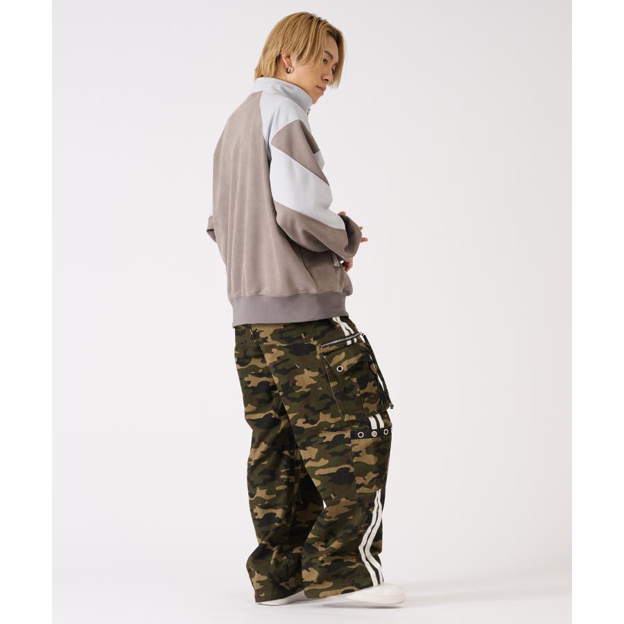 ワイドシルエットのカモフラパンツ☆ ■detail カーゴポケットは左右上下に2つずつ配置され、一段目のカーゴポケットの上にもファスナーポケットを配置、更には腰のサイドポケットとバックの立体的なポケットとたくさんあってサイズも大きめなのでポケットへの収納率は抜群です♪ サイドラインも可愛くスポーツ要素もあるので超万能☆ ウエストはバックがゴム仕様で男女問わず穿きやすく、裾のドローコードによって長さやシルエットの調整も可能なのでシルエットも楽しめます(^^) ■fabric オールシーズン着用できるコットン素材を使用し、3色のカモフラ柄をご用意☆ ■styling トレンド要素をミックスしたこのデザインは、色んなコーデと合わせやすく重宝します♪ 存在感あるアイテムなのでTシャツなどシンプルなトップスでも映えて、男女問わずユニセックスに着られるアイテムです | ||||||||||||||||||||