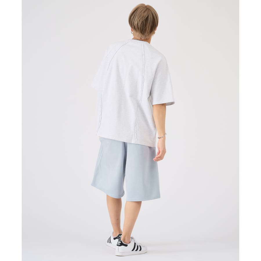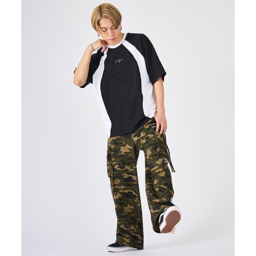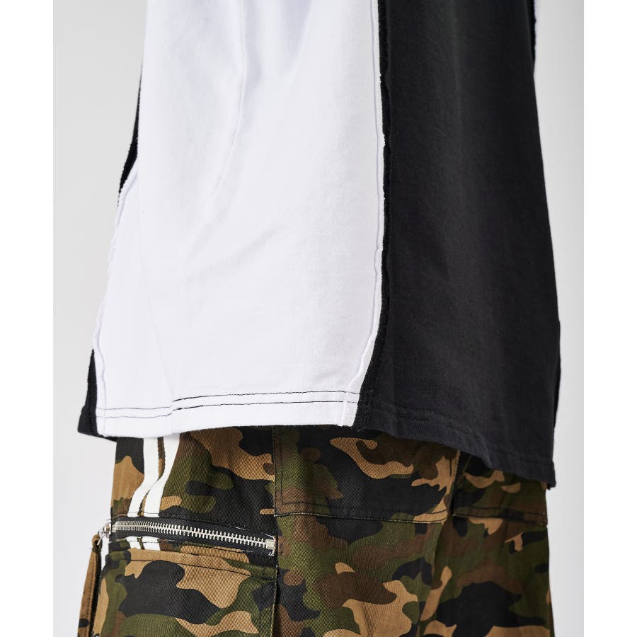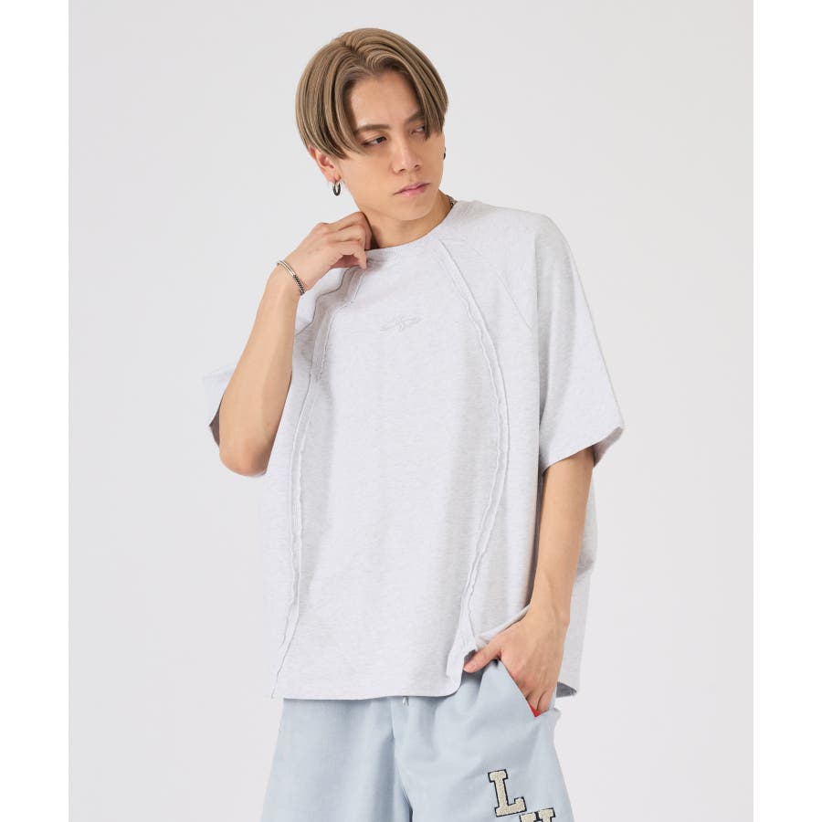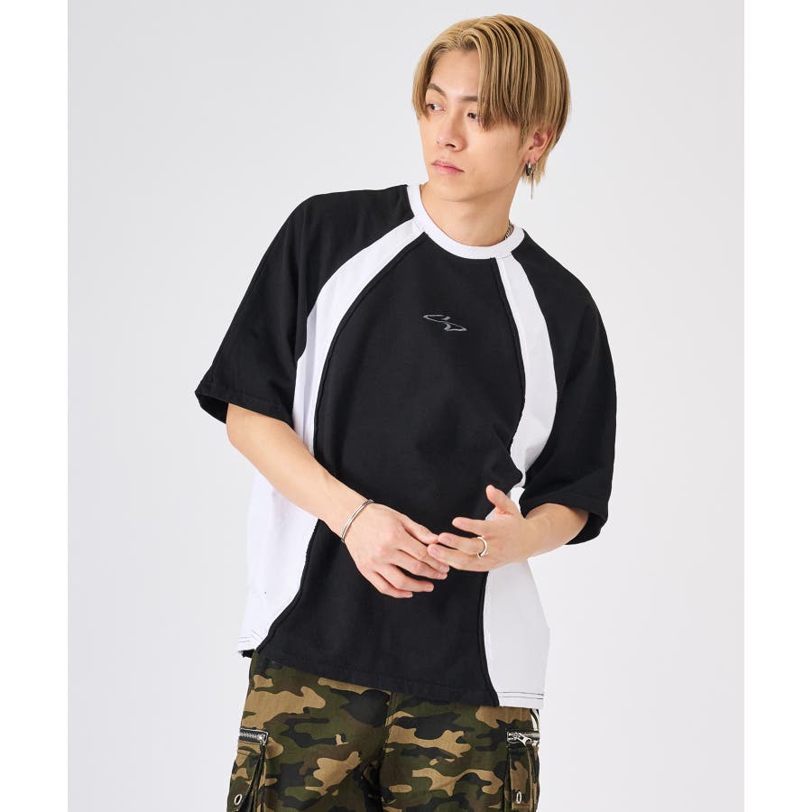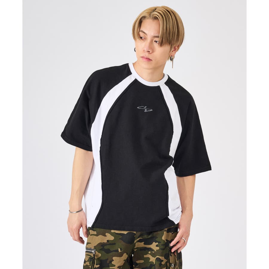 カットオフの切り替えがクールな半袖TEE☆ ■detail ウェーブ状の切り替えが印象的なデザインで、その切替部分は生地の始末をしないカットオフ仕上げが特徴的☆ スポーティな要素とカジュアルな仕上げが新鮮なデザイン(^^♪ ■fabric コットン素材のミニ裏毛は、Tシャツとしてはしっかりした素材で、薄めのトレーナーと言ったイメージの春から使える半袖アイテム♪ 白、黒の2色は無地ライクな雰囲気で切り替えがアクセントになり、クレイジーは懐かしさを感じる3色展開です☆ ■styling インナーをロンT、Tシャツ、タンクトップと変えることで温度調節しやすく、またレイヤードの仕方で着回しを楽しめます♪ | ||||||||||||||||||||