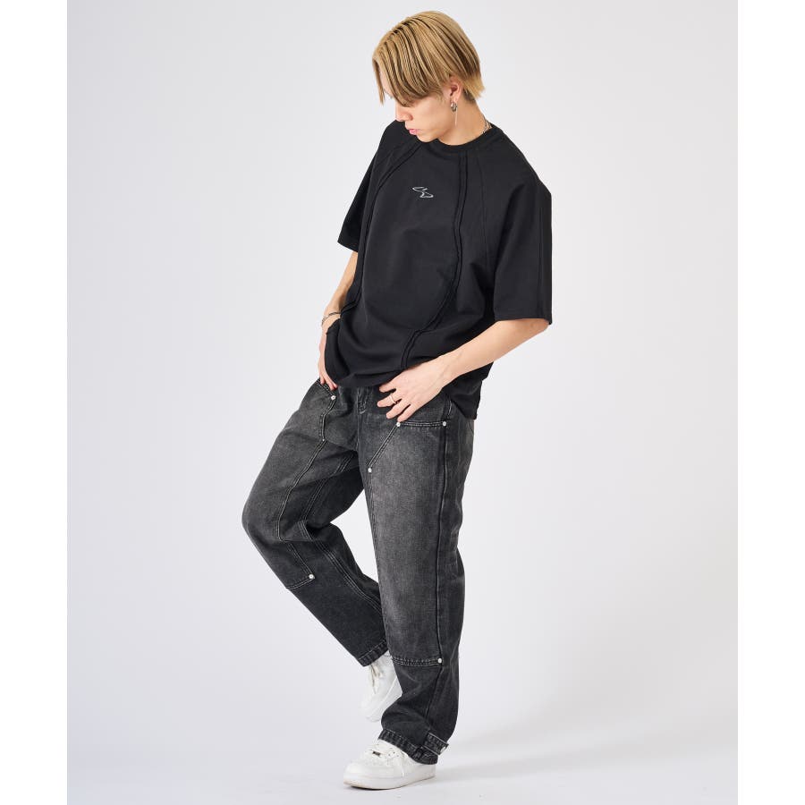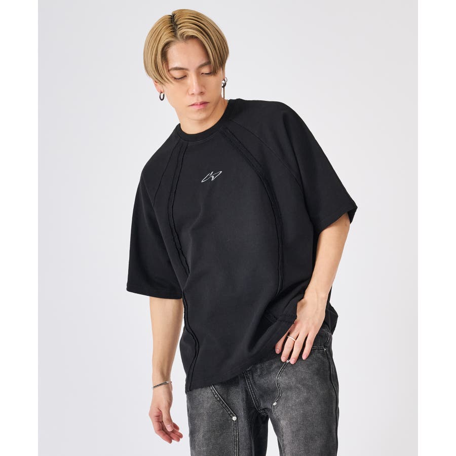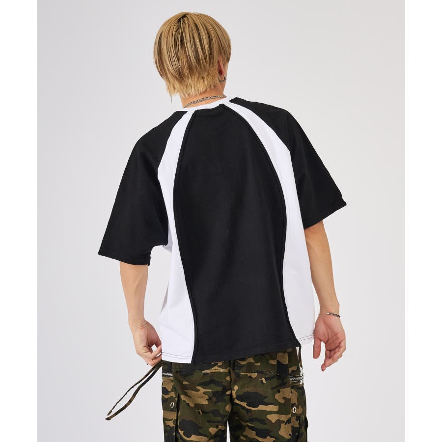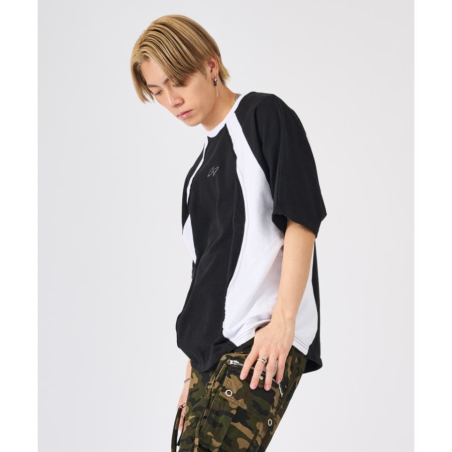 カットオフ切り替え半袖Tee