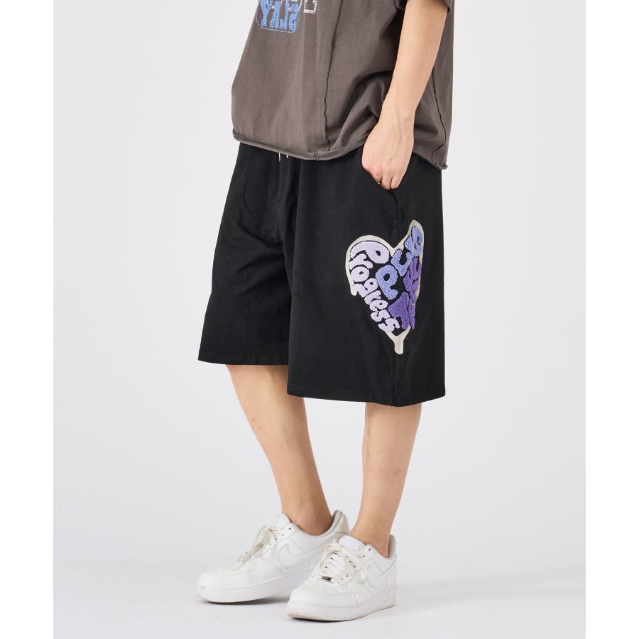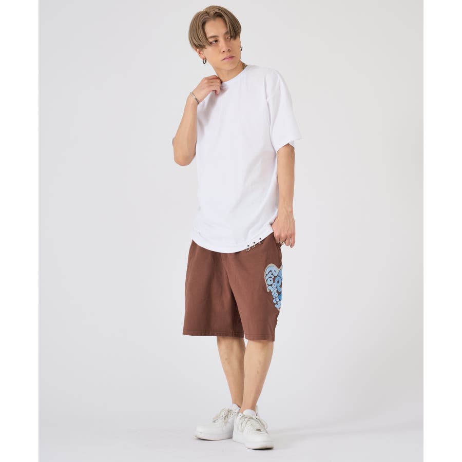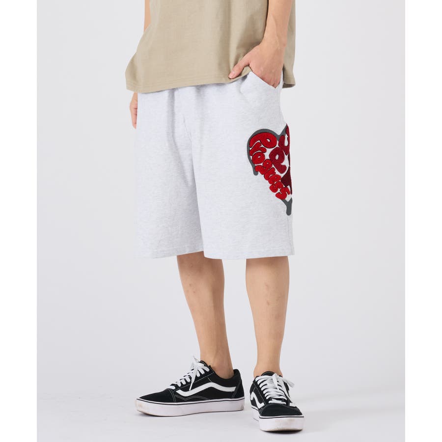 | サイドのハート柄が可愛いショートパンツ ■detail 左のポケット下の柄は、ふわふわのサガラ刺繍のロゴをグラデーションカラーでハート柄にかたどったデザインサイドに配置することで前後、サイドからも目に付くアクセントになっています ■fabric コットン100%のミニ裏毛は吸湿性高く、肌触りもソフトで一般的なスウェット素材よりやや薄くTシャツよりしっかりした生地なのでシーズン長く穿ける超万能アイテム☆ ■styling 同素材のTシャツとセットアップスタイルが楽しめカップルコーデにピッタリなアイテム | ||||||||||||||||||||