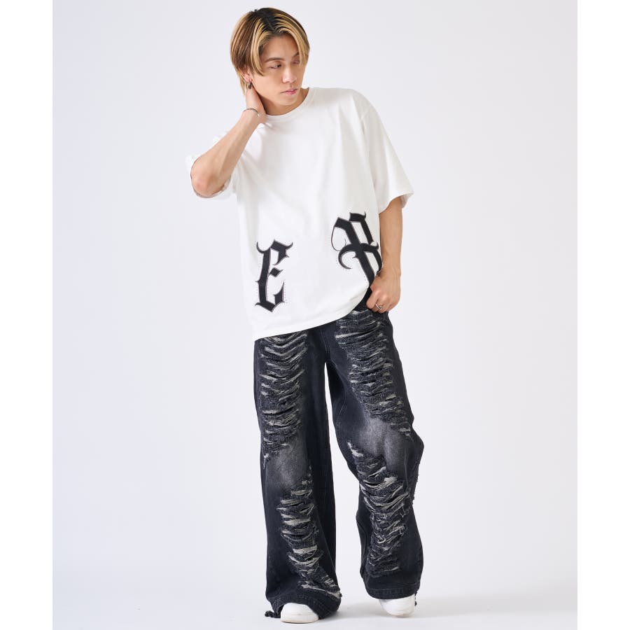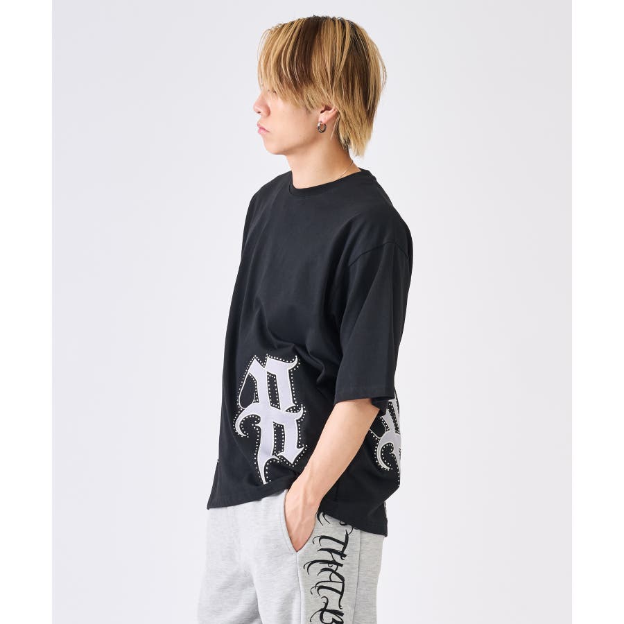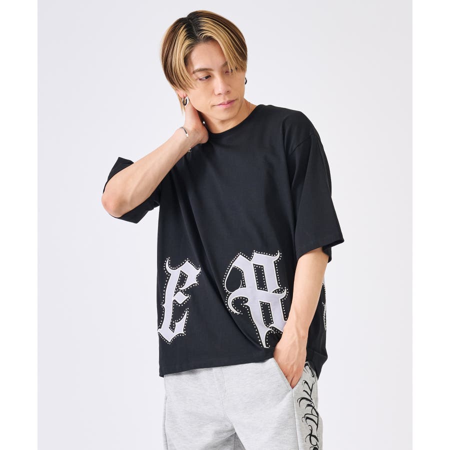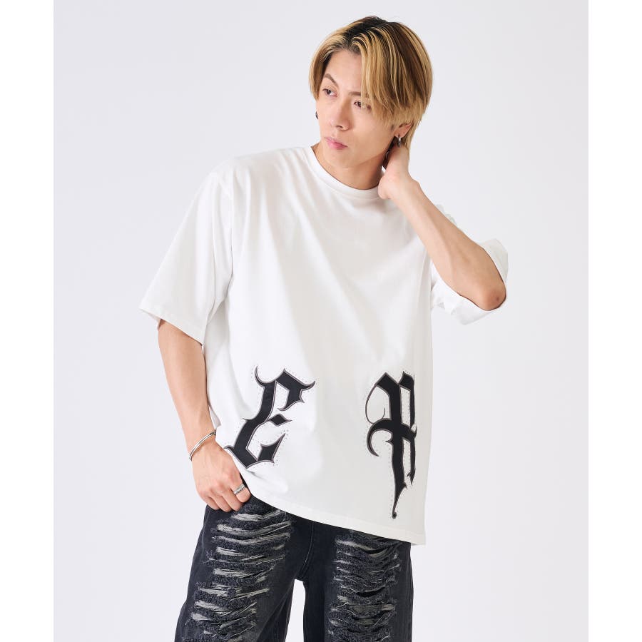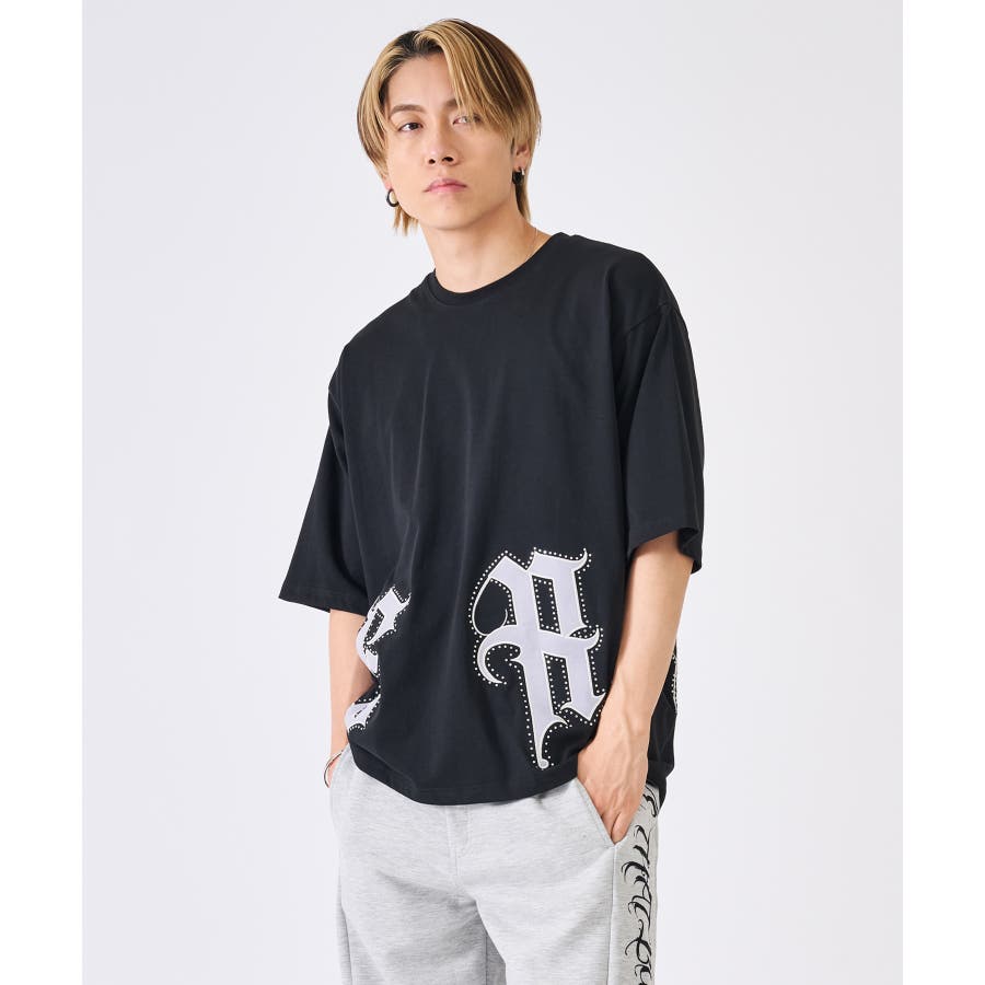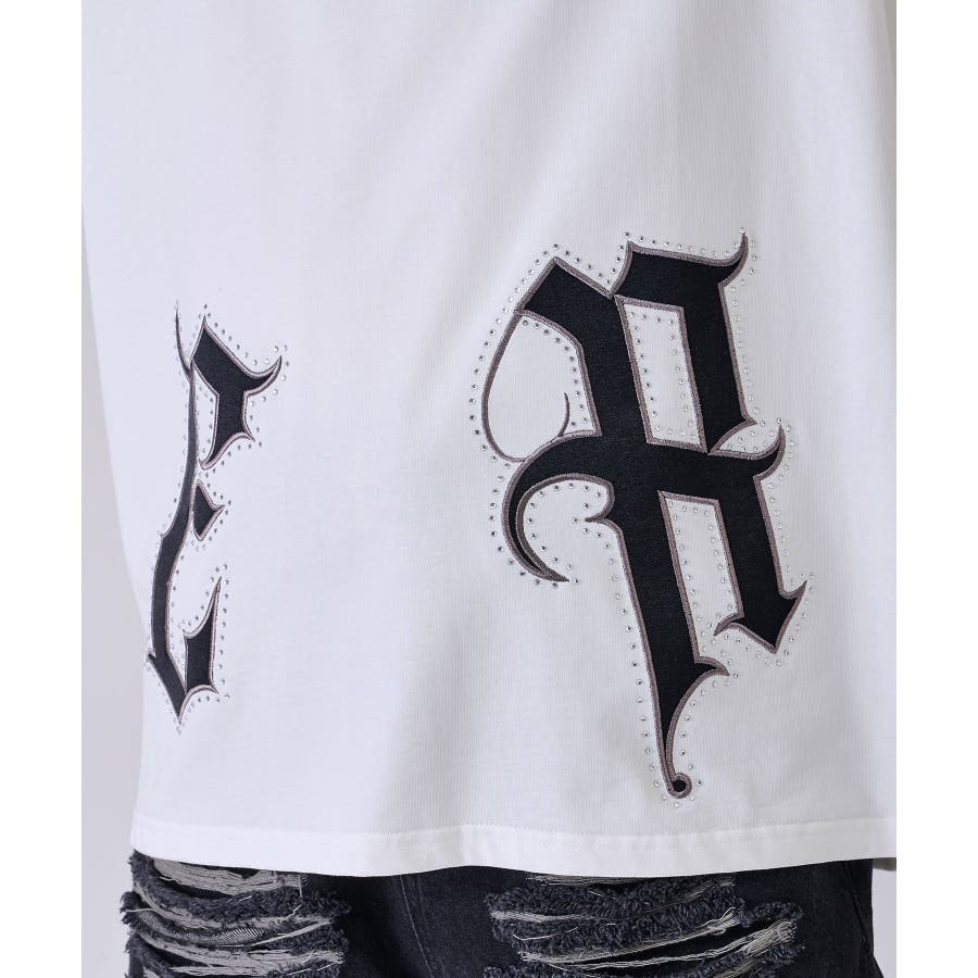 裾の大きなロゴがクールなTシャツ☆ ■detail 裾のロゴはレザー風のアップリケで周りをラインストーンで飾っており、キラキラが目を引くかっこいいアイテム☆ ■fabric こちらは32双と呼ばれる細番手の糸を撚り合わせた表面がクリアでシルキーな肌触り♪ ■styling ワイドなボトムやショートパンツにピッタリでかっこよく着回せるTシャツ☆ | ||||||||||||||||||||