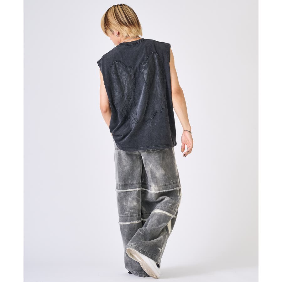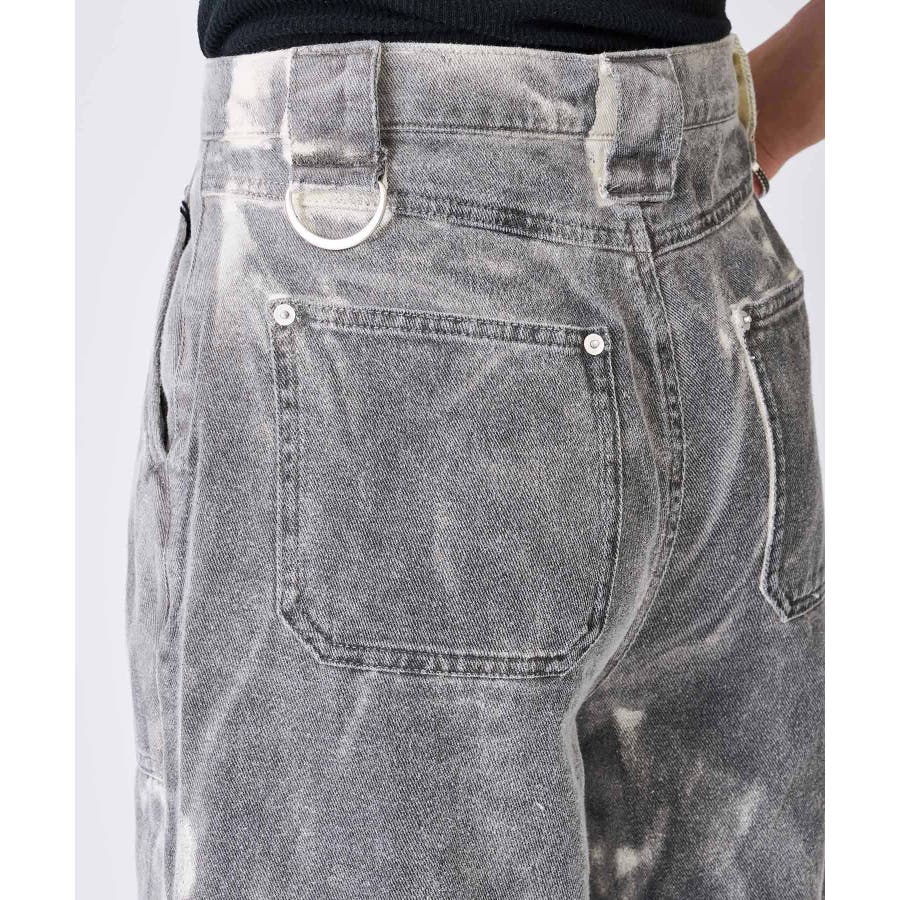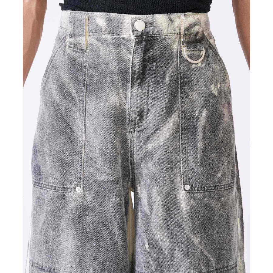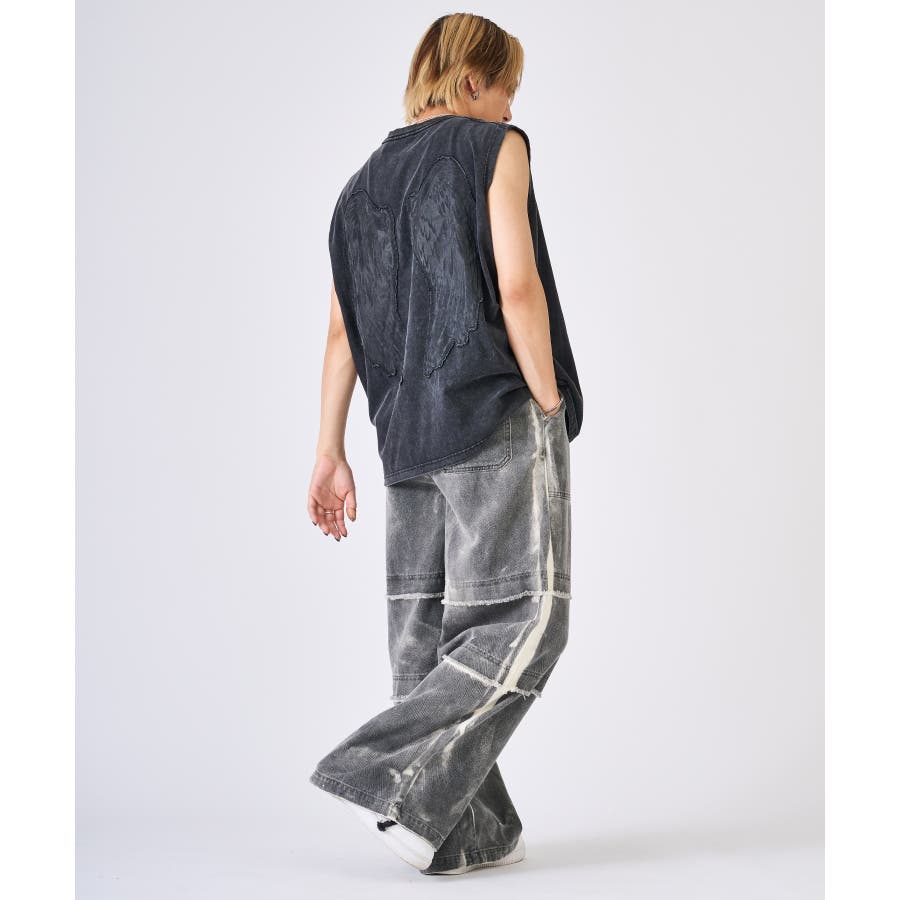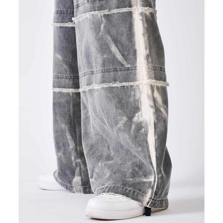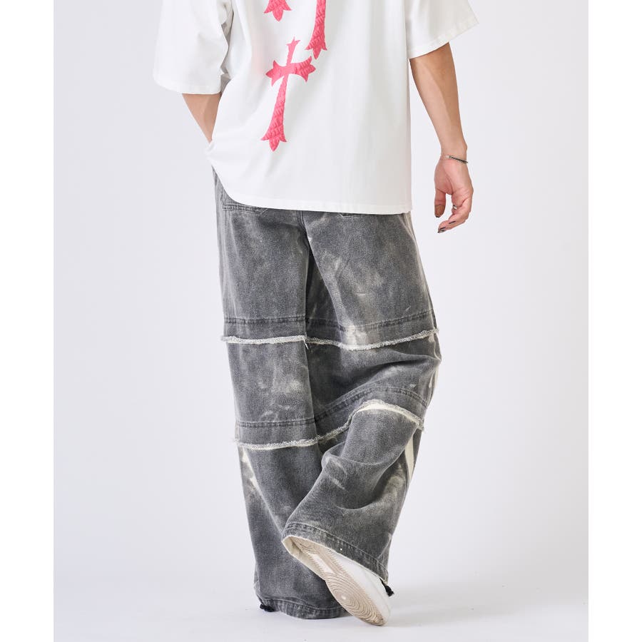 汚れた色合いが特徴のワイドパンツ☆ ■detail スプレーによってランダムに色付けした感じがストリートスタイルらしいデザイン! 膝の部分は敢えて縫い繋いだデザインで、縫いしろ部分がはみ出してフリンジ仕上げになっているのも特徴的☆ 股上深めのハイウエストで脚長にも見えるワイドシルエット(^^♪ 裾にはドローコードを装備し長さやシルエットの調整もできます☆ ■fabric 綿のカツラギ生地を仕様し、独特の張り感がワークパンツらしい! また、カツラギは肌触りがドライでさらっとした履き心地☆ ■styling ユニセックスで着用できるアイテムで、汚れを気のせず白のコーデが楽しめます(^^) | ||||||||||||||||||||