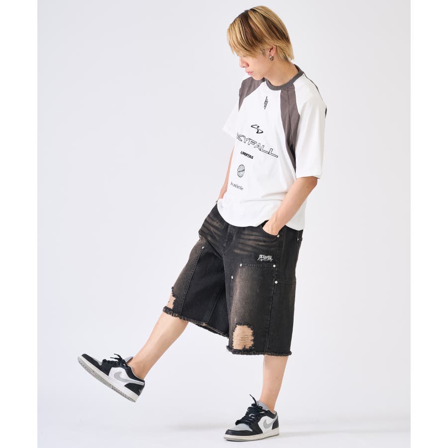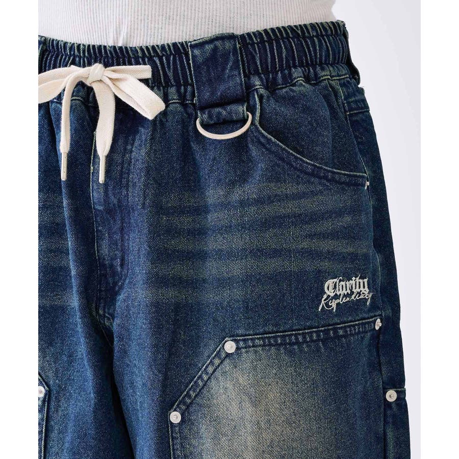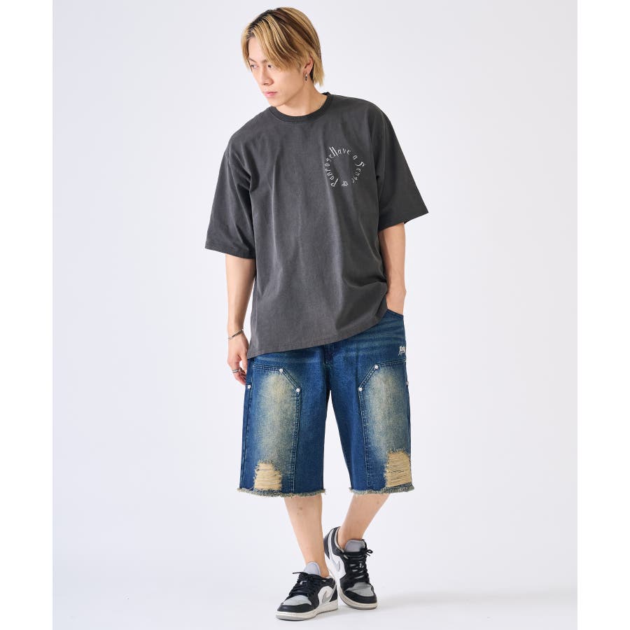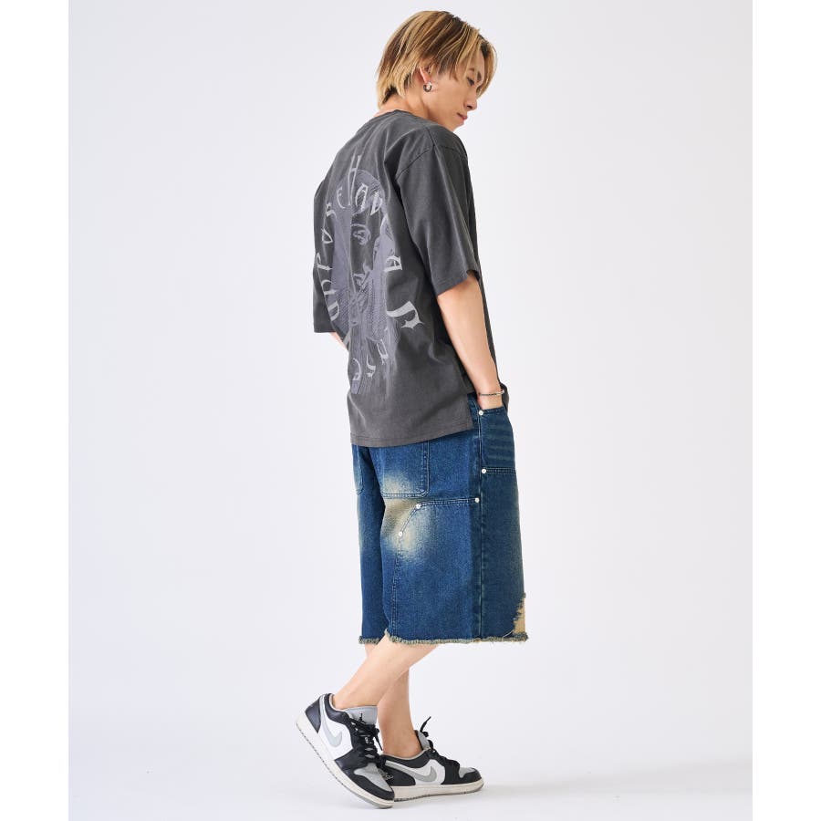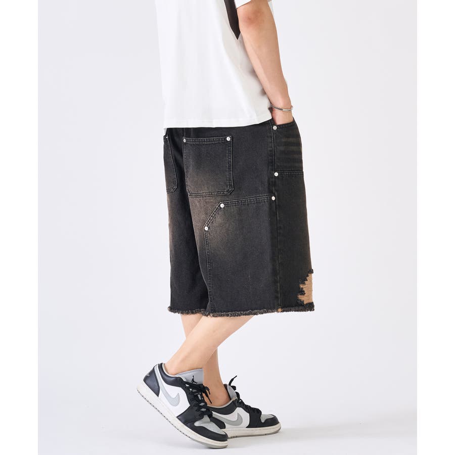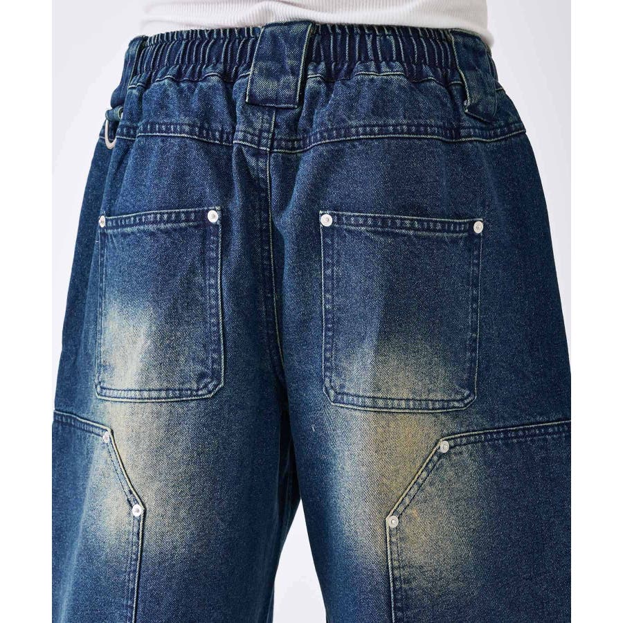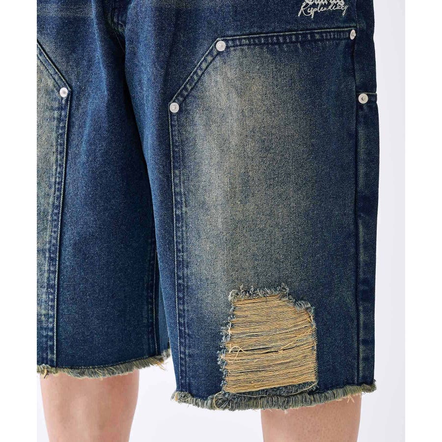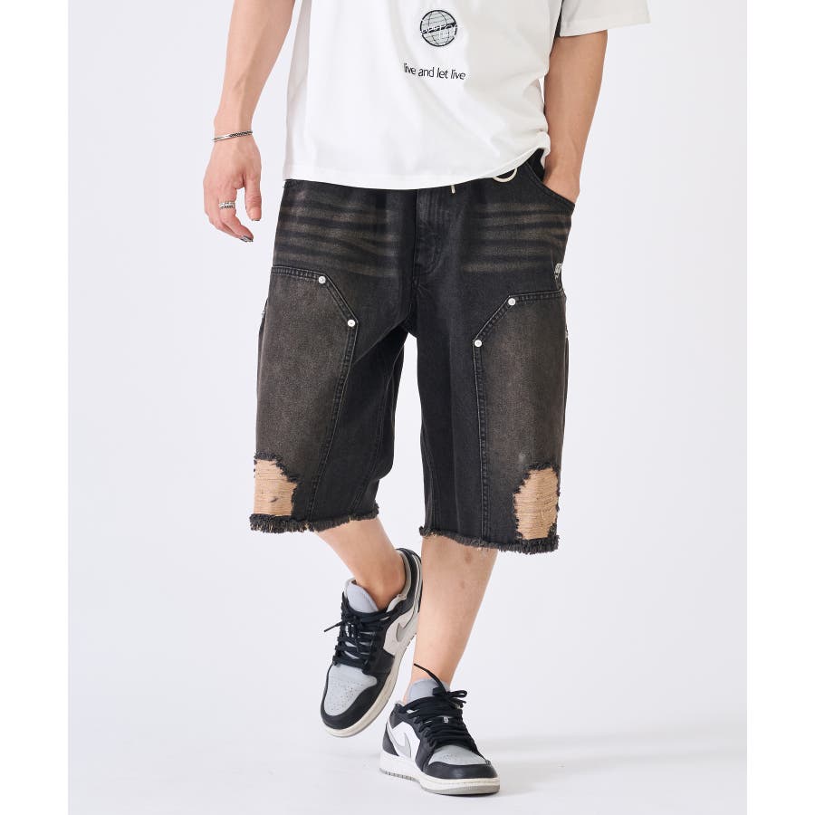 | ダブルニーのデニムショートパンツ☆ ■detail ウエストはシャーリング&ドローコードでサイズ調整ができるデザイン☆ 裾にダメージ加工した膝丈のオーバーサイズなシルエットで楽ちん☆ ■fabric やや軽めの11.5OZのデニムを使用しているので夏でも穿きやすい☆ ■styling ストリートスタイルではマストなかっこいいショートパンツ! ユニセックスに使えて、カップルコーデやペアコーデにピッタリなアイテムです | ||||||||||||||||||||