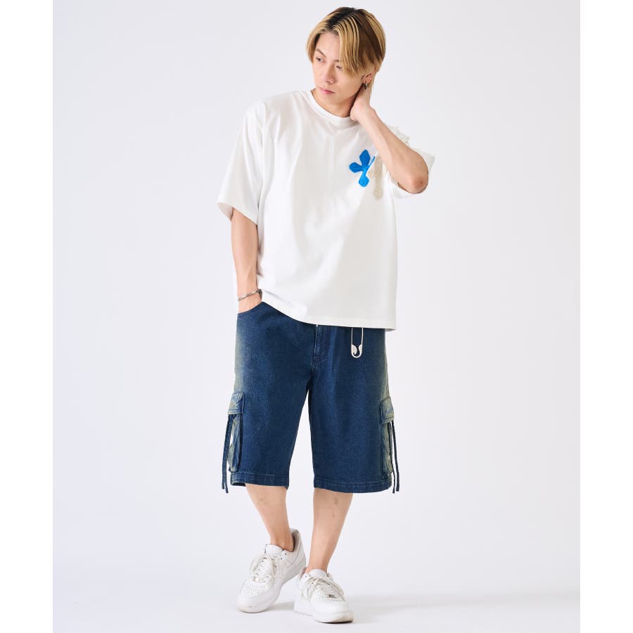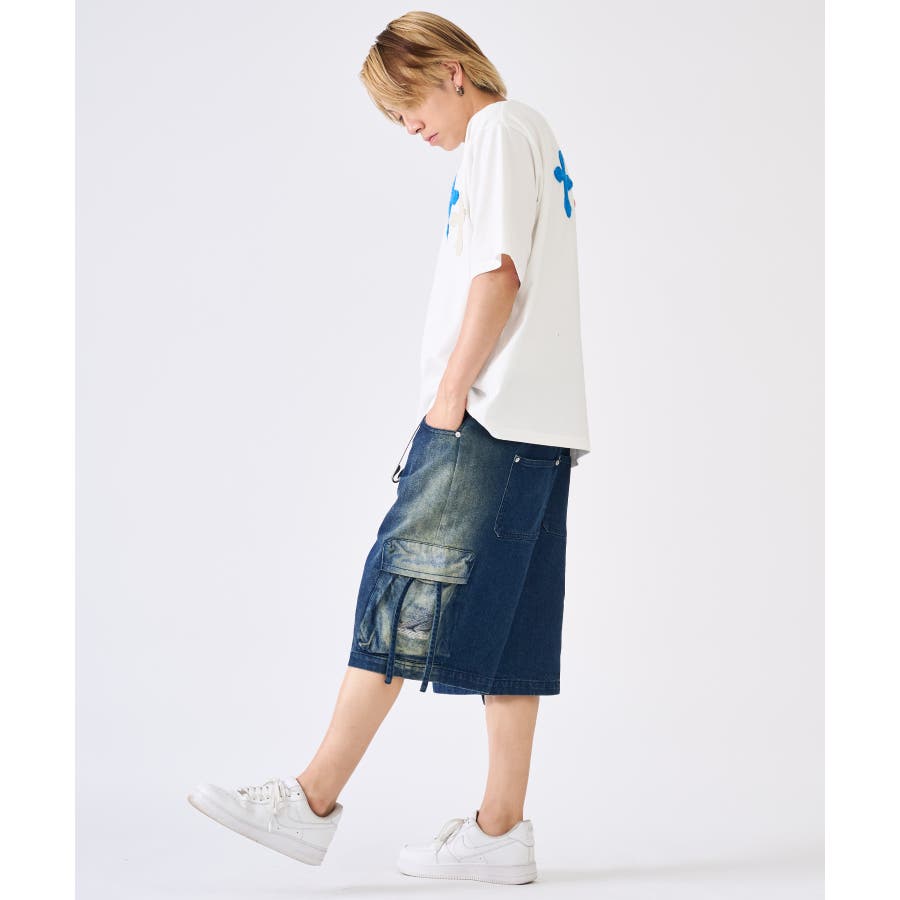 | 色落ち感がクールなショートパンツ☆ ■detail ブリーチ加工でサイドの色落ち感がカッコいいデザイン☆ 巨大な安全ピンがアクセントで、小物を提げたり、留める場所をアレンジして楽しめる! ウエストはシャーリング&ドローコードでサイズ調整ができるデザイン♪ ■fabric やや軽めの11.5OZのデニムを使用しているので夏でも穿きやすい! ■styling ユニセックスに使えて、カップルコーデやペアコーデにピッタリなアイテムです(^^) | ||||||||||||||||||||