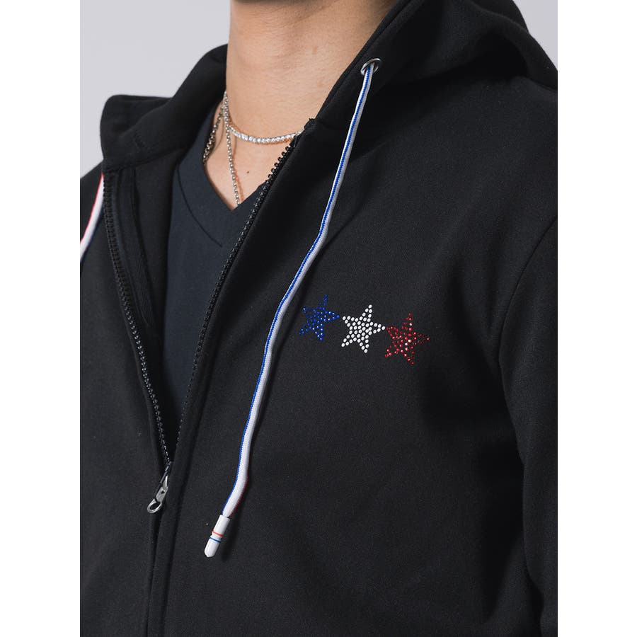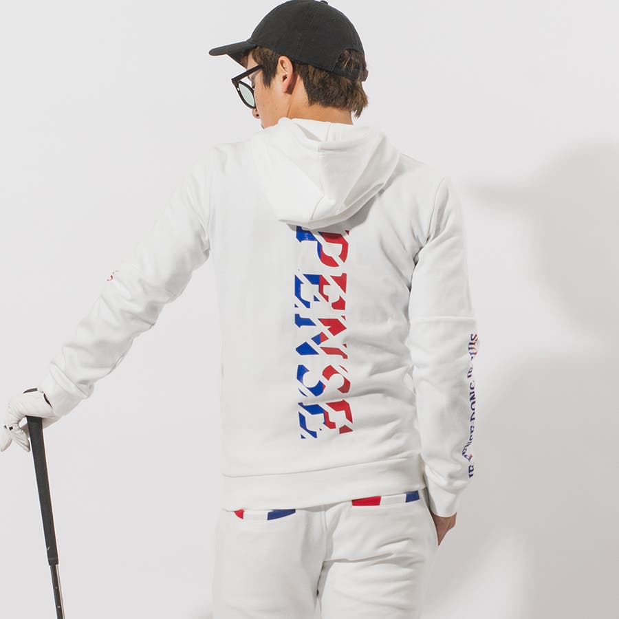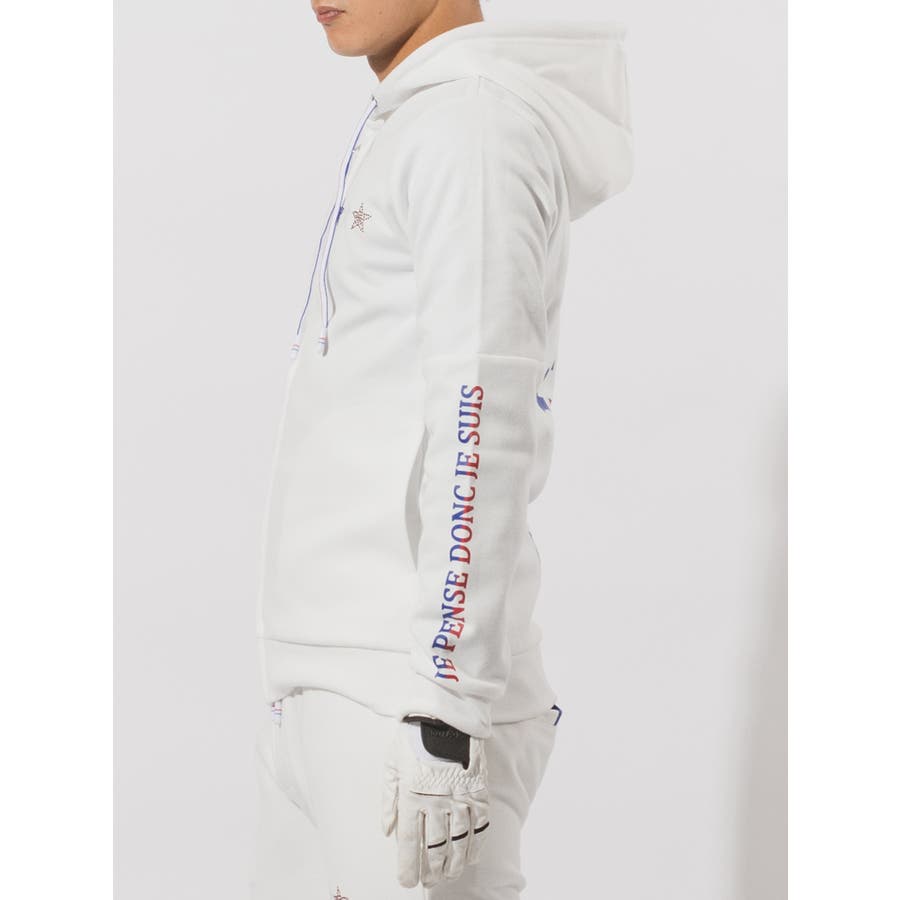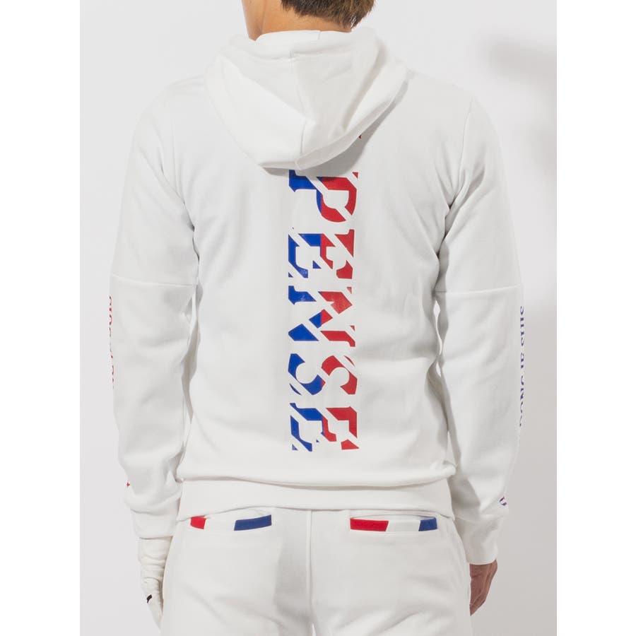 トリコロール配色のプリントを施したフルジップパーカーです。