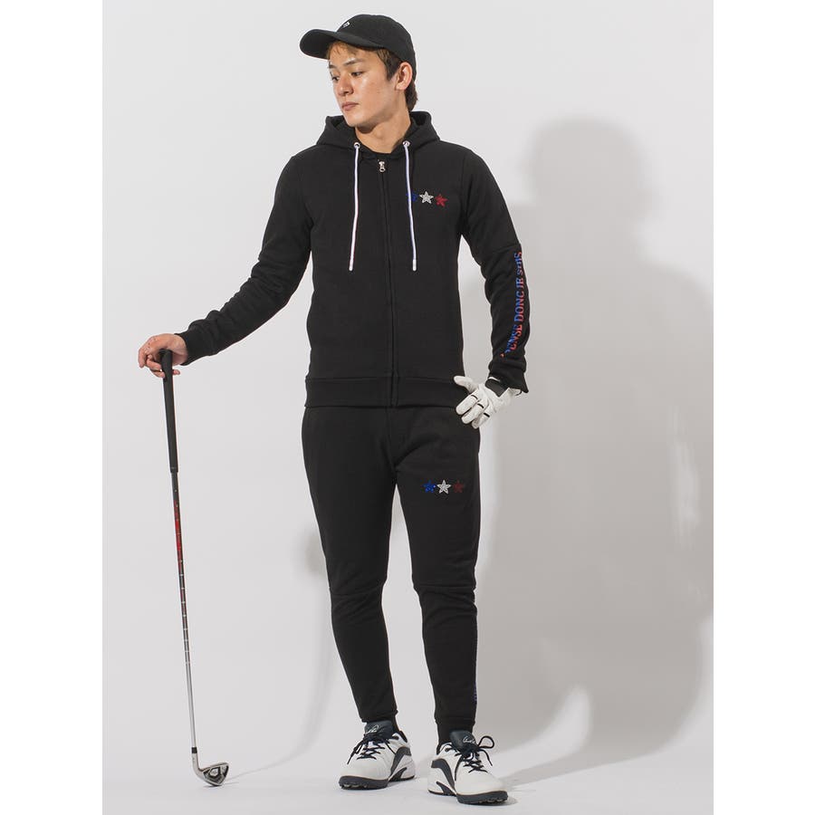 同配色のジョガーパンツとセットアップで着まわせ、ゴルフウェアとして最適です。