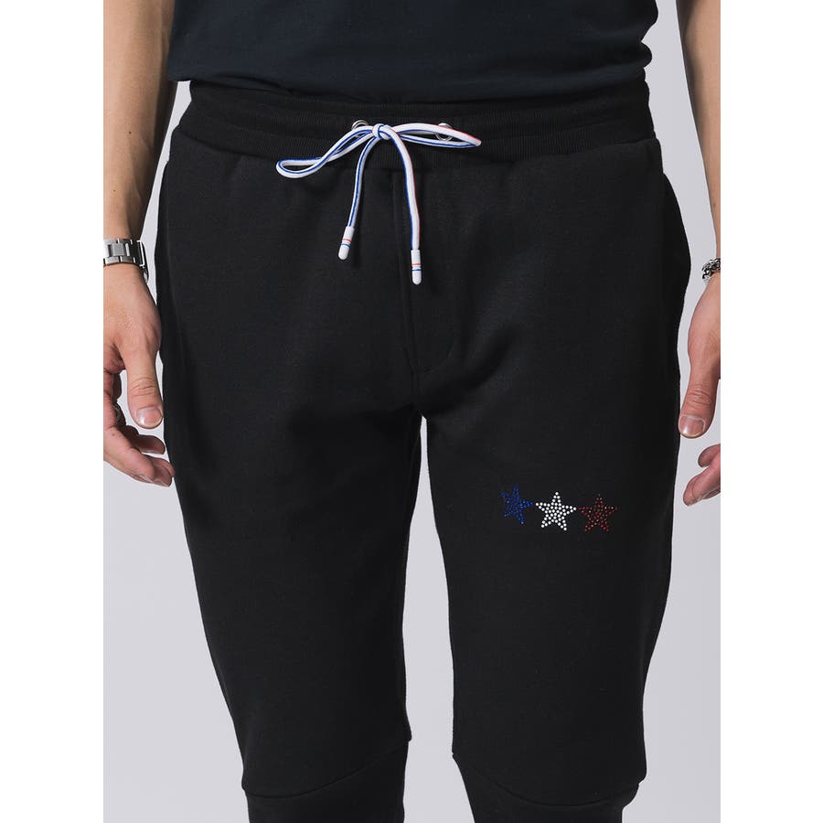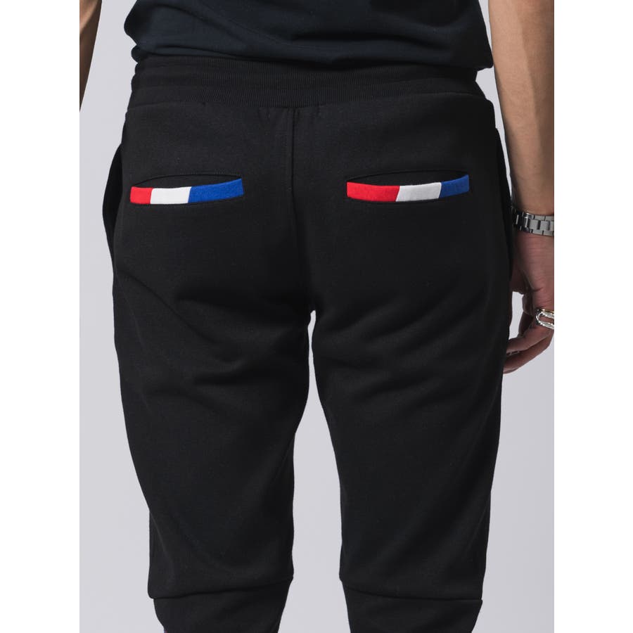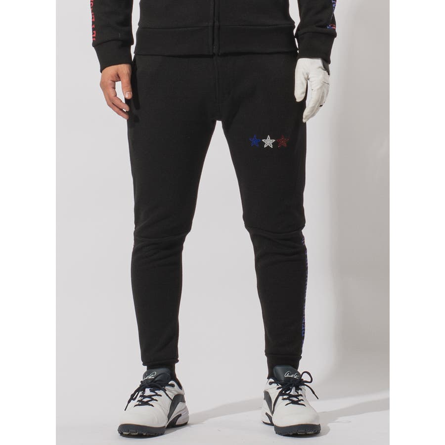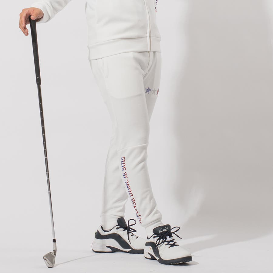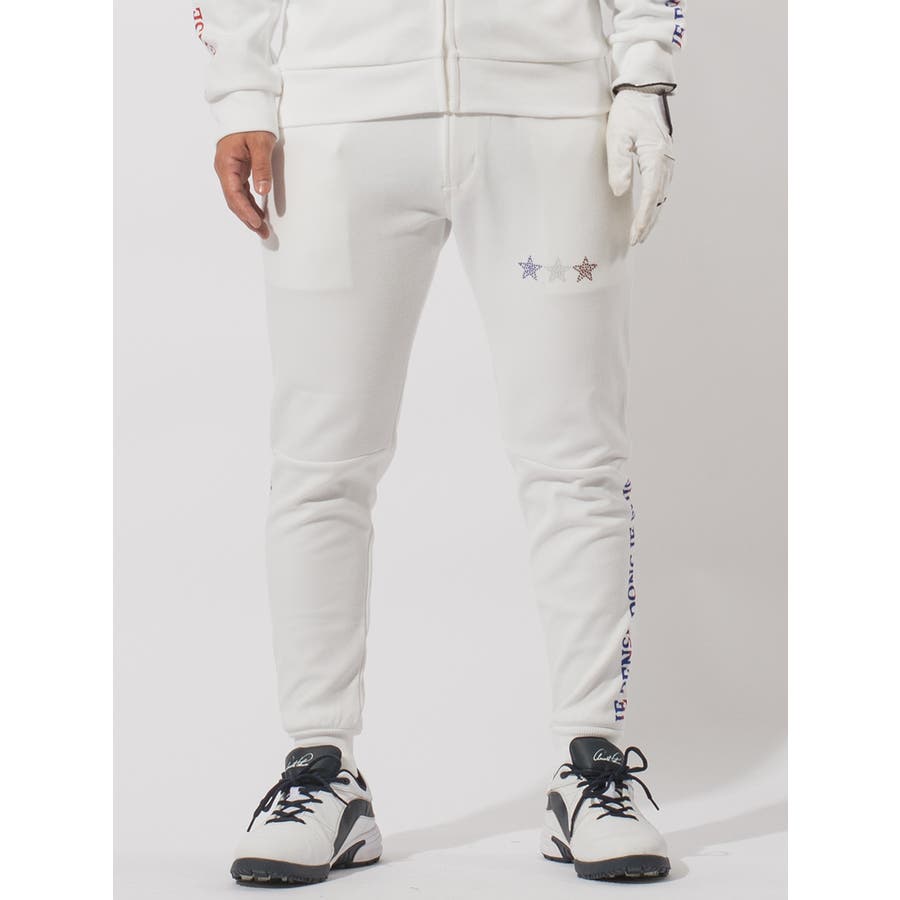トリコロール配色のプリントを膝下側面に施したジョガーパンツです。