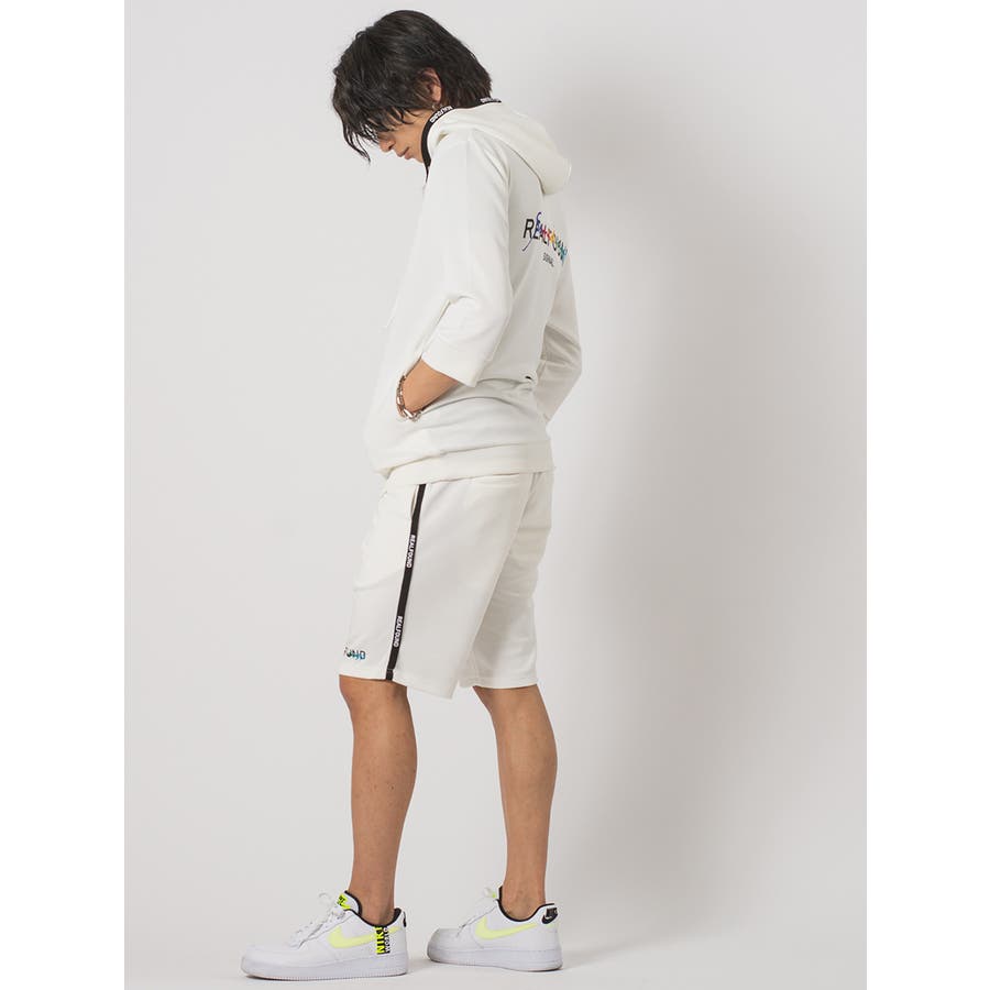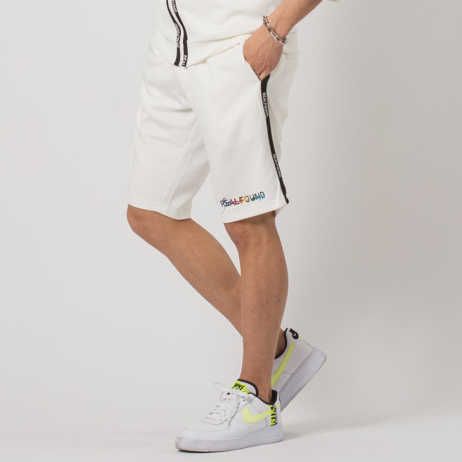 サイドにロゴをプリントしたテープを施したショートパンツです。