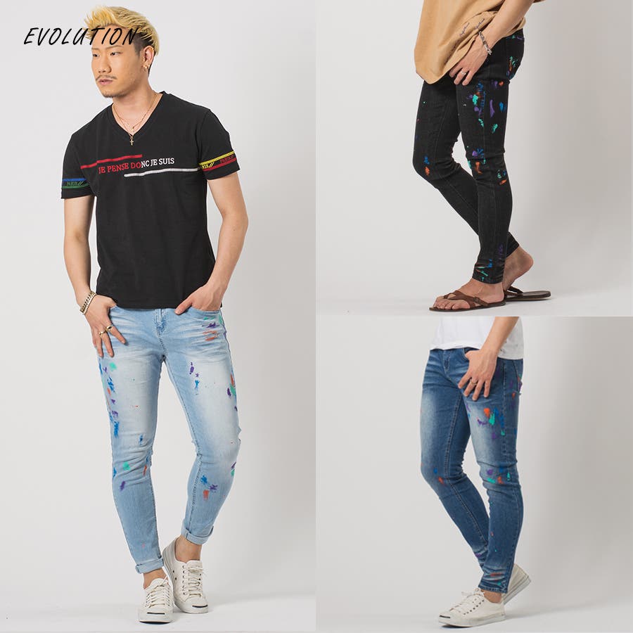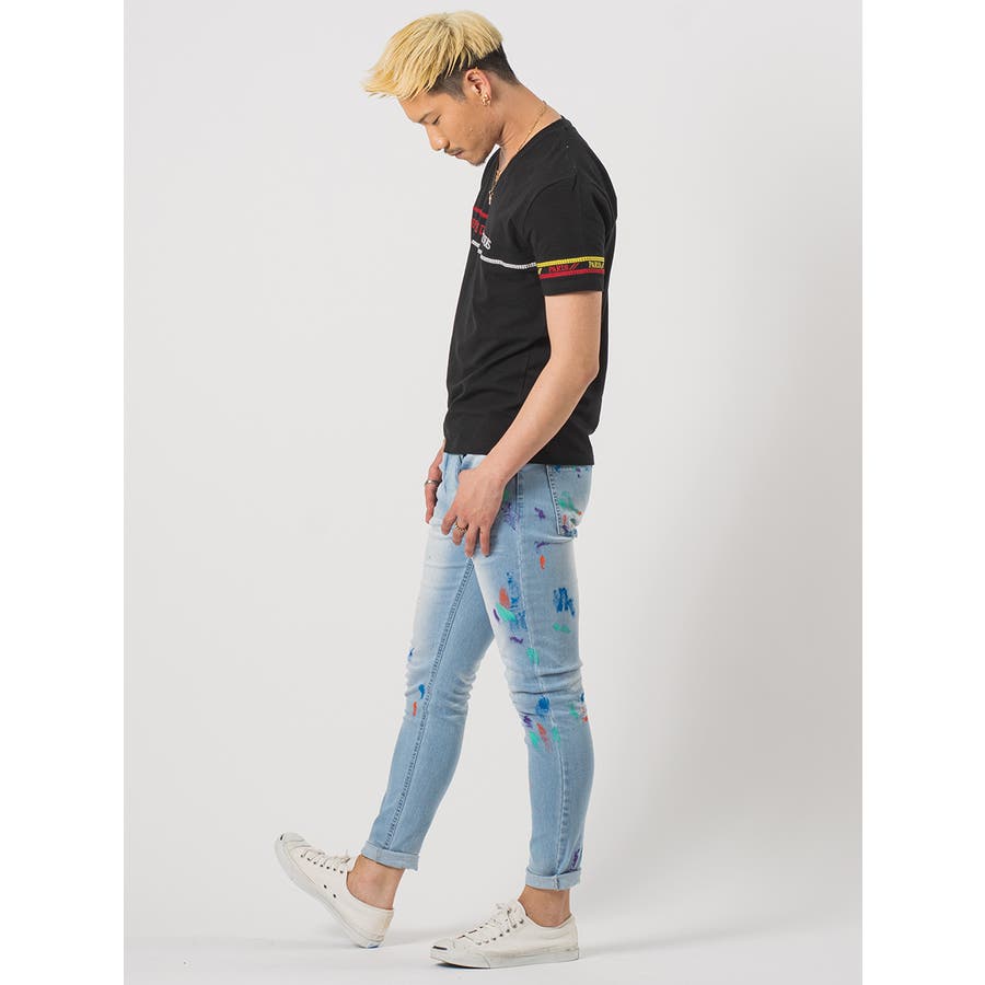 ペイント汚れを施したスキニーデニムです。