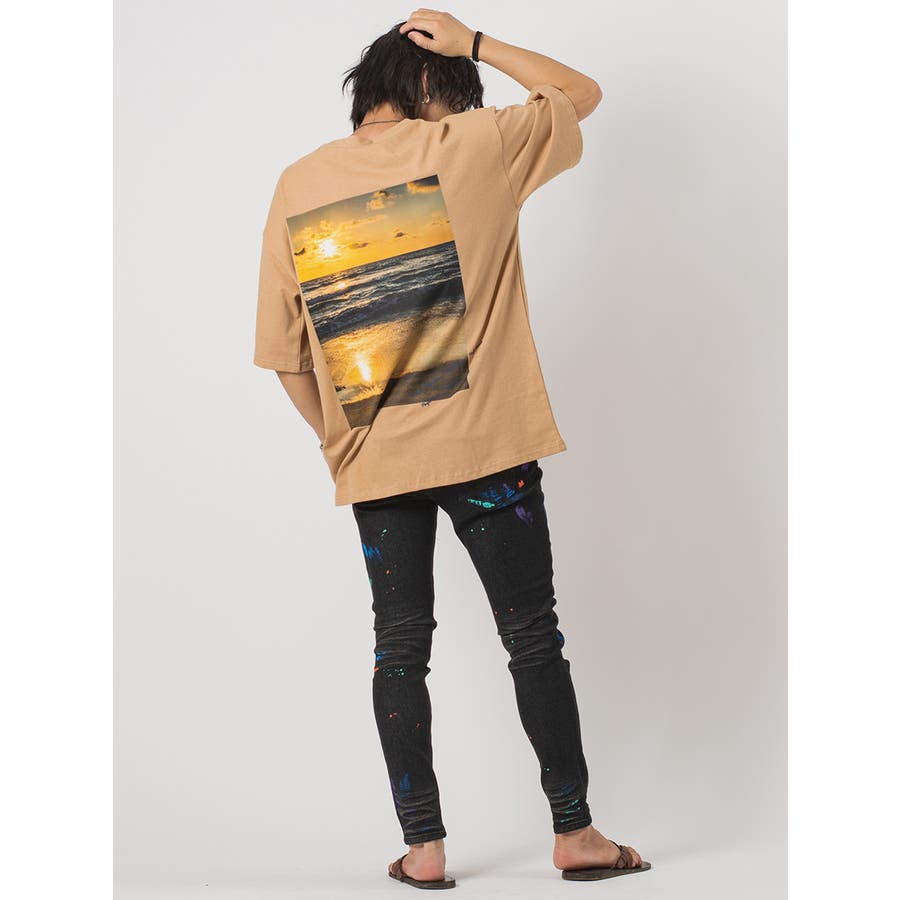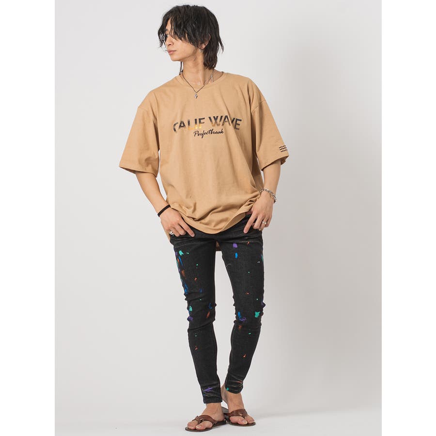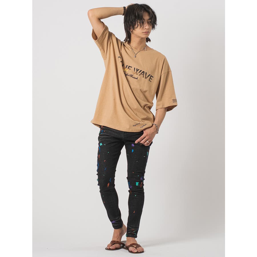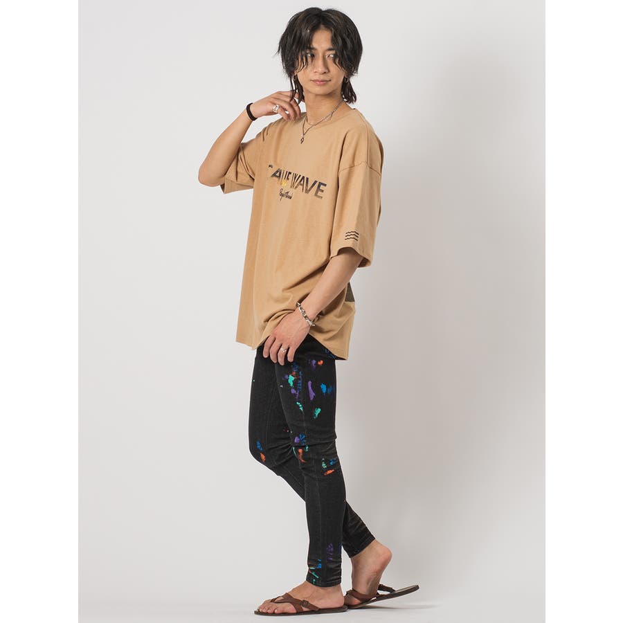 ストレッチ素材を使用したタイトなシルエットにランダムに付着したカラーペイントがアクセントです。