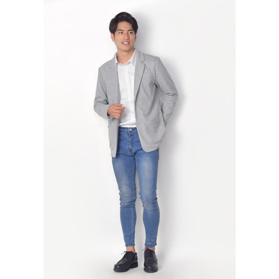 キレイめからカジュアルまで幅広く使え、伸縮性抜群のカットテーラードジャケットはデニム、チノパンなど比較的何にでも合わせやすく万能なアイテムです。