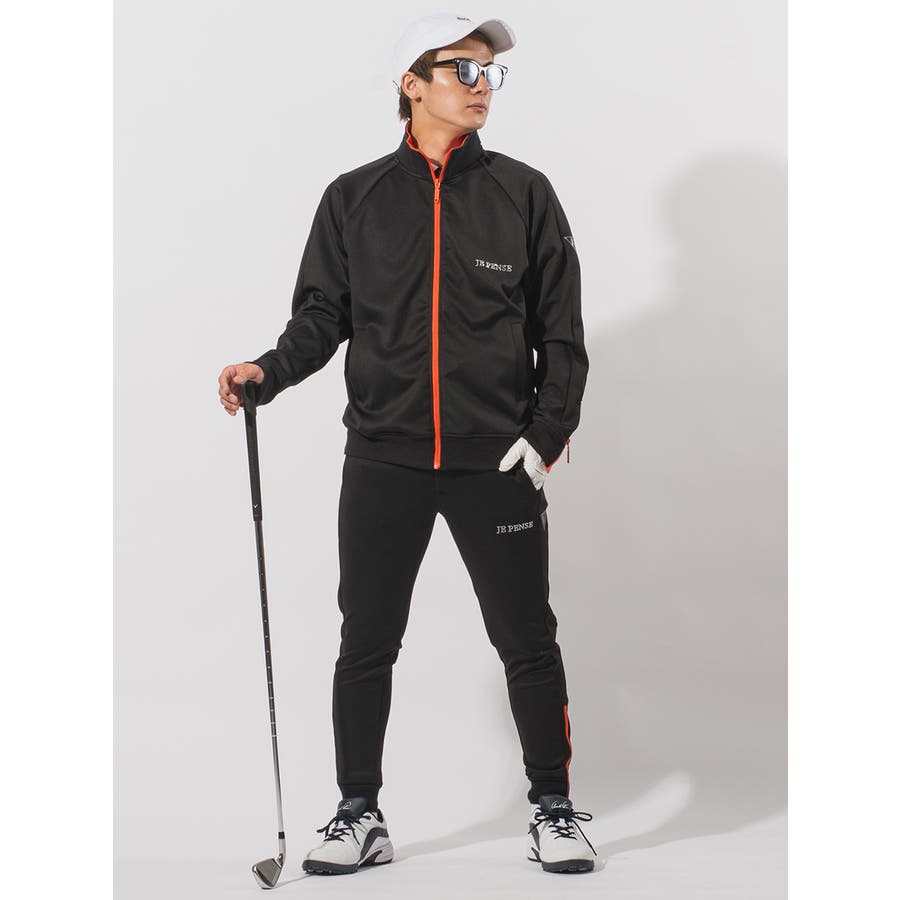 軽量でストレッチ性に富んだ素材で同素材のトラックジャケットともセットアップで着用できゴルフにも着まわせます。