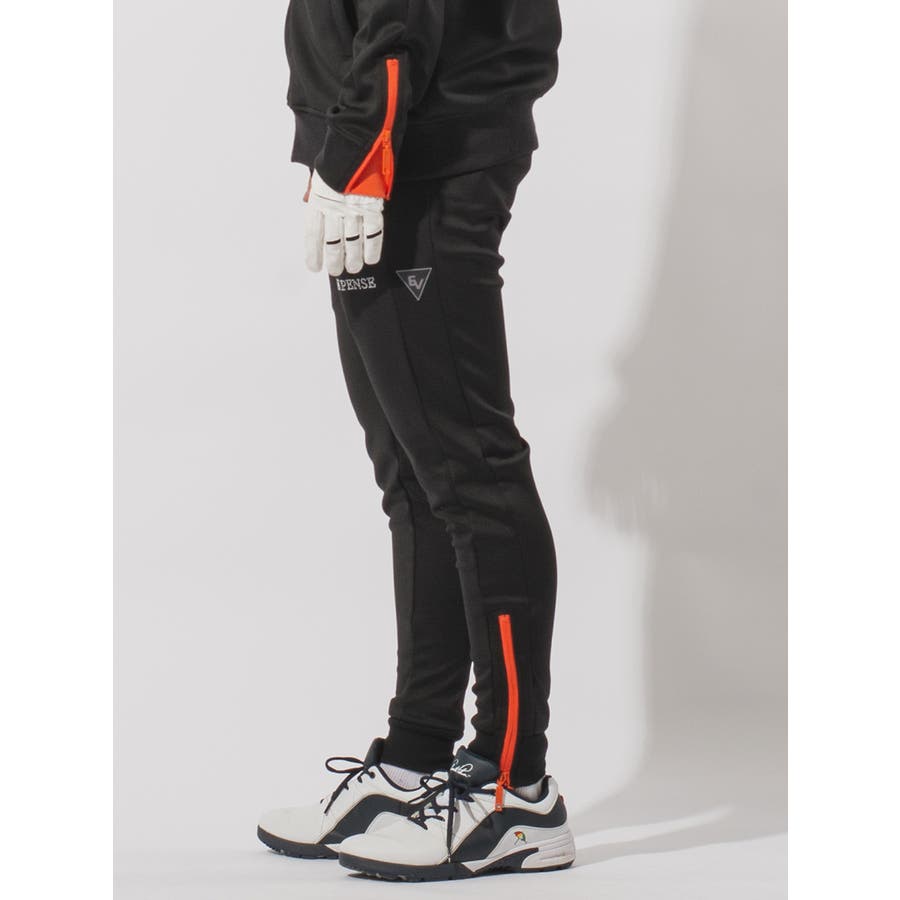 蛍光カラーのファスナーにすることでアクセントにもなっており、太腿付近に施したラインストーンのロゴがさりげなく主張してくれます。