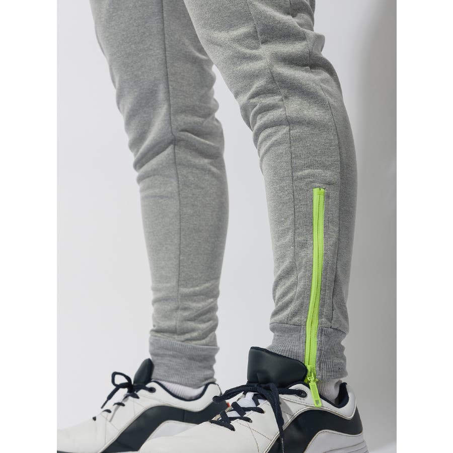 足元にジップを配置したジョガーパンツです。