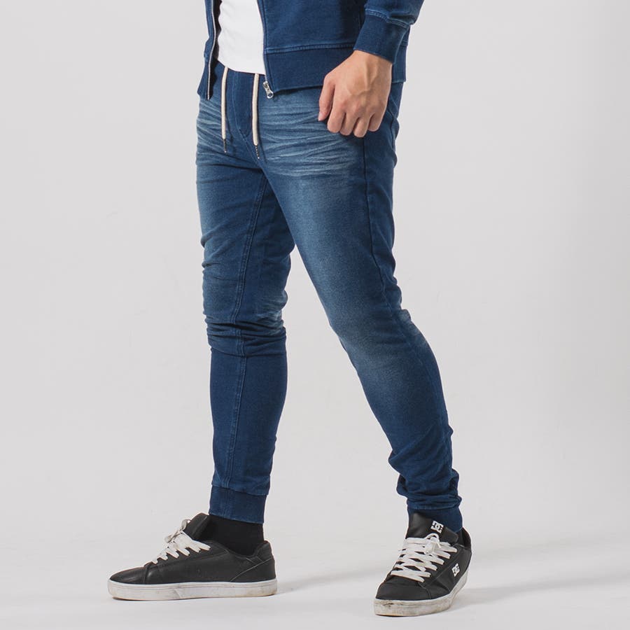 デニム風のカットソー素材だから着心地はまさにスウェット感覚。ストレッチ性も効いていてシャープなシルエットを表現できると共に、動きやすさも実現しているのでデイリーユースにピッタリです。
