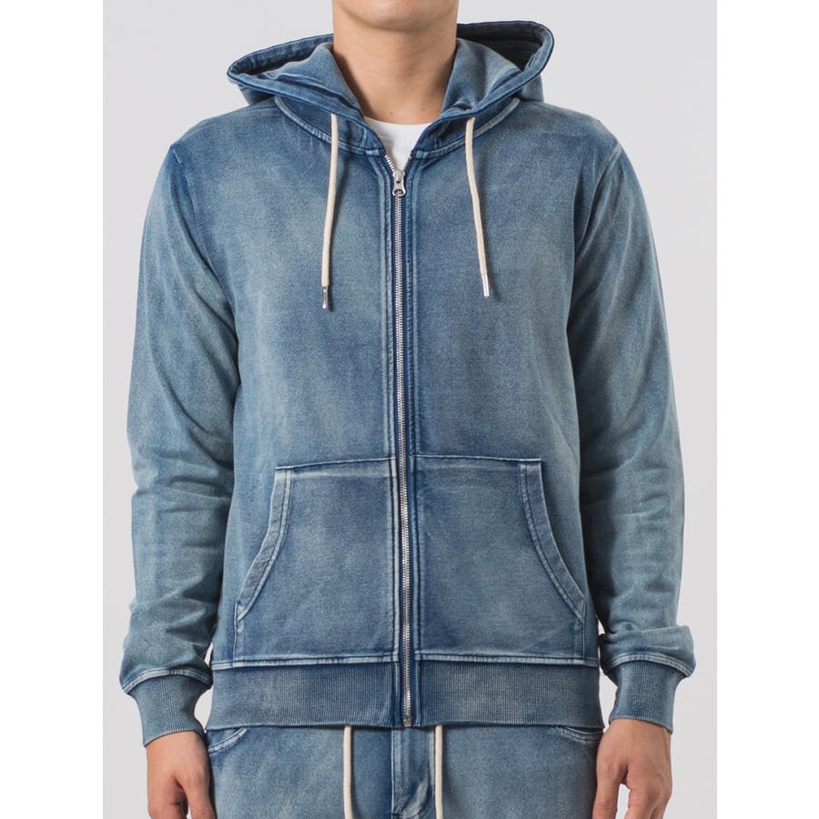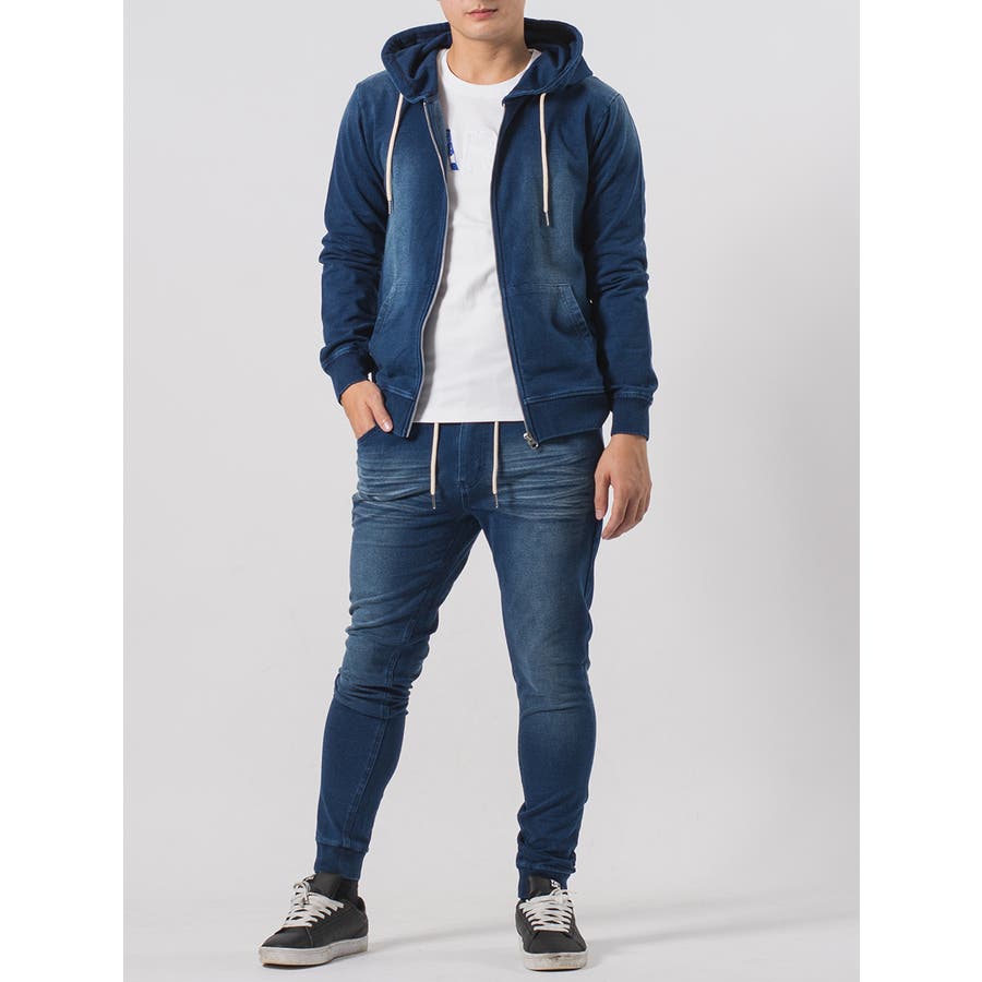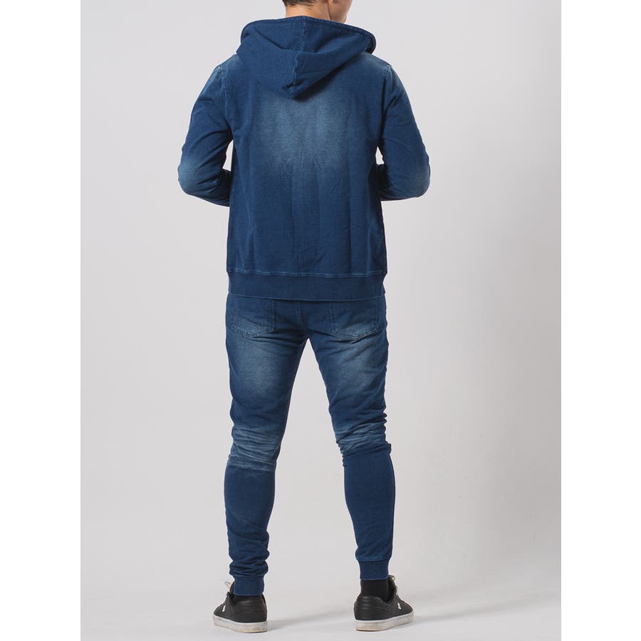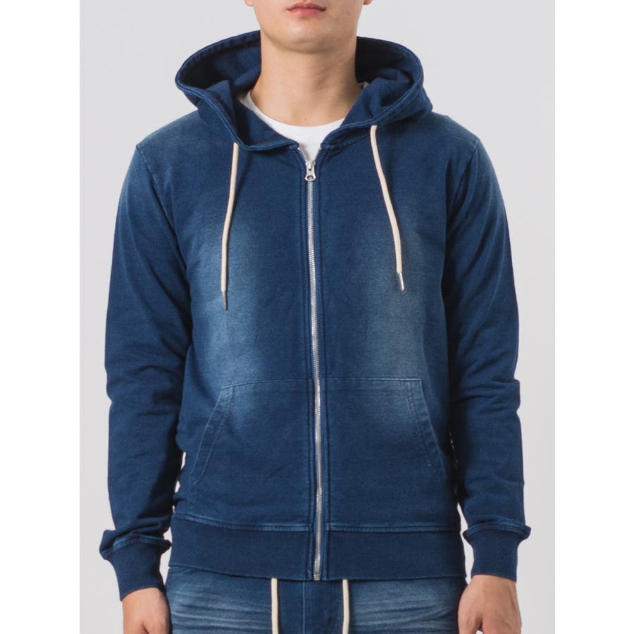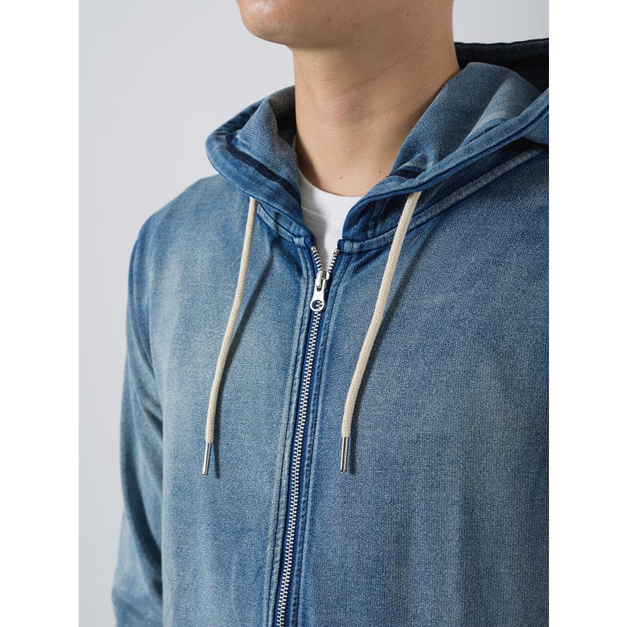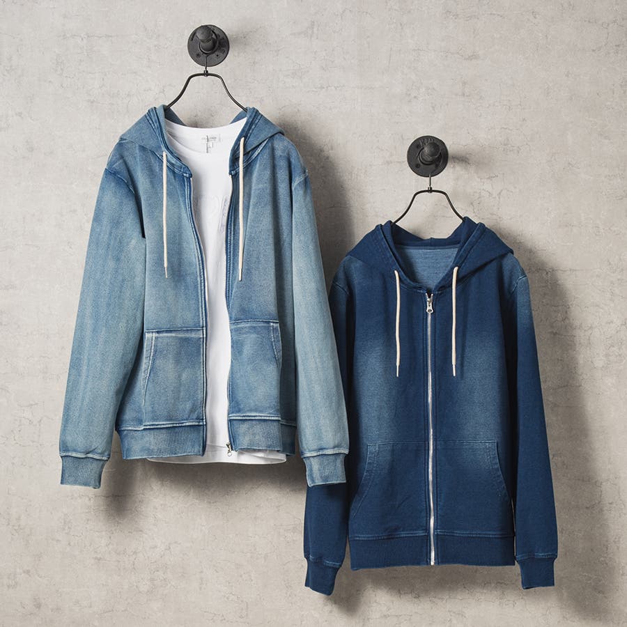 人気があり今や定番とも言える素材となったインディゴ裏毛のカットデニム素材からジップパーカーが登場。
