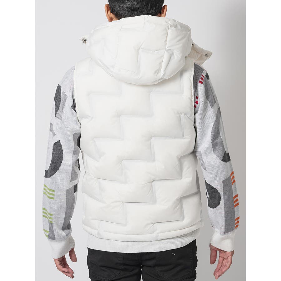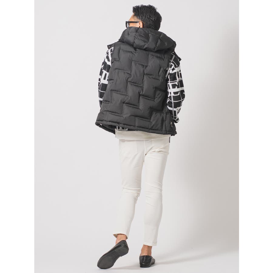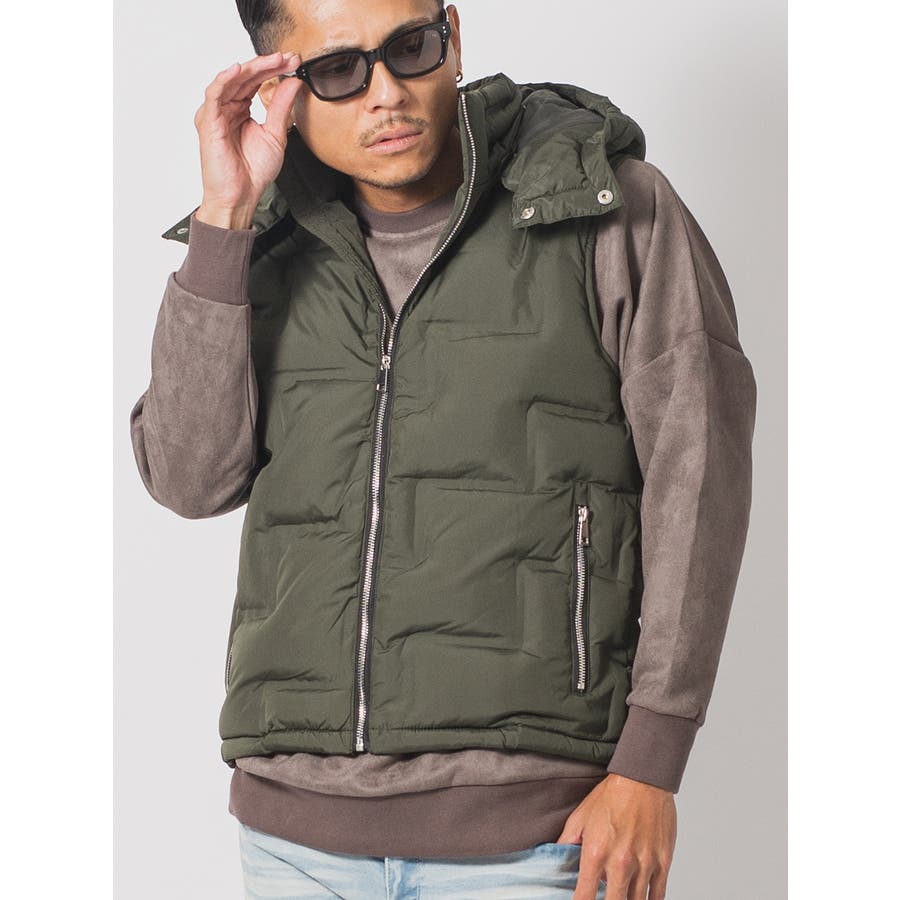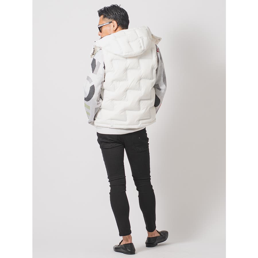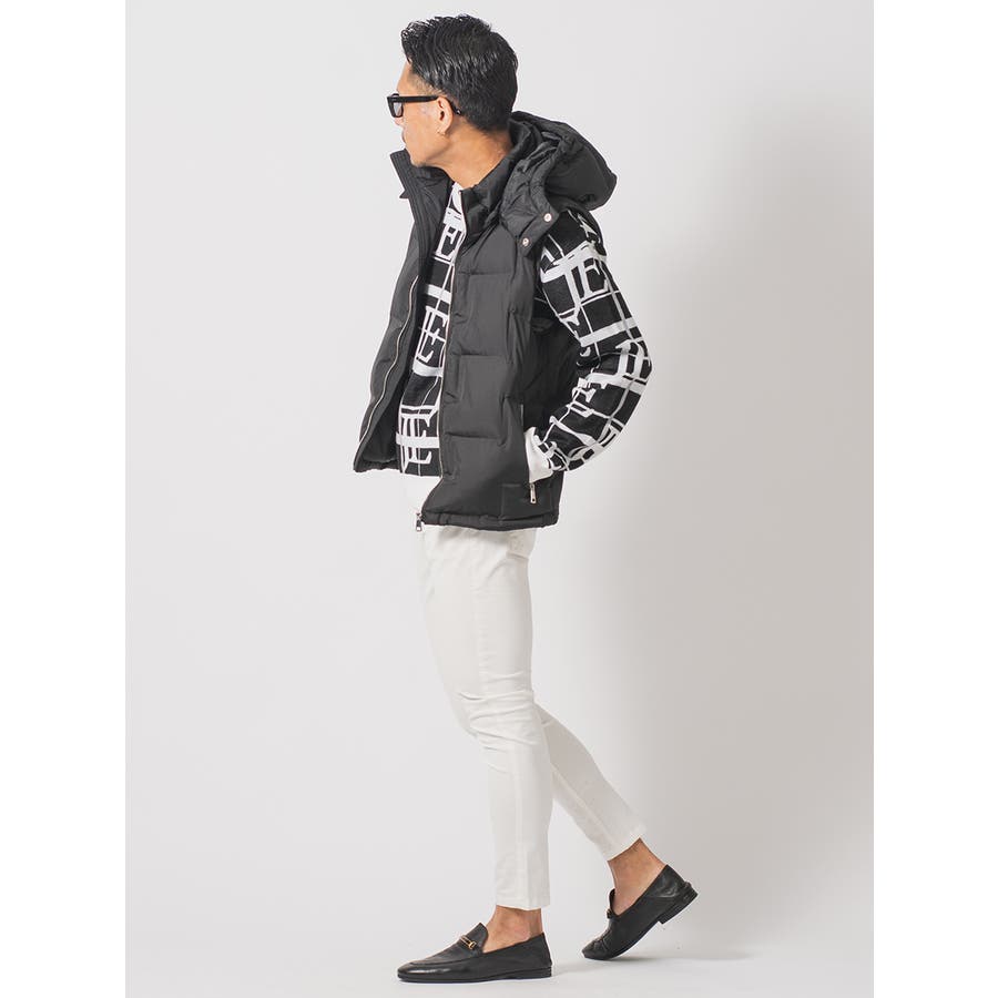 圧着よるシームレスな仕切りによって中綿の偏りや縫い目からの綿抜けを防ぐ仕様は、ダウンジャケットにありがちなバルーンの様な膨らみを抑えたシャープなシルエットがクールです。ファスナーやスピンドルそしてボタンに至るまでメタリック調に統一していることによってクールさとラグジュアリーな印象を醸し出します。ダウンベストはスウェットやニットとも着こなしやすくシーズン長く着回せて重宝するアイテムですが、今シーズンはトレンドアイテムとしても注目されております。またフードの脱着ができますのでお好みのスタイルが演出できるだけでなく、ポケットの内側は起毛させた裏地を使用することで手を入れた時に温かい優しさは、まさに大人の男らしさを感じさせるアイテムです。