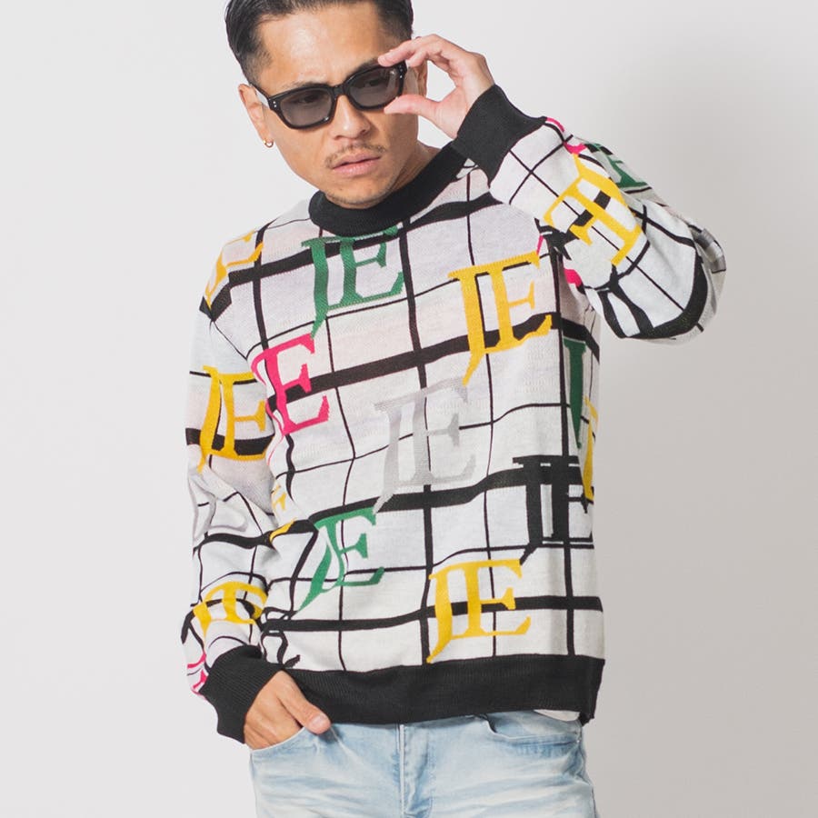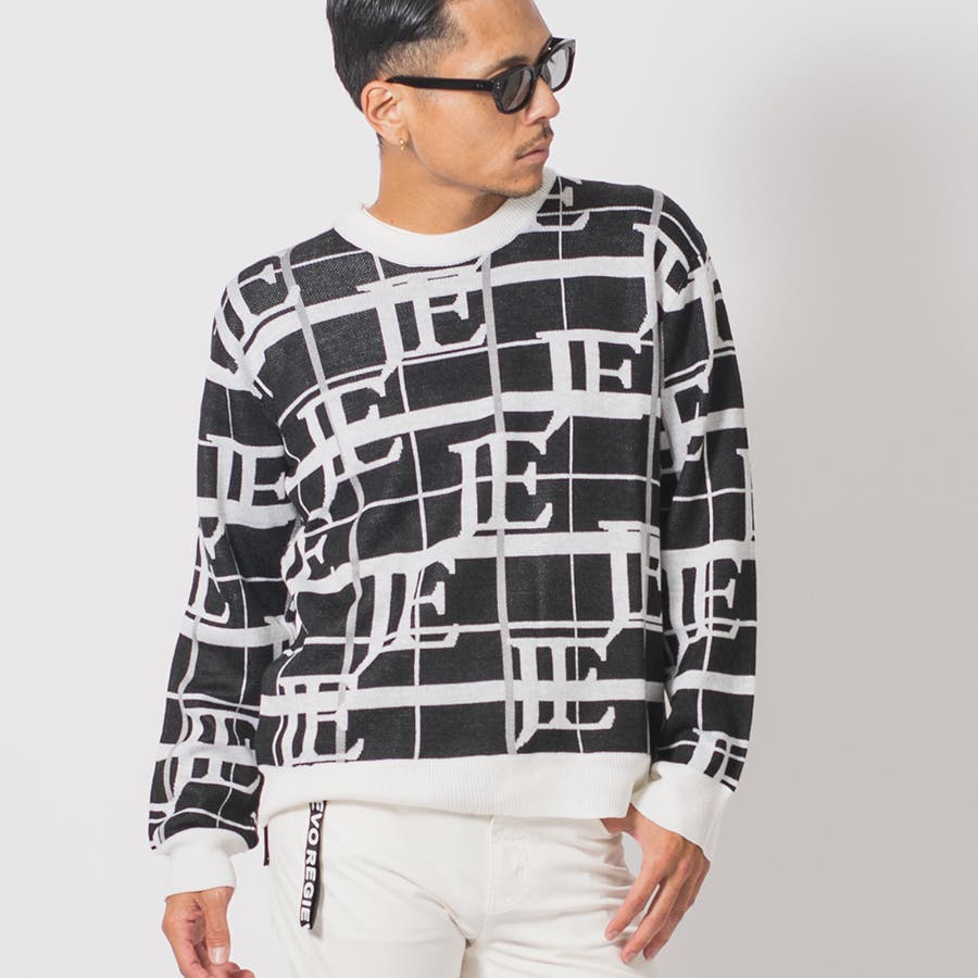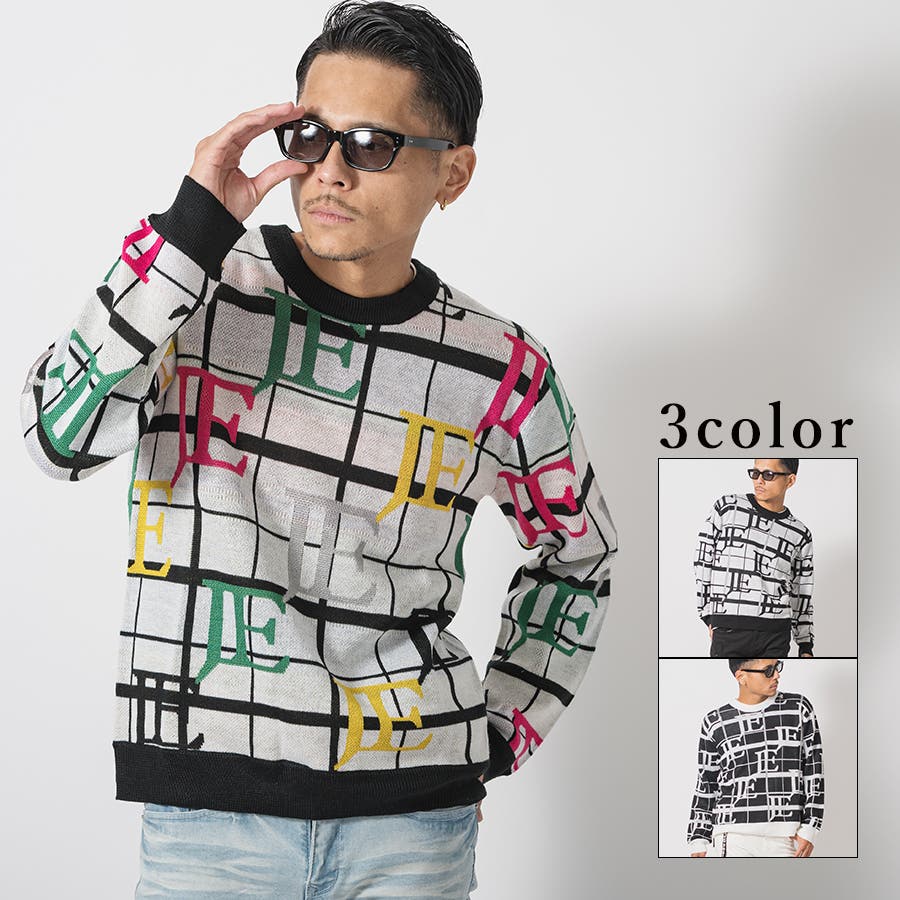 メンズ レディース ユニセックス ジェンダーレス 男女兼用 韓国ファッション ストリート系 ビター ビター系 リゾート リゾート系 オラオラ系 お兄系 トップス ストリート ニット クルーネック 総柄ニット 秋 秋冬