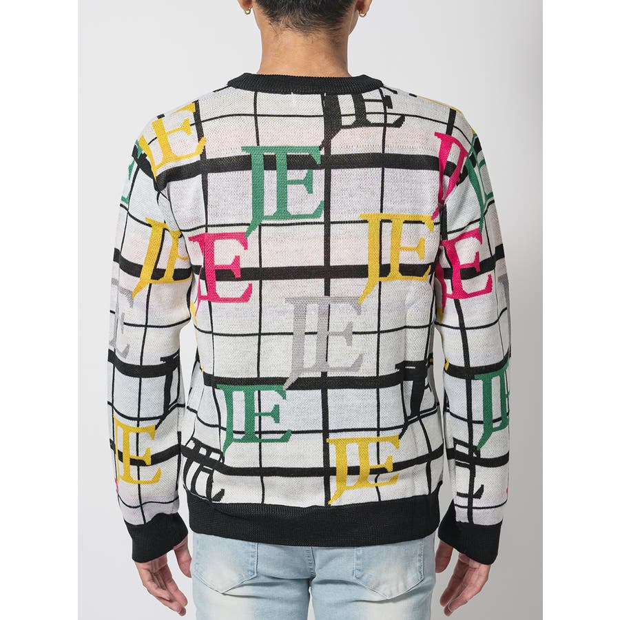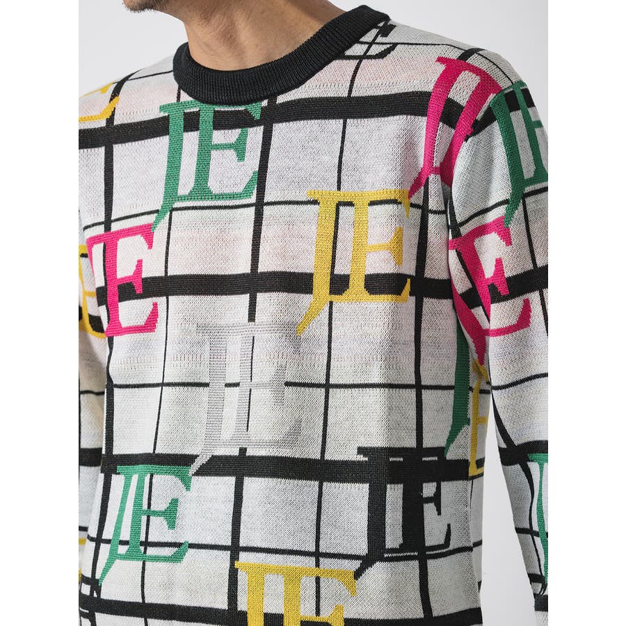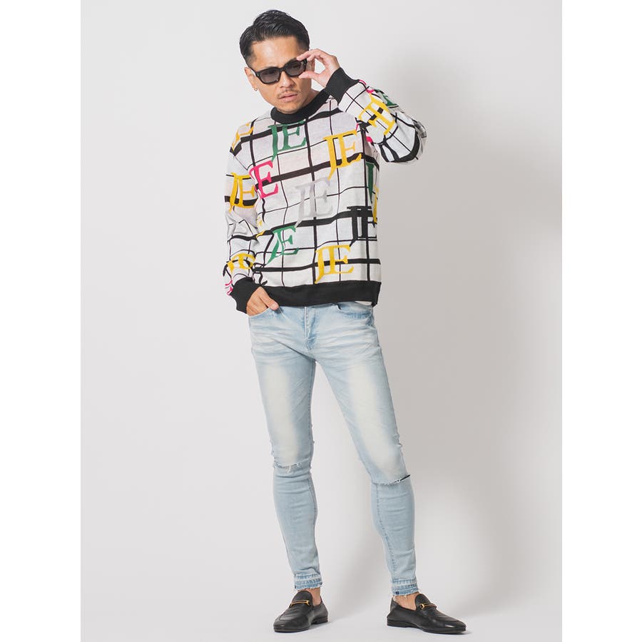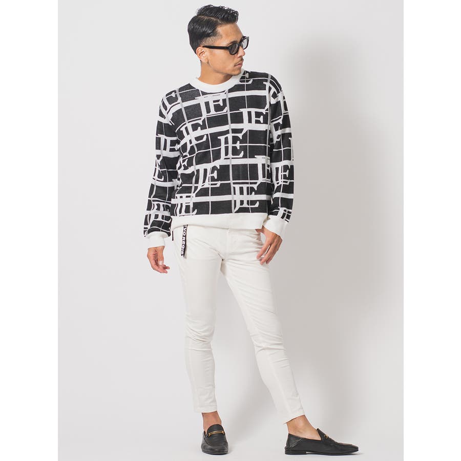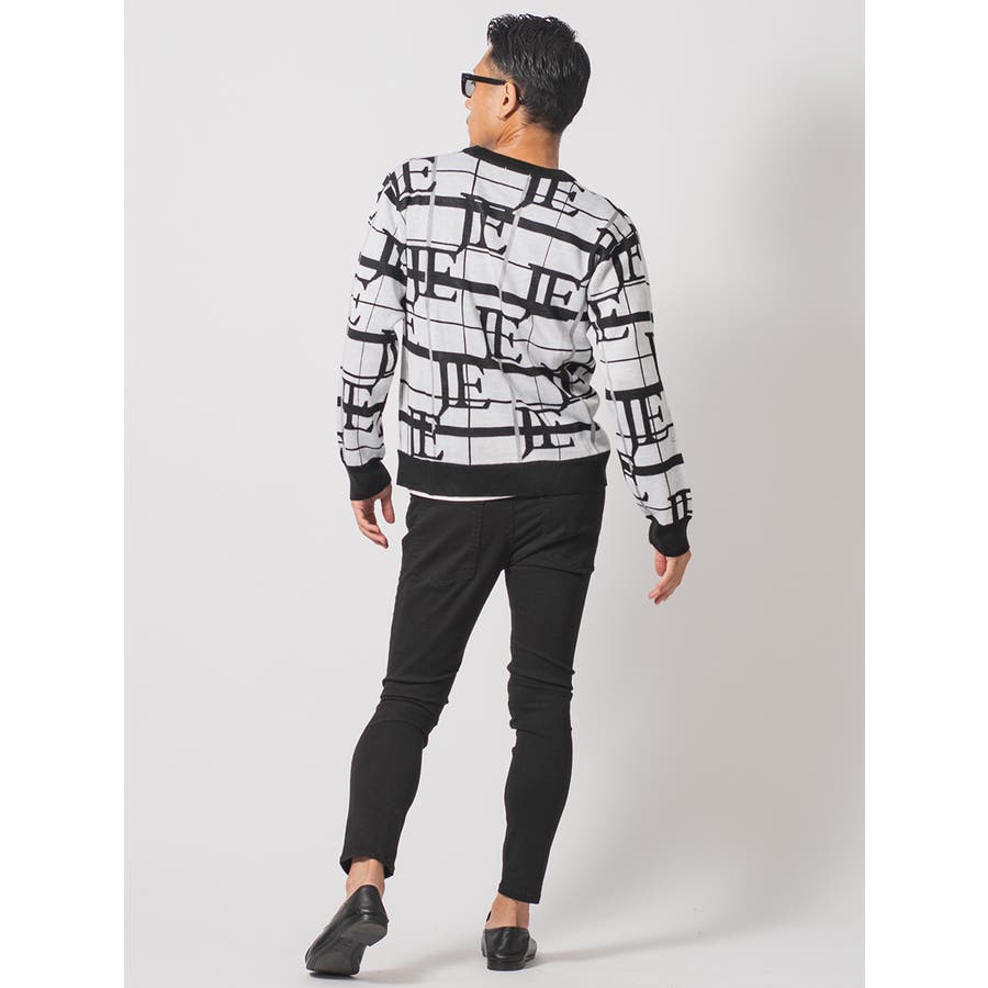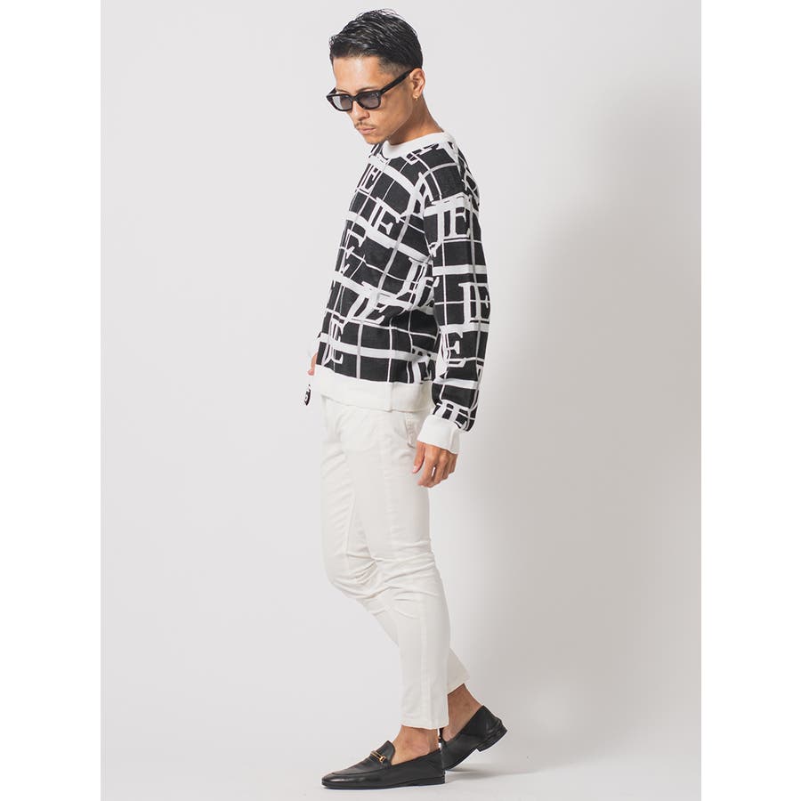 ジャカードの総柄ニットは、この所80年代のレトロなアイテムが復活している中の一つとして注目されています。一枚でも存在感があり、アウターの下で時折覗かせる柄がアクセントになりコーデを格上げしてくれます。また室内でアウターを脱いだ時にその存在感は一気に高まりセンスを感じさせるアイテムです。こちらはロゴとウィンドペーンを組み合わせたデザインでカラーパターンとモノトーンのタイプがあります。またチクチクしないソフトな肌触りでルーズすぎないシルエットはインナーとして着やすくイージーケアなアイテムです。