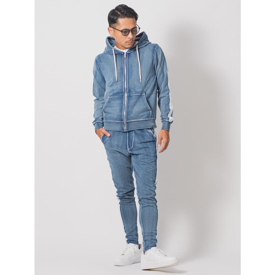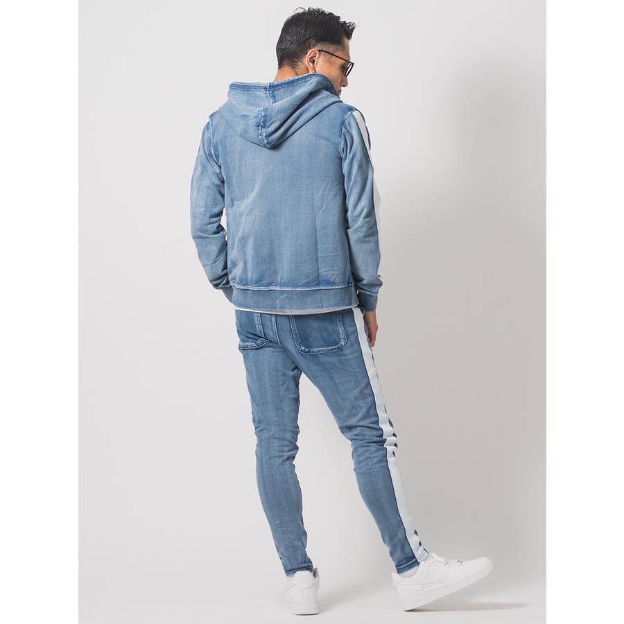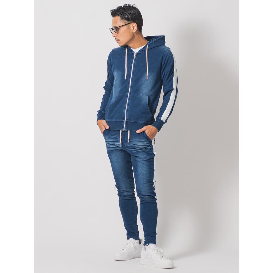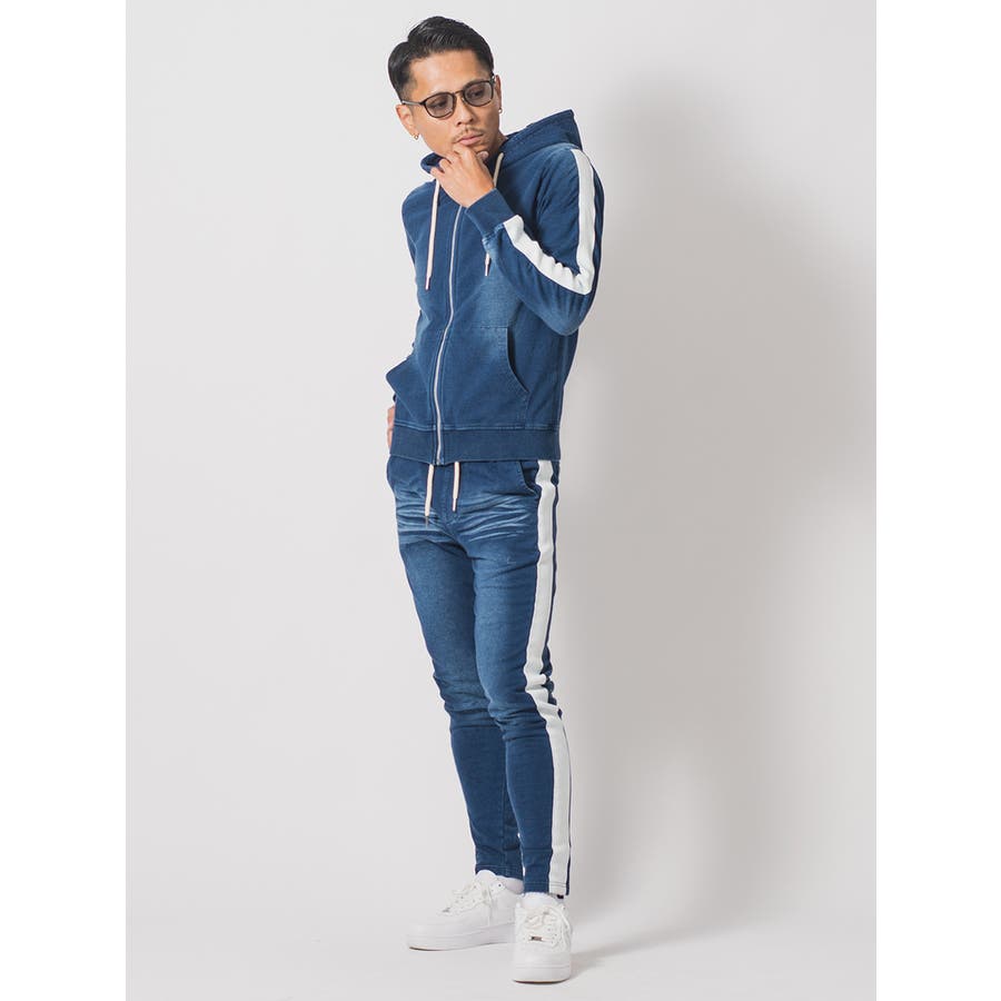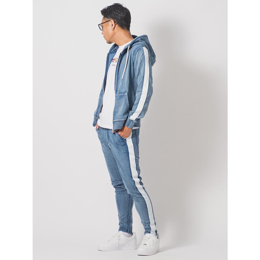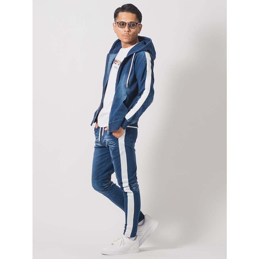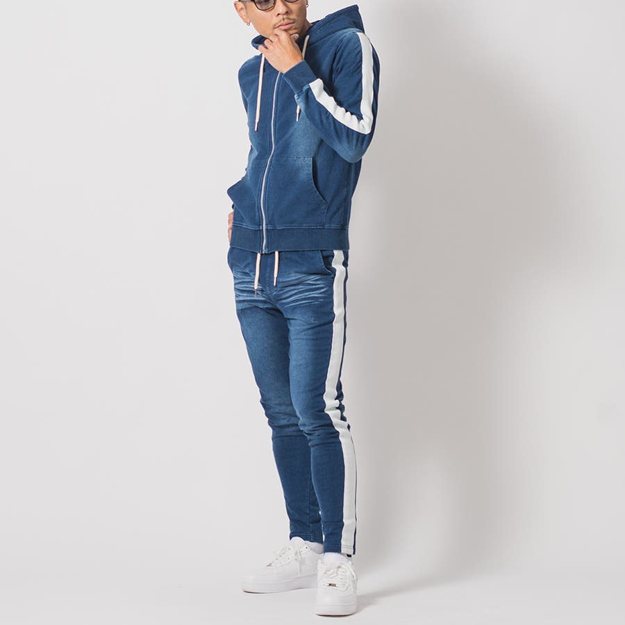 サイドラインデニム裏毛セットアップ