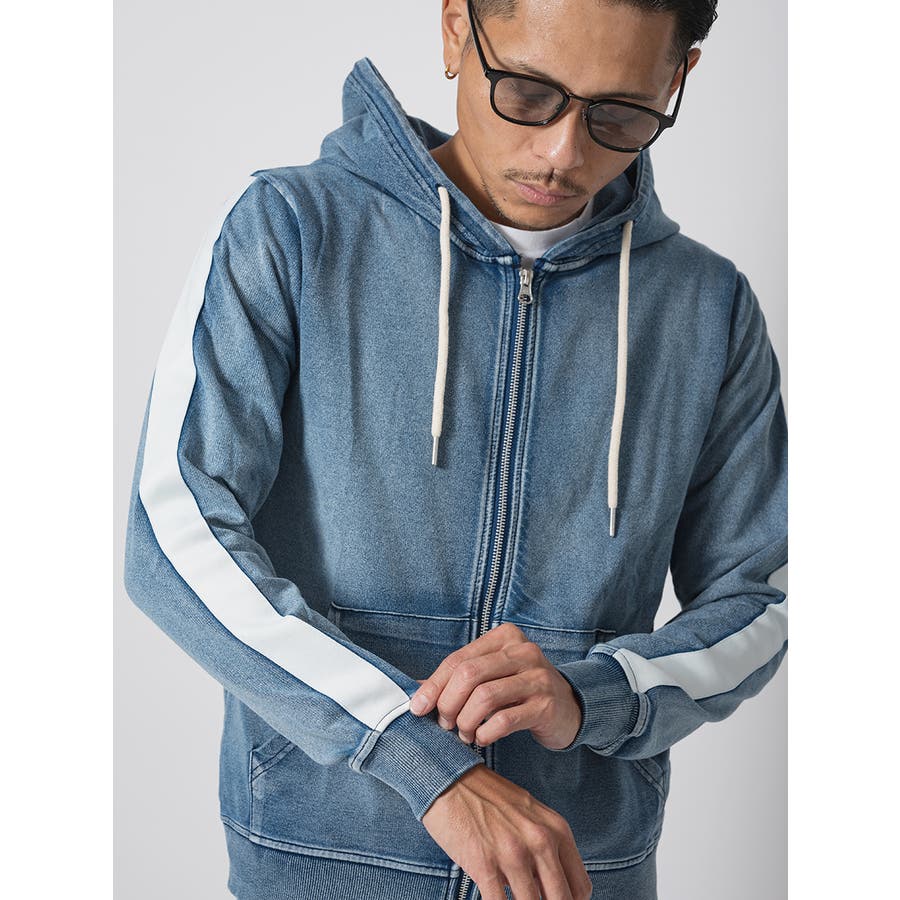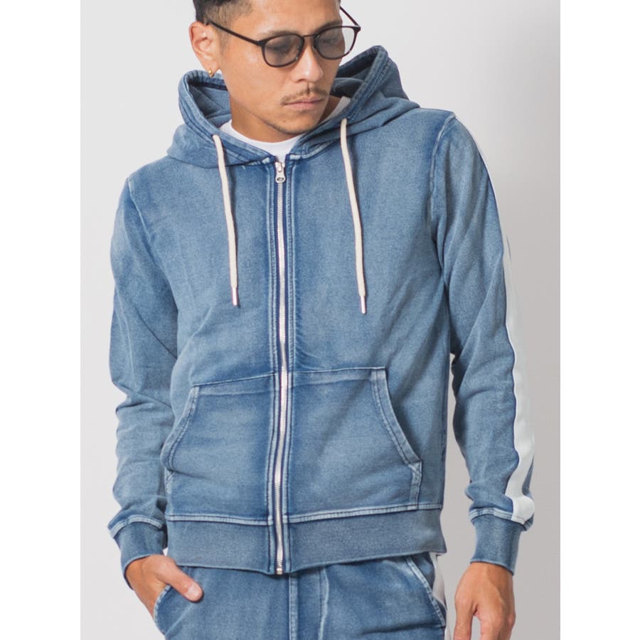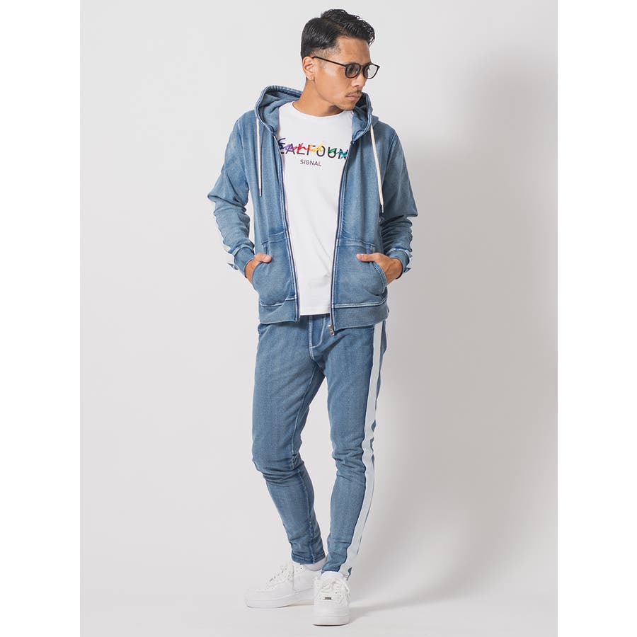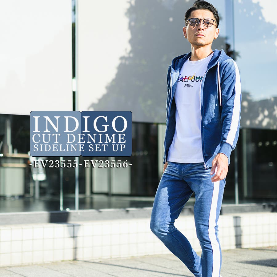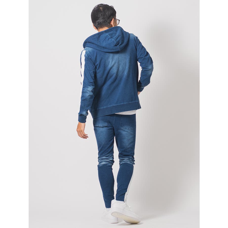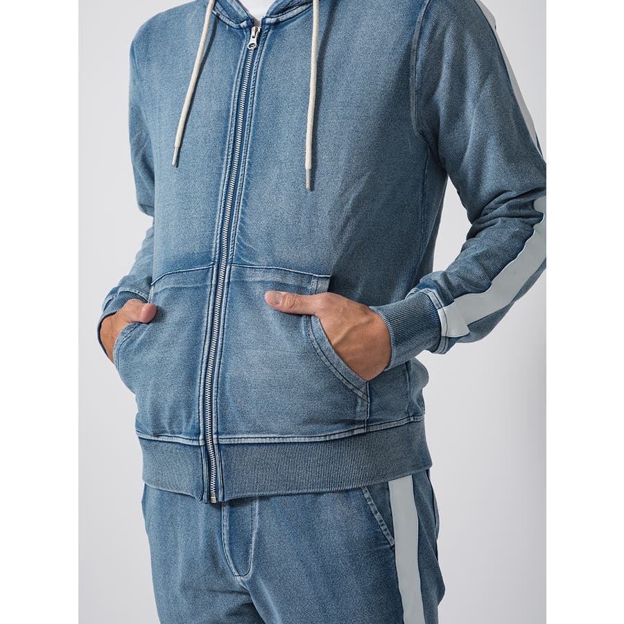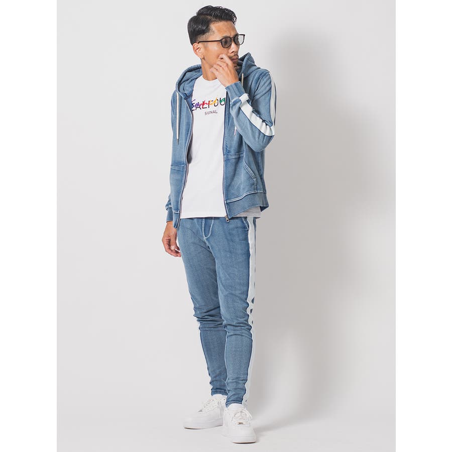 サイドラインデニム裏毛セットアップ