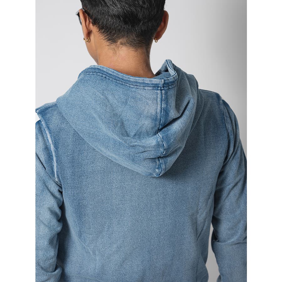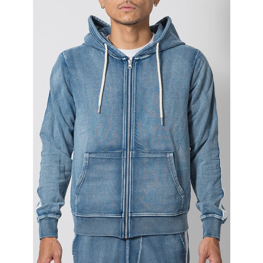 スウェットデニムを使用したパーカーとジョガーのセットアップです。