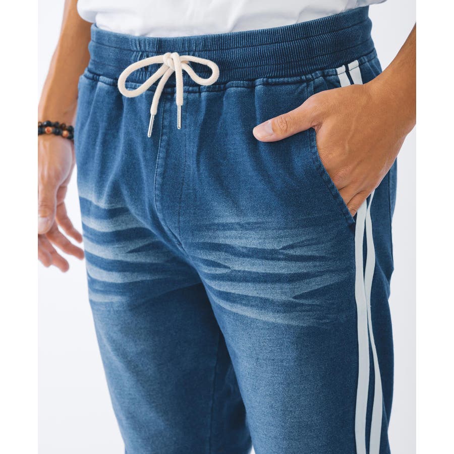 デニム調に加工したスウェット素材のジョガーパンツです。