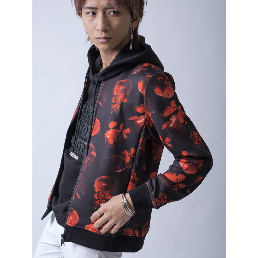 | 商品説明 | バタフライとアップルをモチーフにしたオリジナルの総柄プリントを施したジャージ素材のMA-1 | |