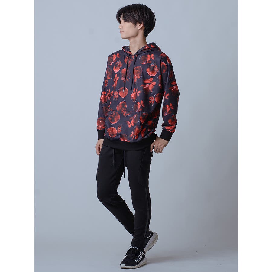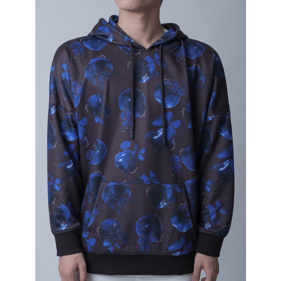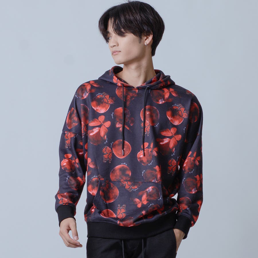 商品説明 | アップルとバタフライをプリントしたドロップショルダーのプルパーカー |