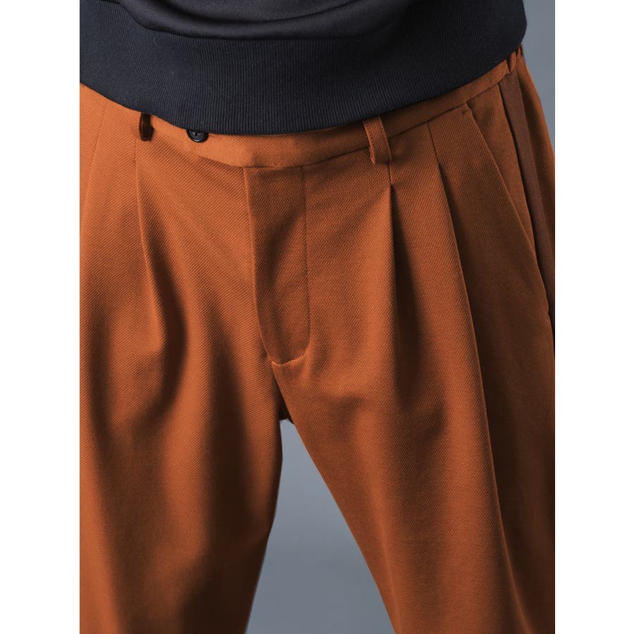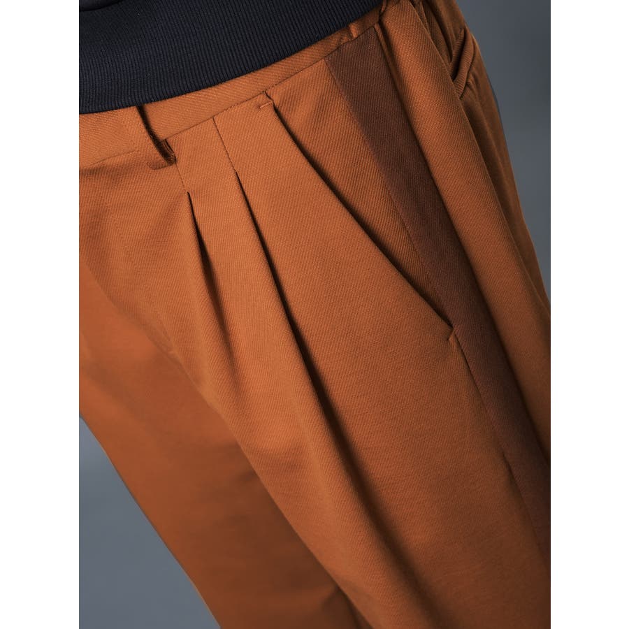 ツータック仕様は、ウエストから太腿にかけてゆとりを持たせ、裾にかけてテーパードさせたシルエットがスマートでエレガントさを表現してくれます。