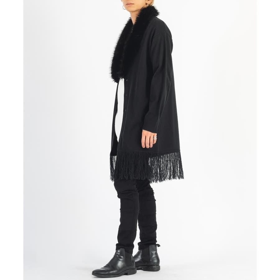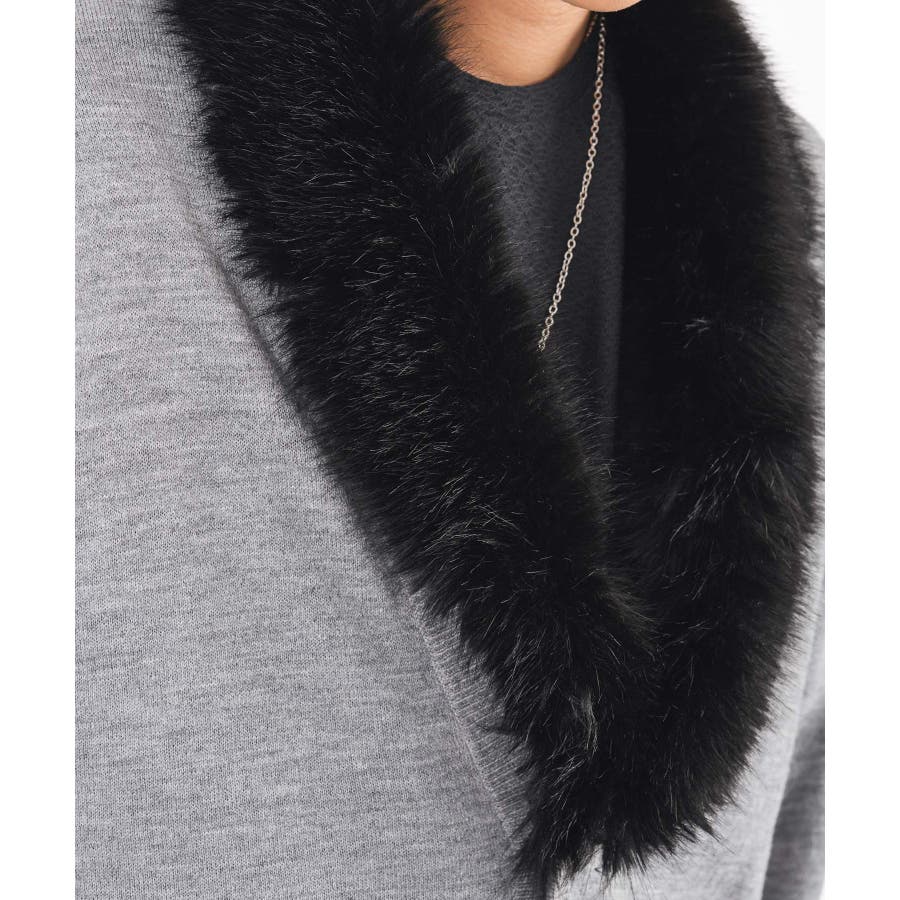ファー素材のショールカラーが印象的なロングカーデです。