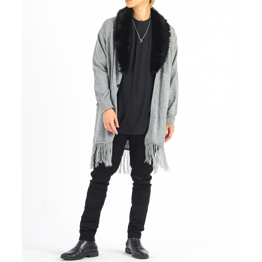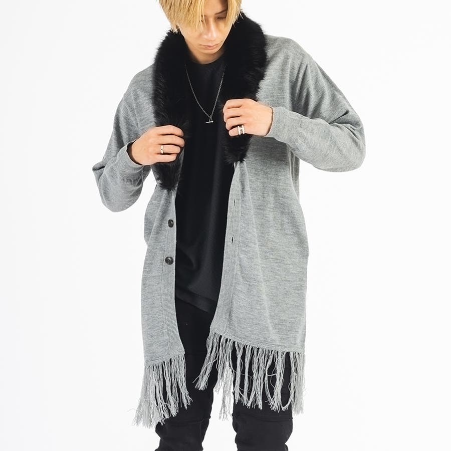 エコファー ロングカーディガン メンズ モードストリート