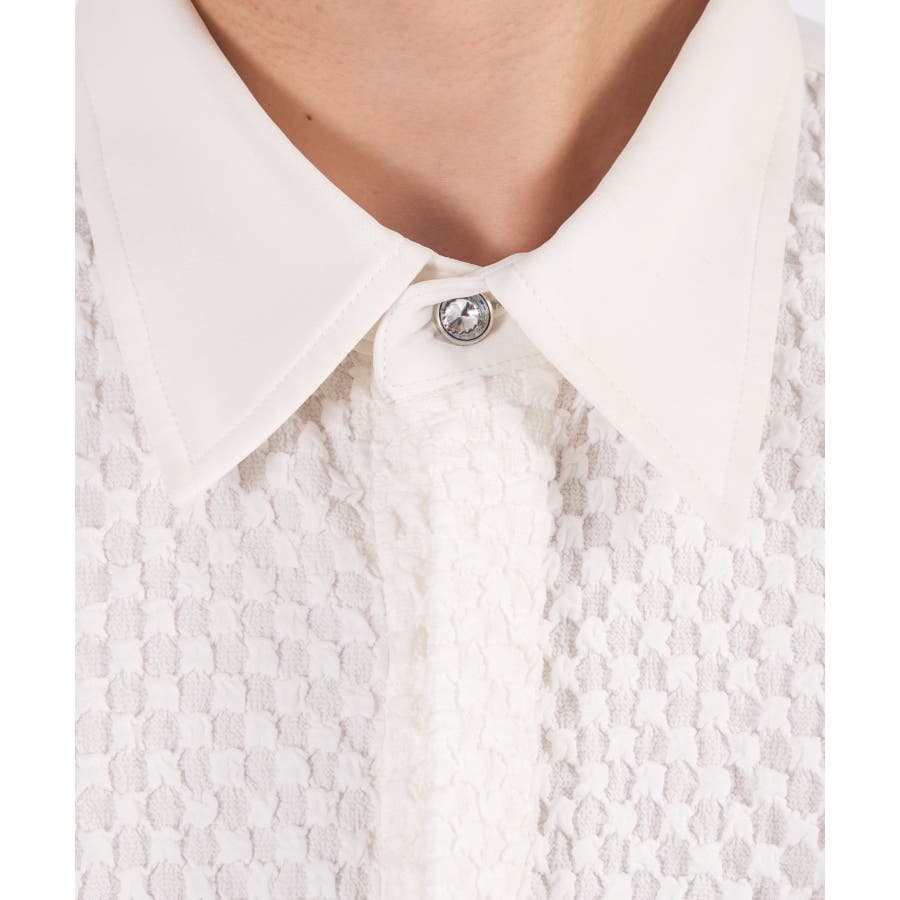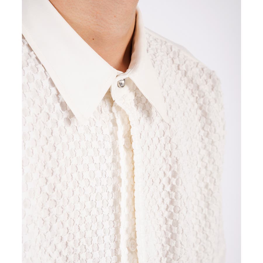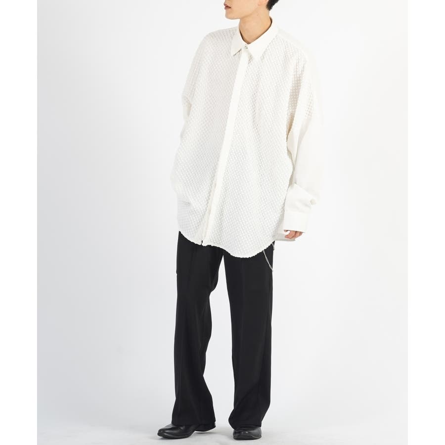 フロントを同色のジャカード素材で切り替えた長袖シャツです。