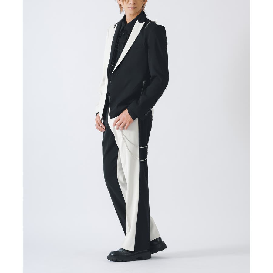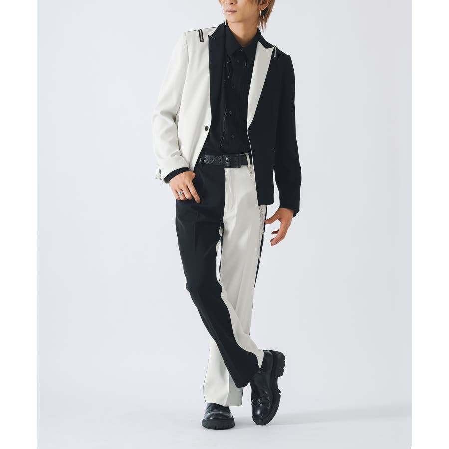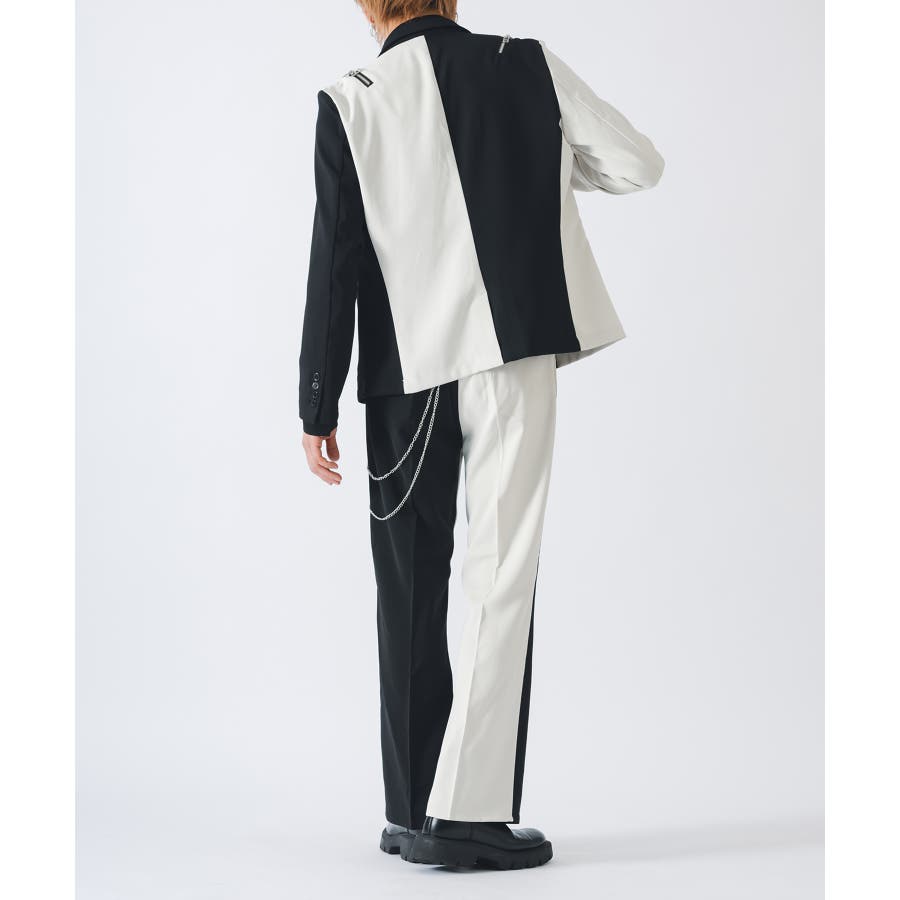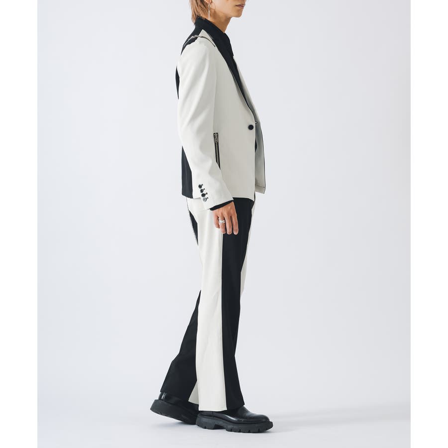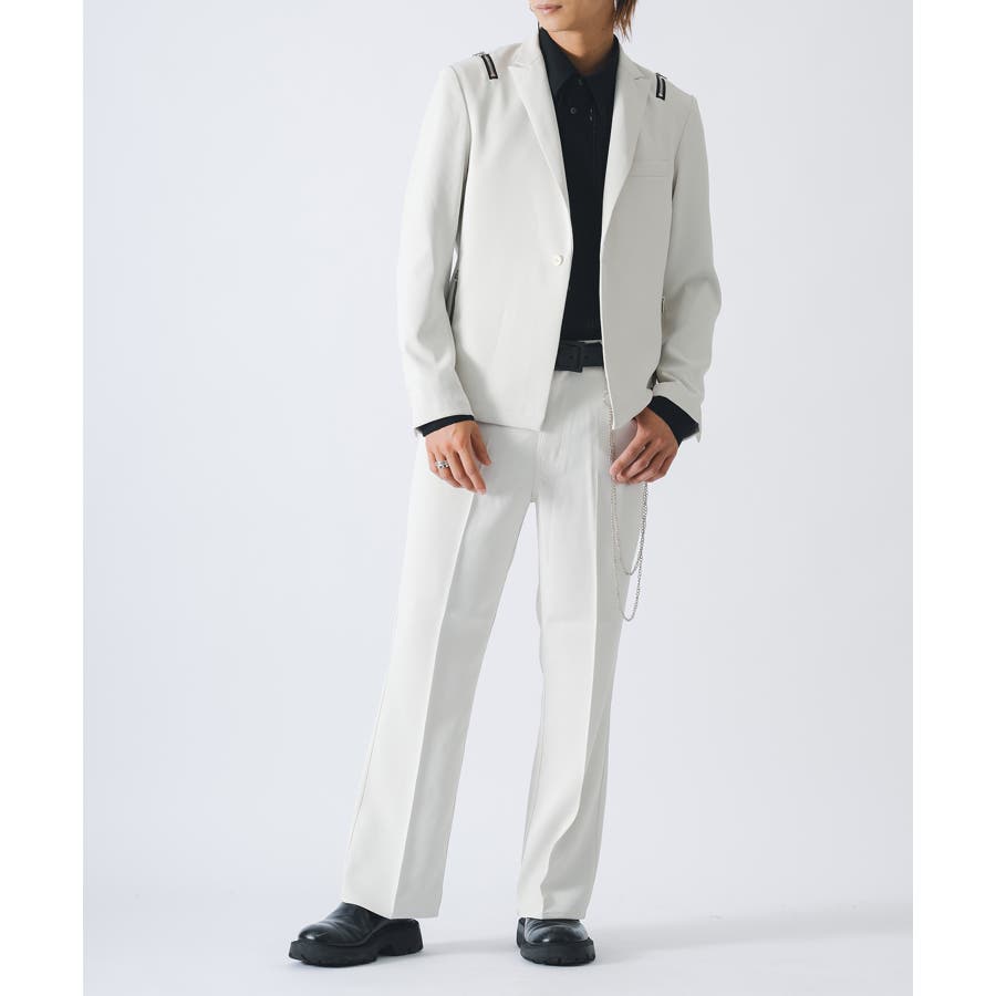 同素材のセットアップパンツ(RE35102)と合わせることができます。またショート丈を活かしてワイドパンツなどと合わせてもクールです。