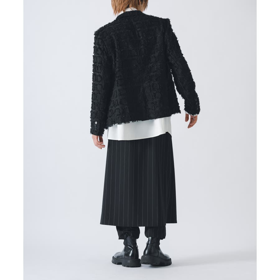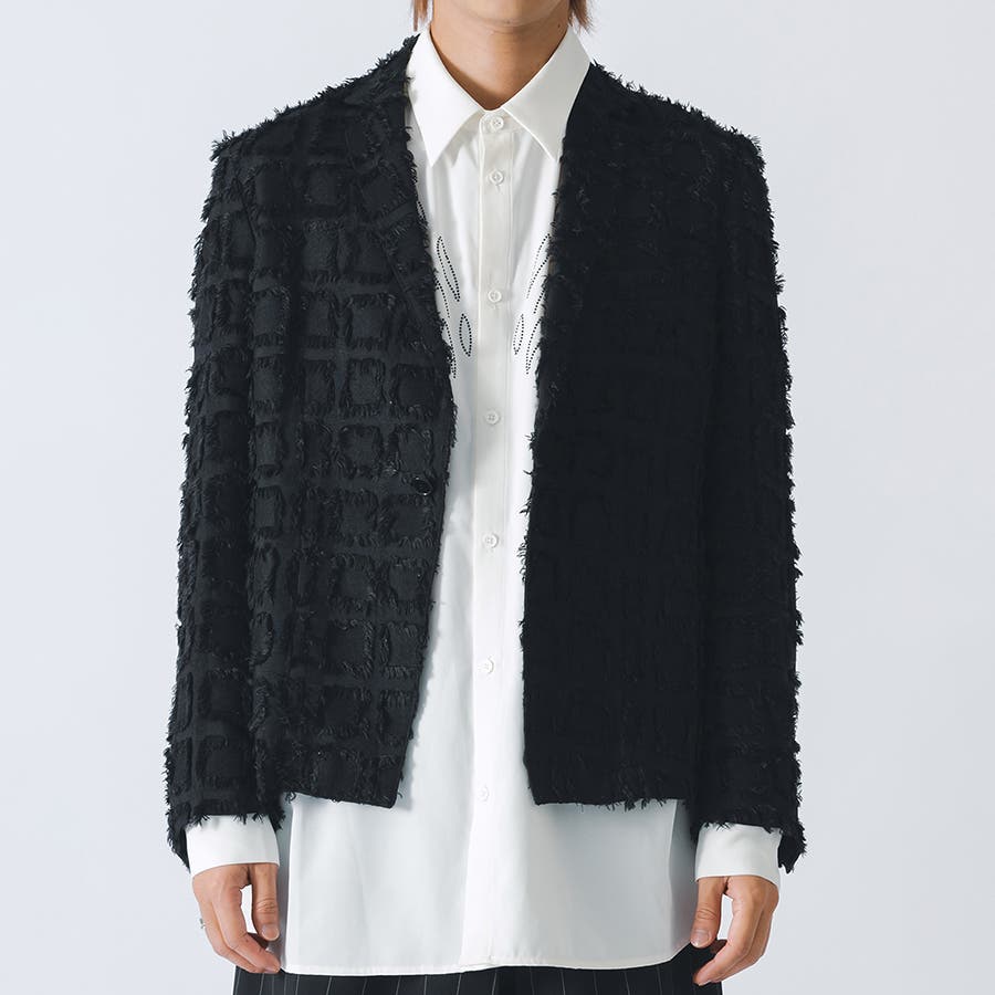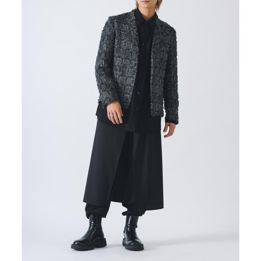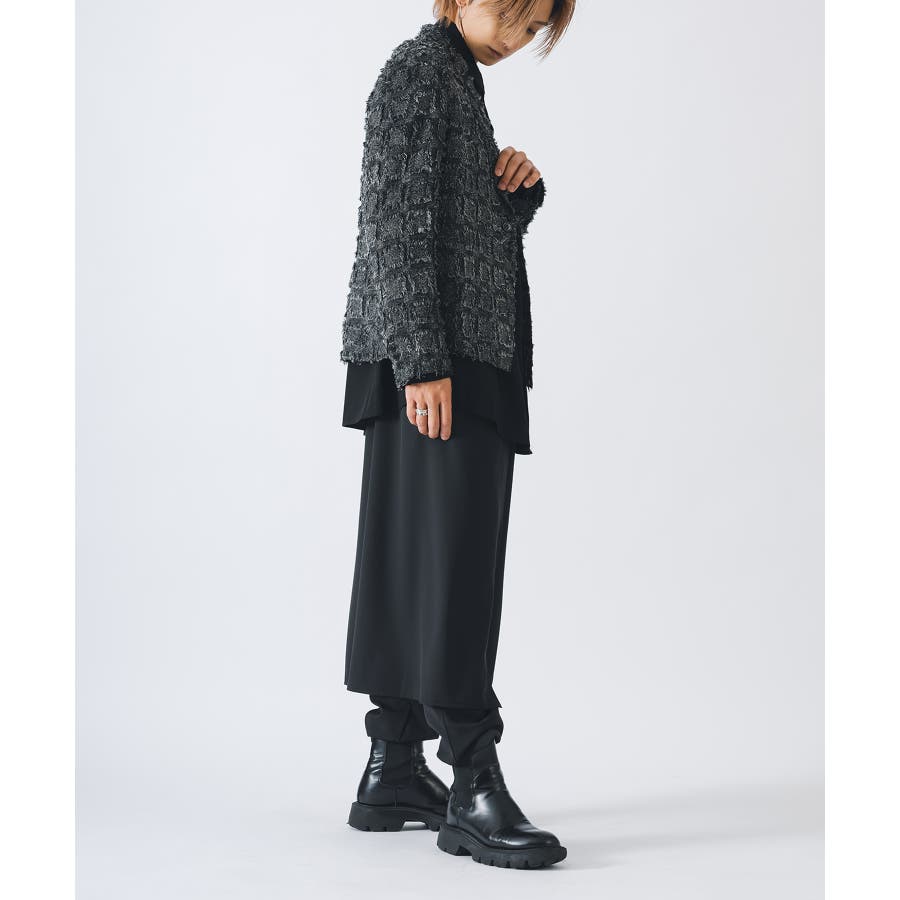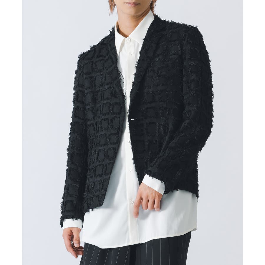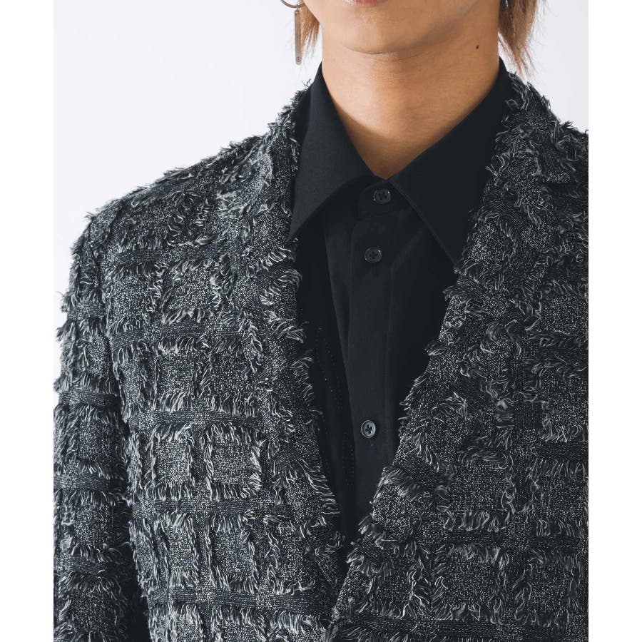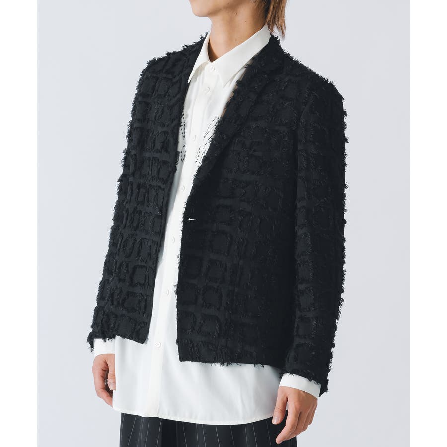 フリンジのように表面に浮き出した柄はウィンドペーンタイプのチェック柄になっており、その素材感が特徴です。