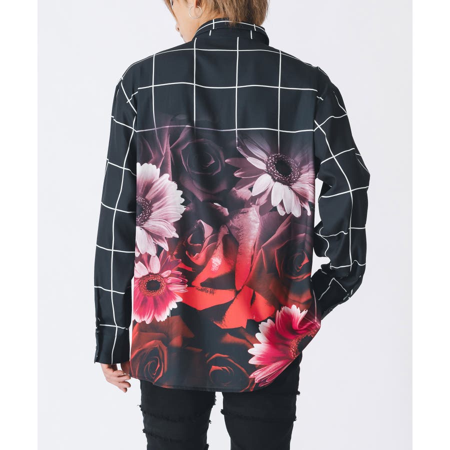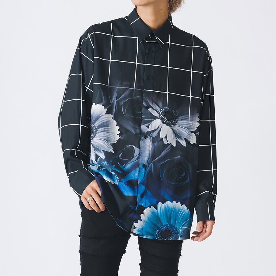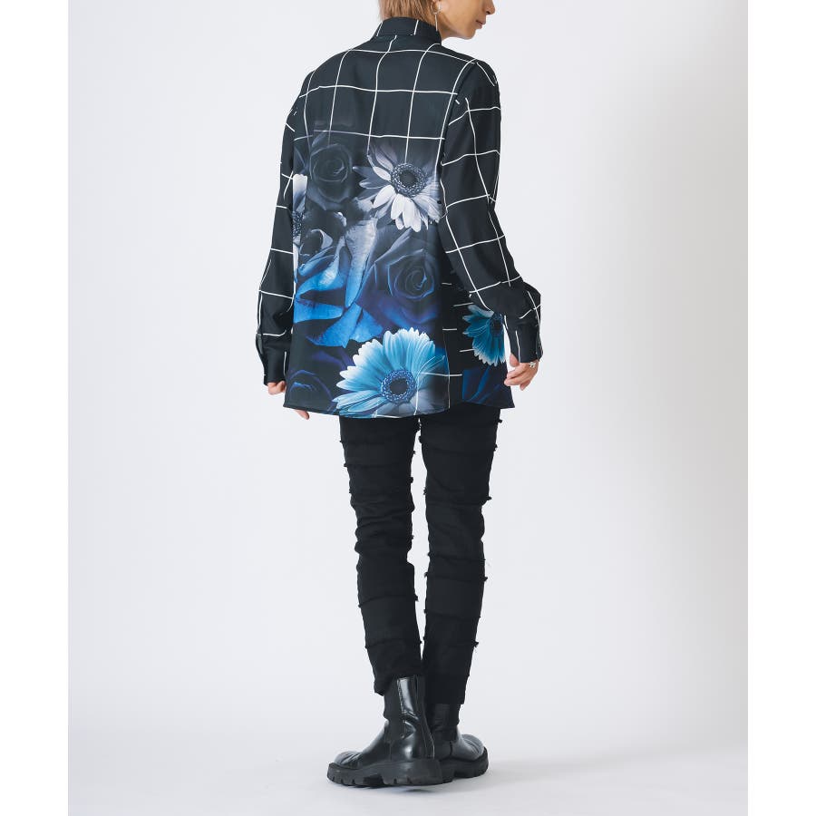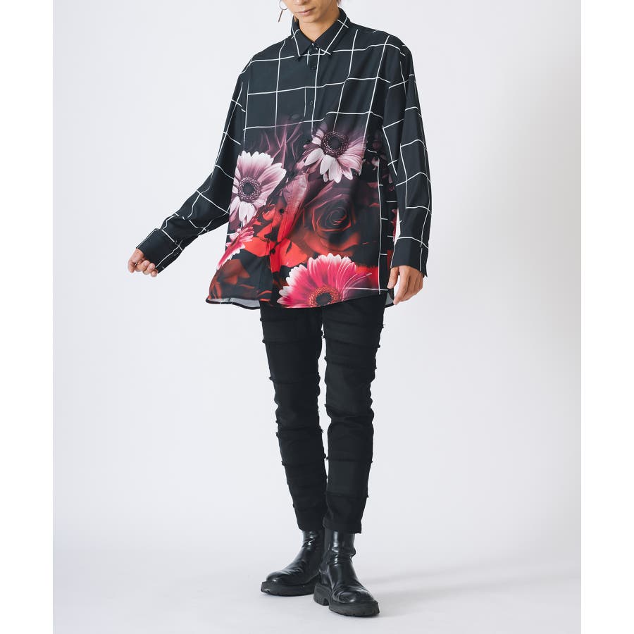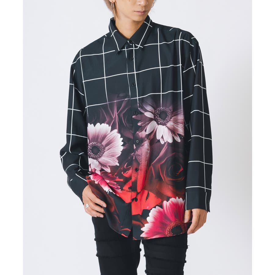 ブラックベースのボディに大きめなウィンドペーンのチェックとローズのプリントが大胆で印象的です。