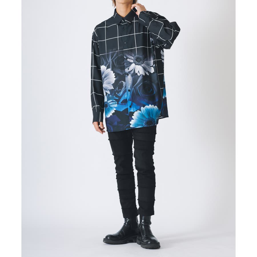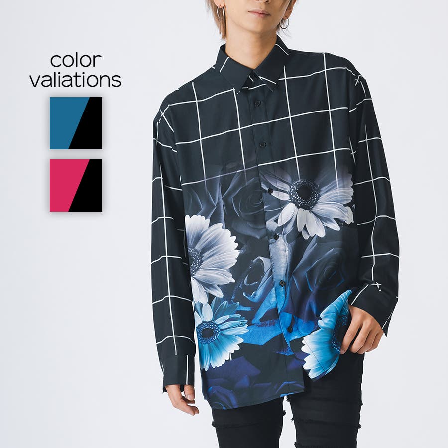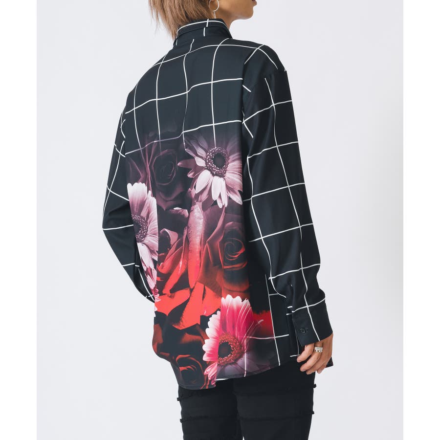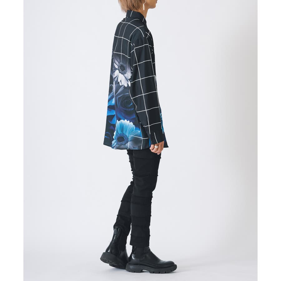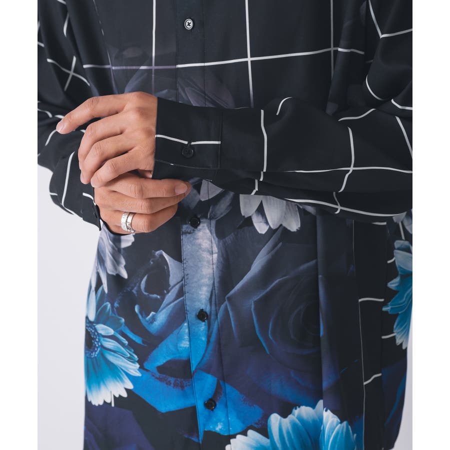 ブラックベースのボディに大きめなウィンドペーンのチェックとローズのプリントが大胆で印象的です。