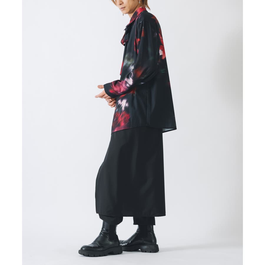 スキニーなど細めのブラックデニムなどでも気軽に合わせることができますが、シャツ同様にドレープ感のある生地のスラックスやジョガーパンツなどと合わせることで、よりトレンドなスタイルが表現できます。モデル情報:180cm、Lサイズ着用