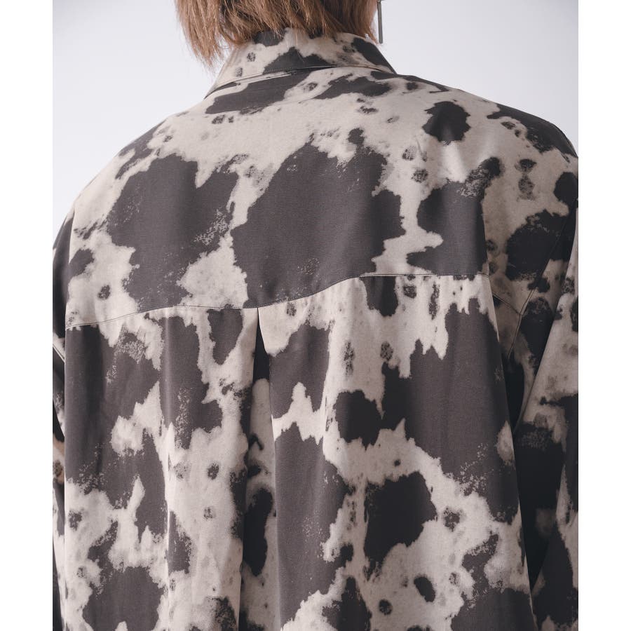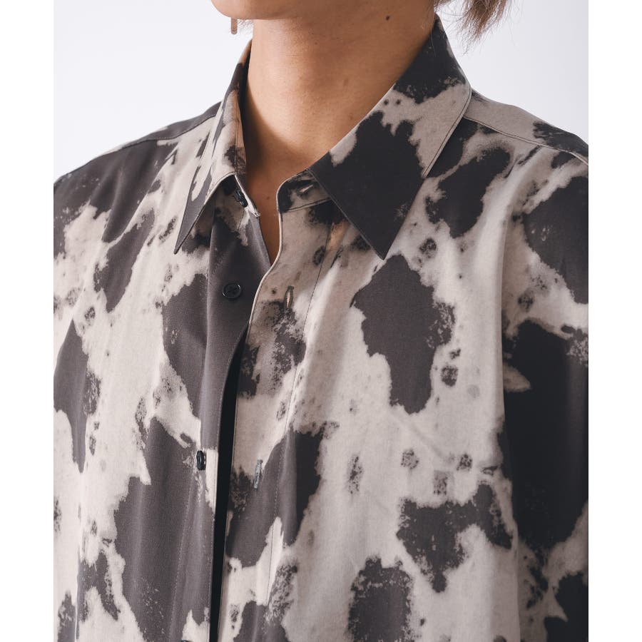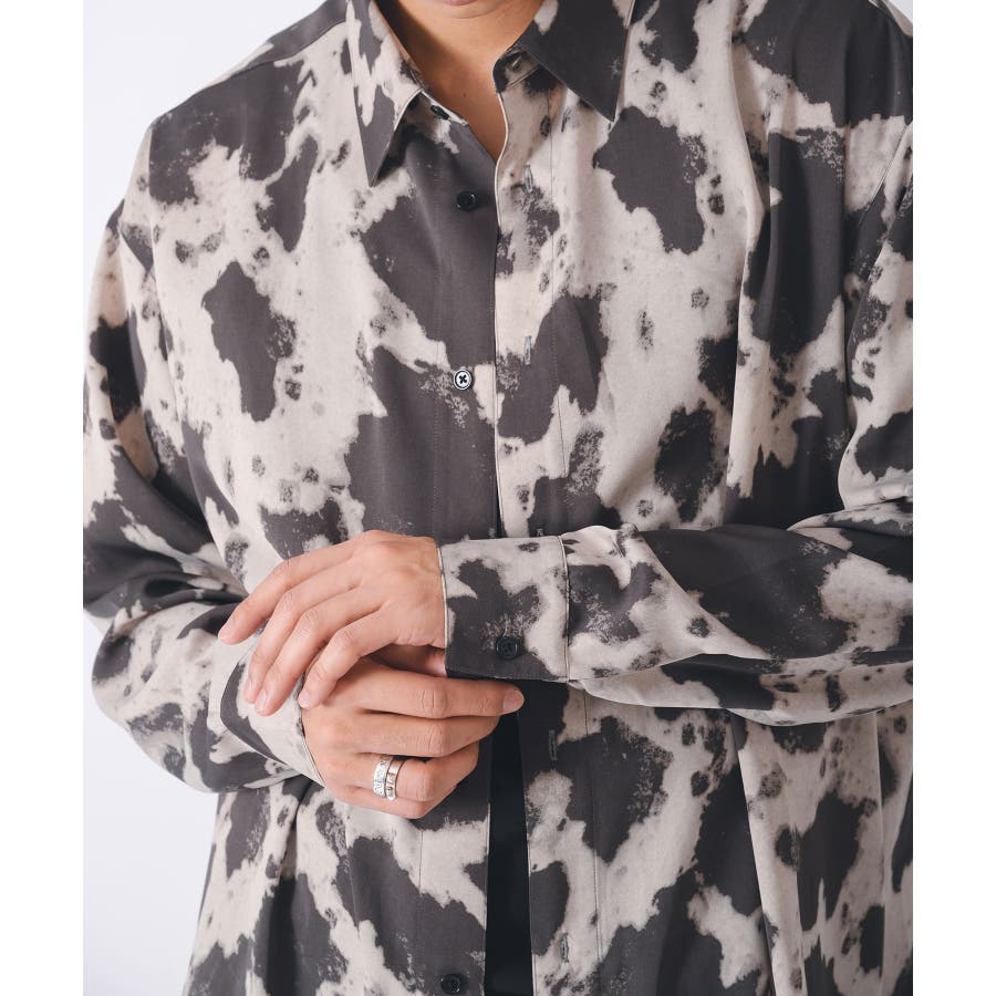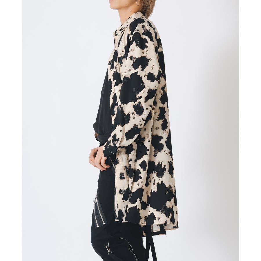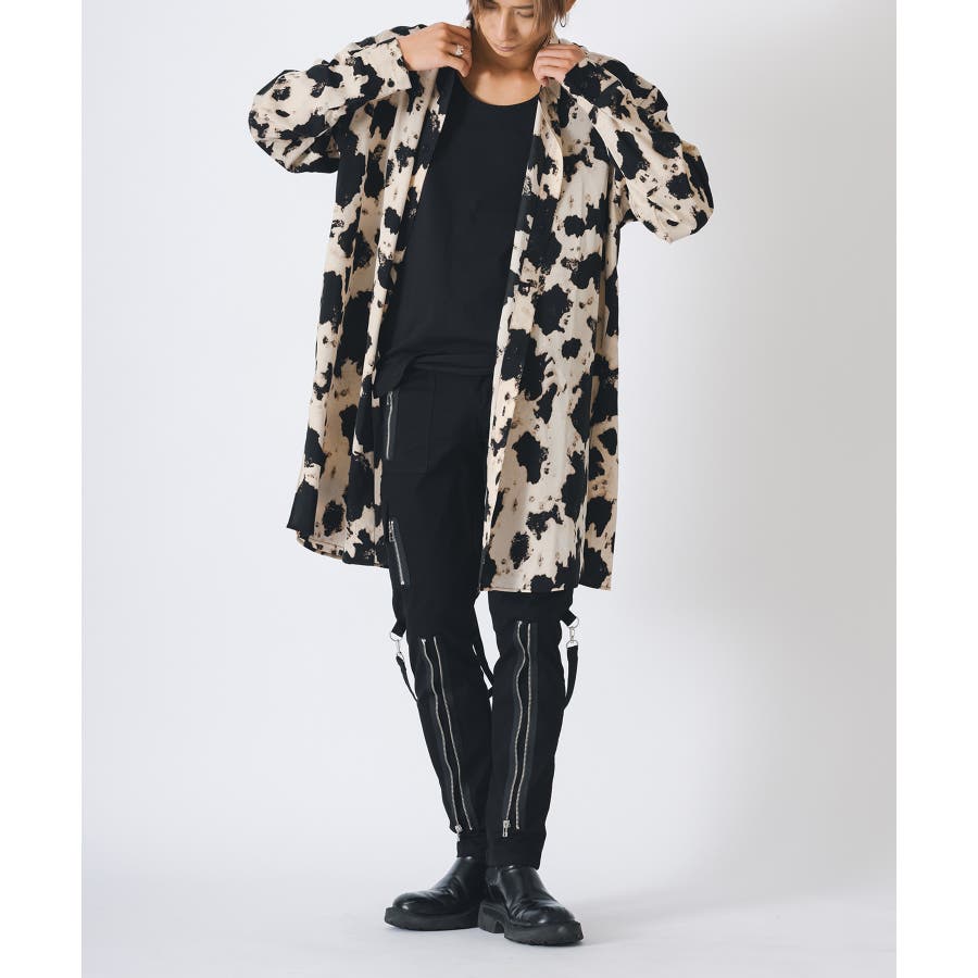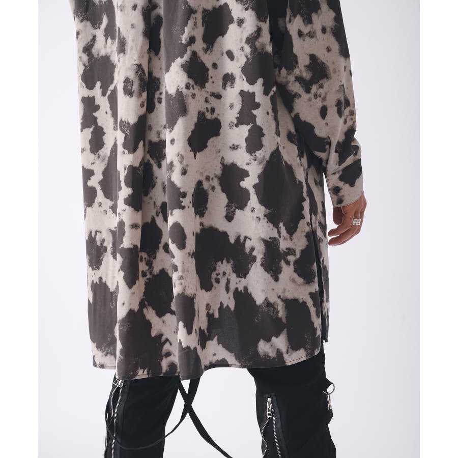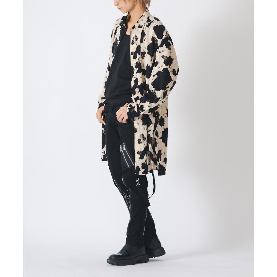 コート感覚で羽織れるムラプリントのロングシャツです。